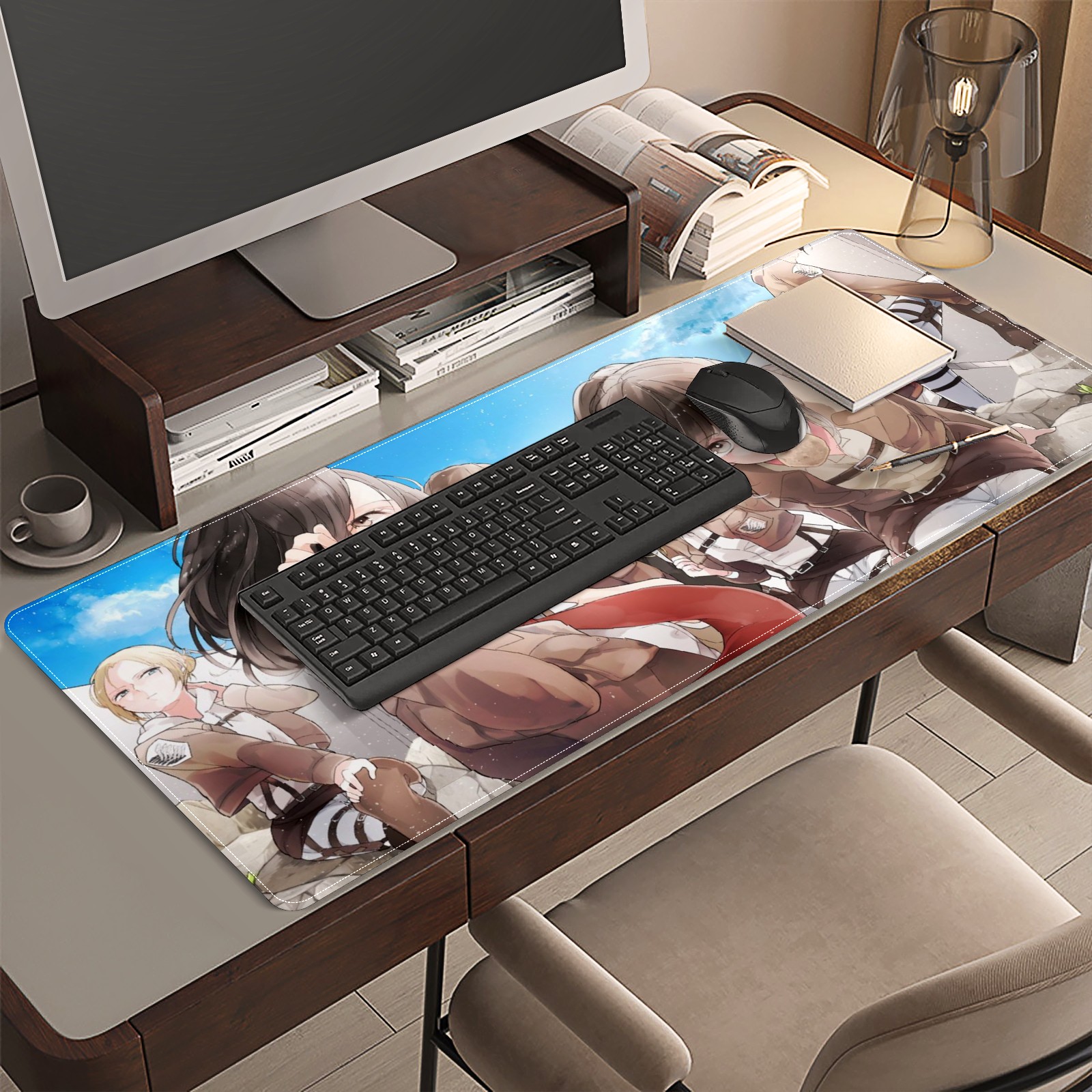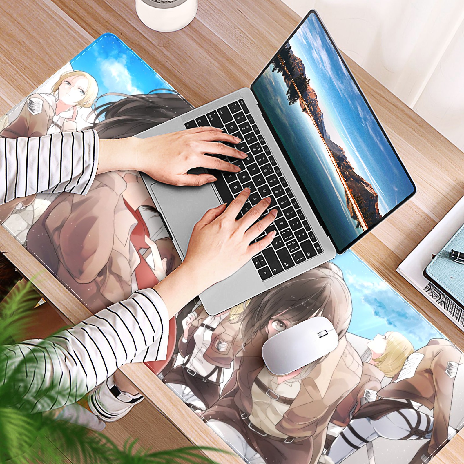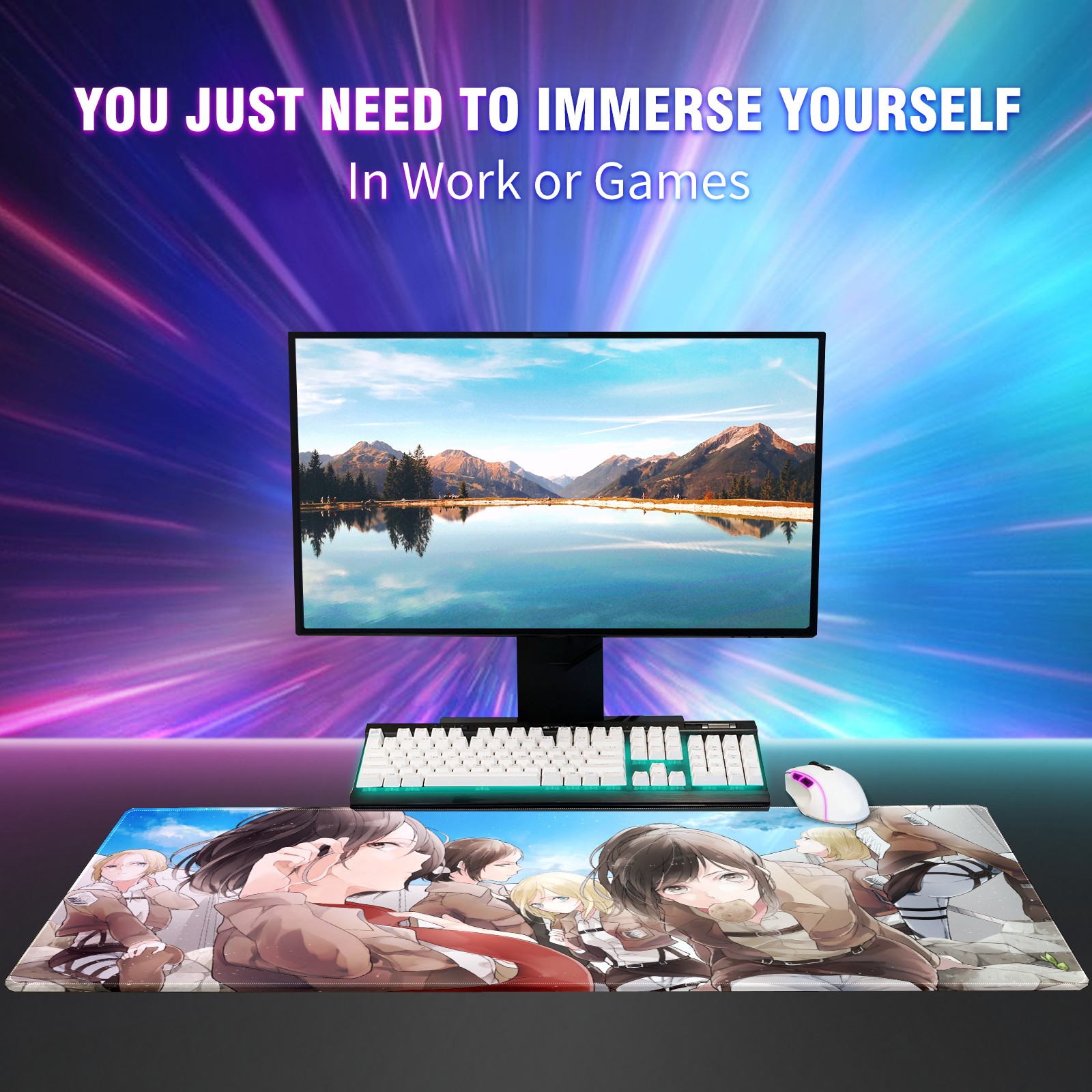 Large Mouse Pad for Desktop, Cute Desk Mat Pad Protector for Work & Gaming, Aesthetic Pretty Anti-Slip Laptop Blotter Cover for Office School Home Supplies, Attack On Titan (6) , 35.4inx15.7in