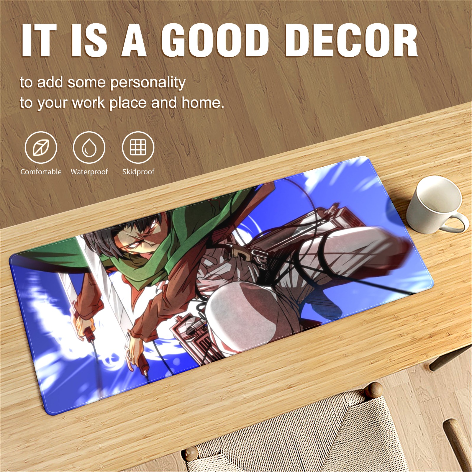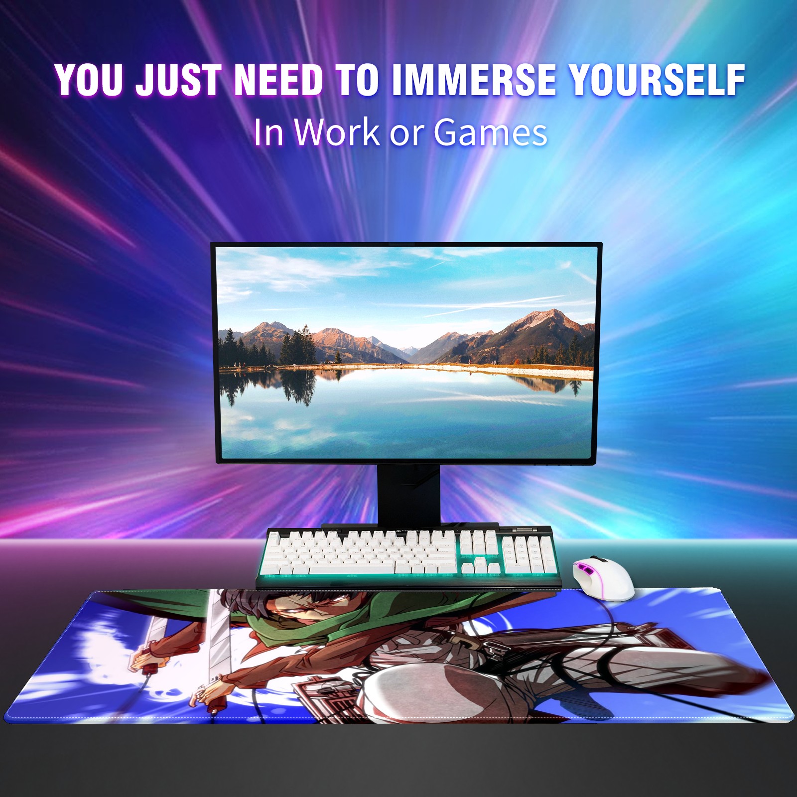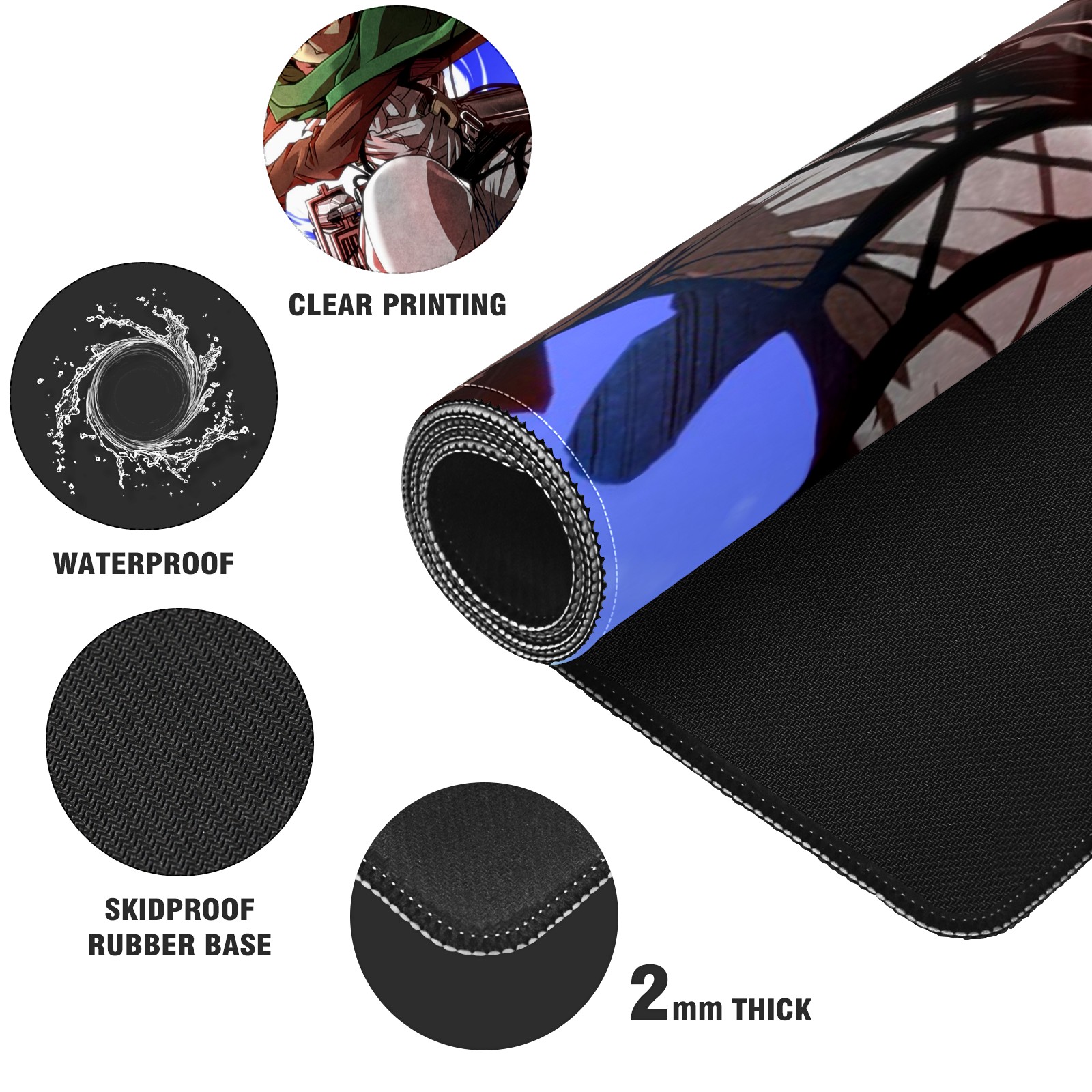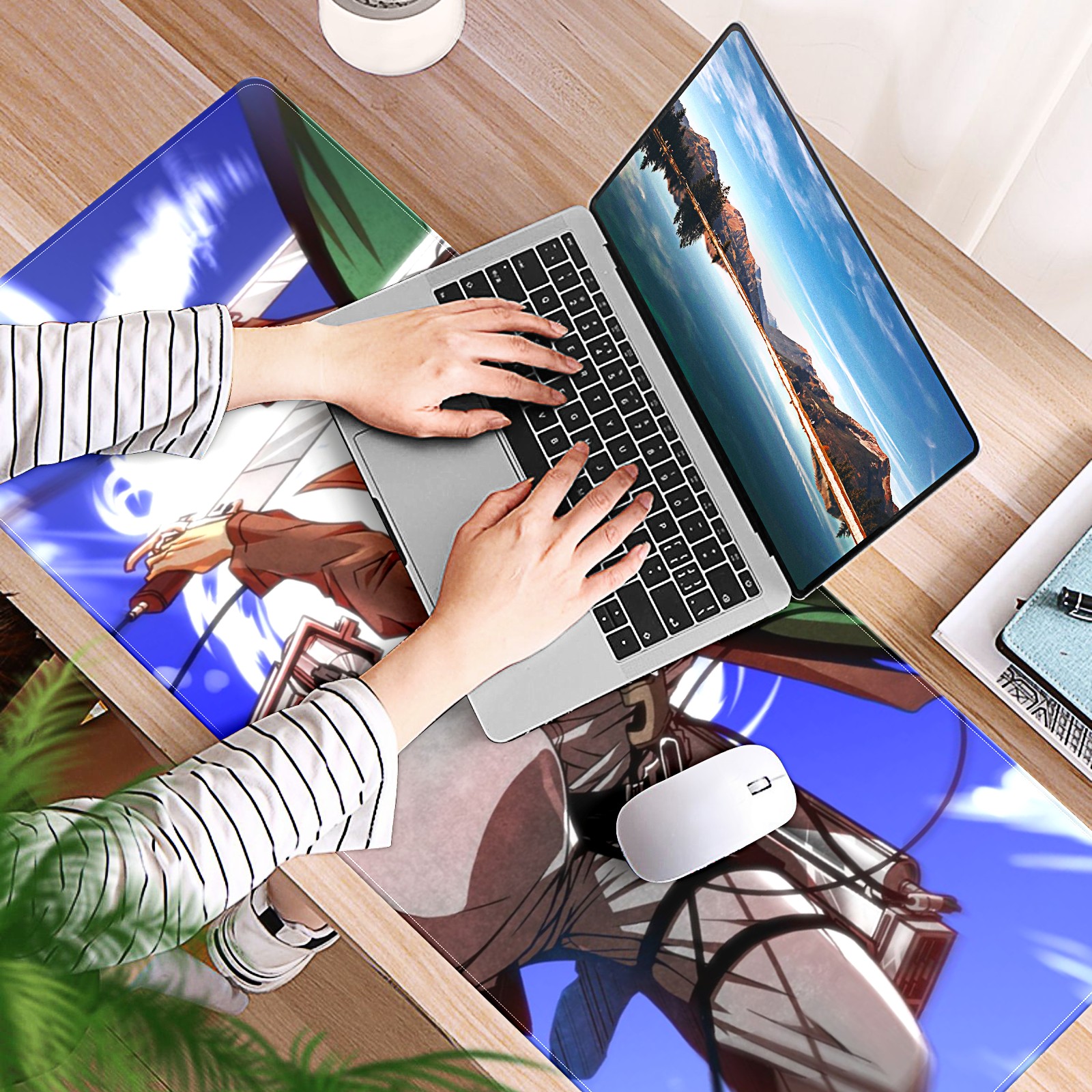 Large Mouse Pad for Desktop, Cute Desk Mat Pad Protector for Work & Gaming, Aesthetic Pretty Anti-Slip Laptop Blotter Cover for Office School Home Supplies, Attack On Titan (4) , 35.4inx15.7in