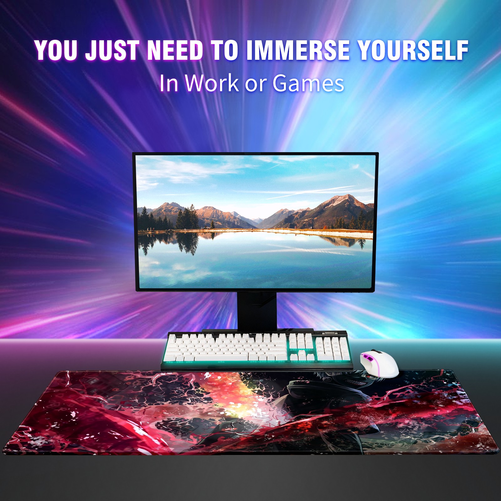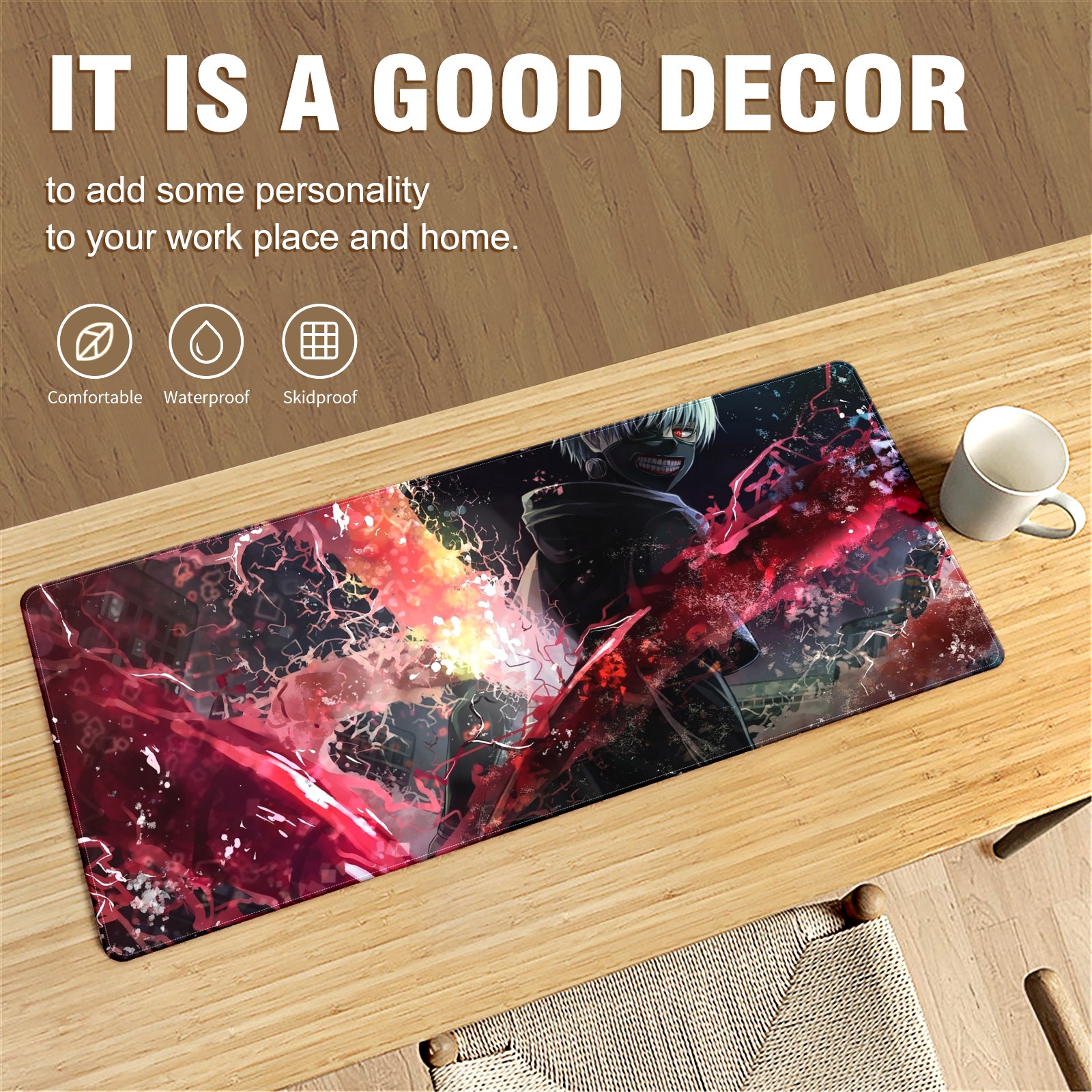Large Mouse Pad for Desktop, Cute Desk Mat Pad Protector for Work & Gaming, Aesthetic Pretty Anti-Slip Laptop Blotter Cover for Office School Home Supplies, Heros Chaos (13) , 35.4inx15.7in