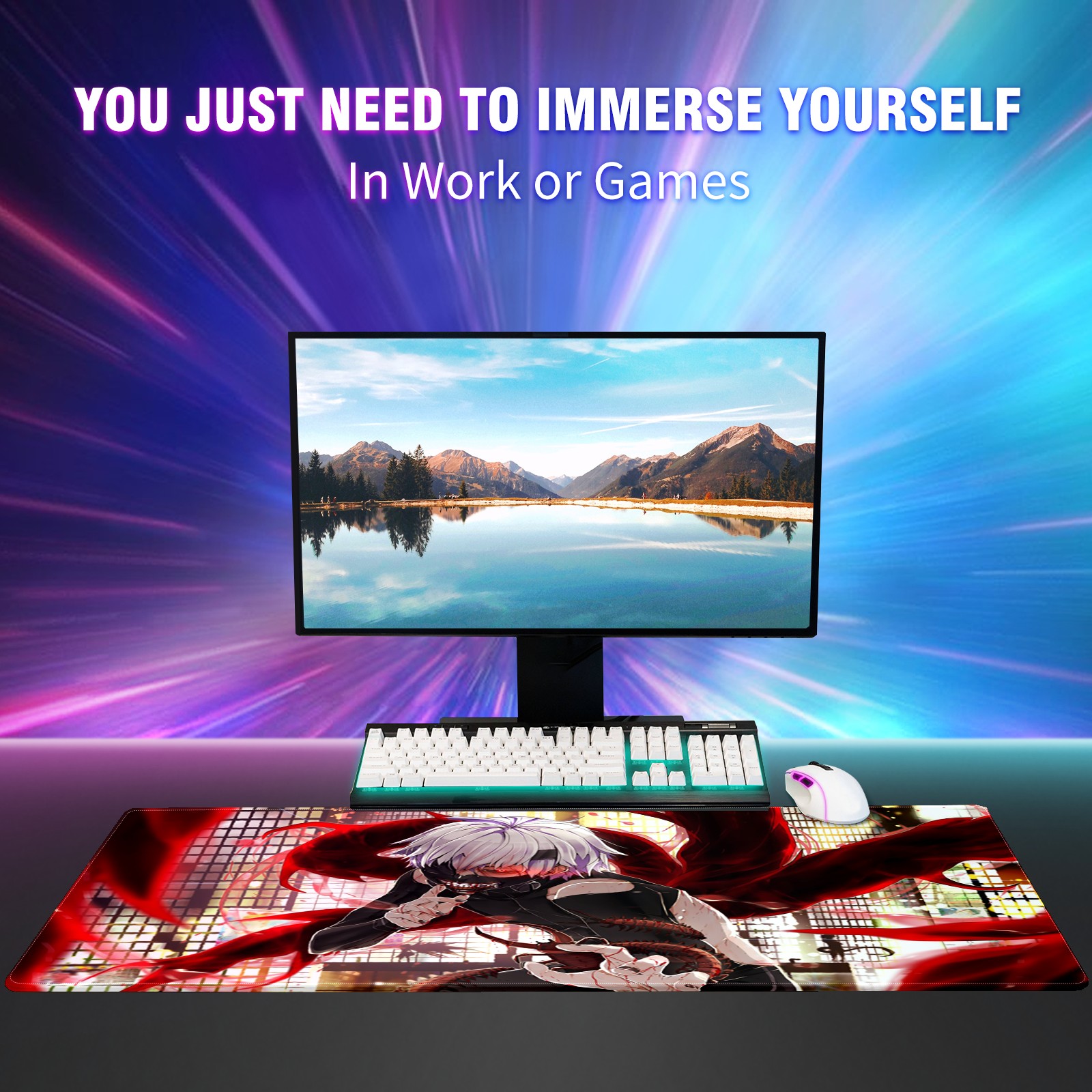 Large Mouse Pad for Desktop, Cute Desk Mat Pad Protector for Work & Gaming, Aesthetic Pretty Anti-Slip Laptop Blotter Cover for Office School Home Supplies, Heros Chaos (14) , 35.4inx15.7in