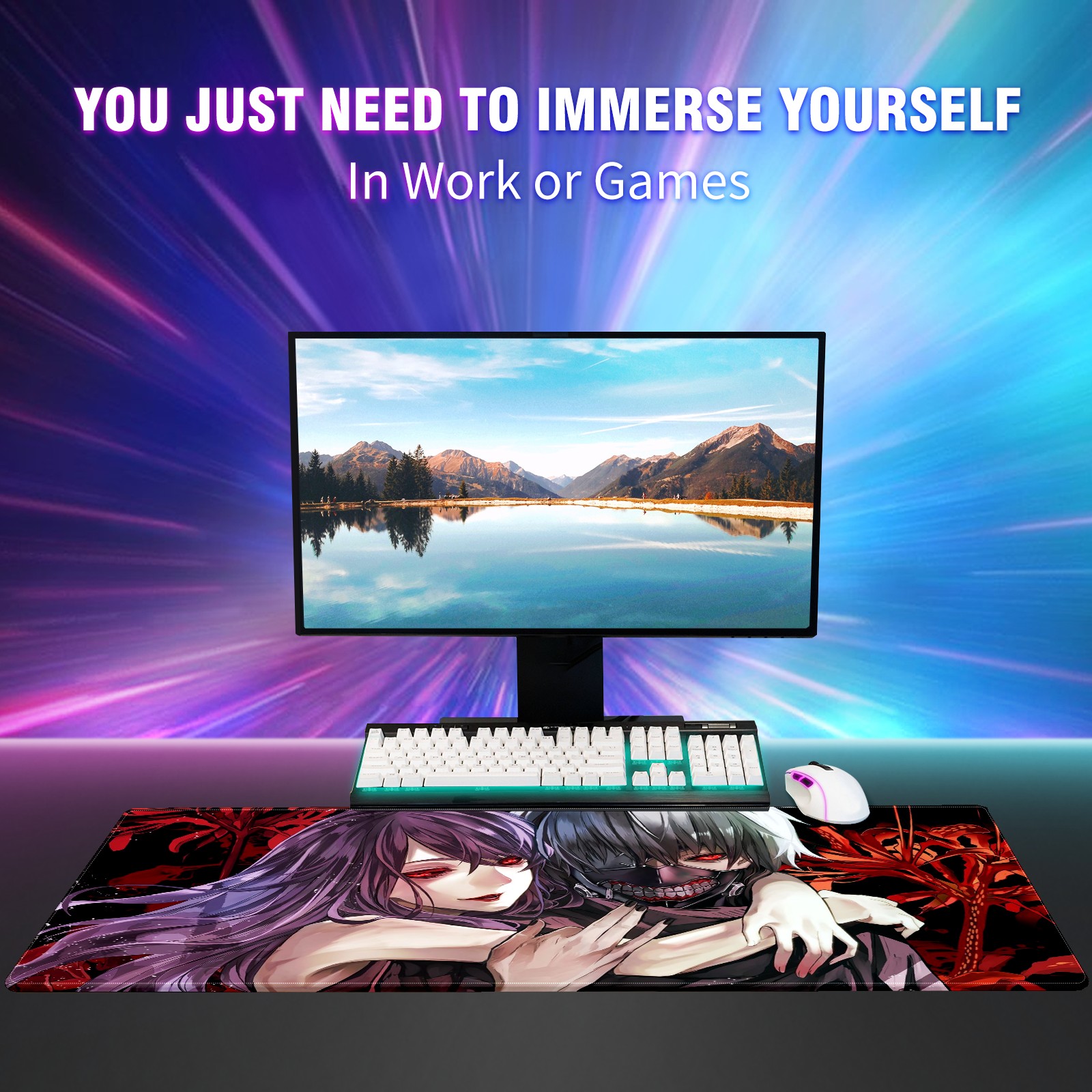 Large Mouse Pad for Desktop, Cute Desk Mat Pad Protector for Work & Gaming, Aesthetic Pretty Anti-Slip Laptop Blotter Cover for Office School Home Supplies, Heros Chaos (12) , 35.4inx15.7in