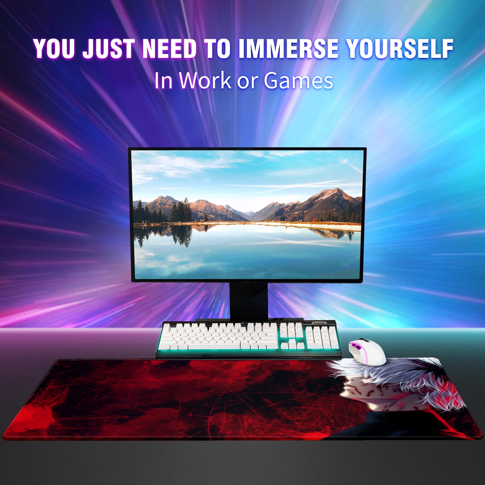 Large Mouse Pad for Desktop, Cute Desk Mat Pad Protector for Work & Gaming, Aesthetic Pretty Anti-Slip Laptop Blotter Cover for Office School Home Supplies, Heros Chaos (2) , 35.4inx15.7in