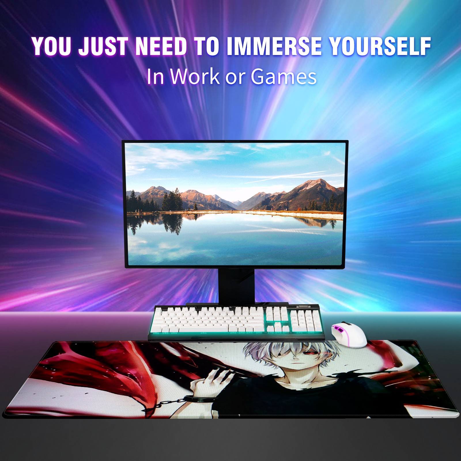 Large Mouse Pad for Desktop, Cute Desk Mat Pad Protector for Work & Gaming, Aesthetic Pretty Anti-Slip Laptop Blotter Cover for Office School Home Supplies, Heros Chaos (3) , 35.4inx15.7in