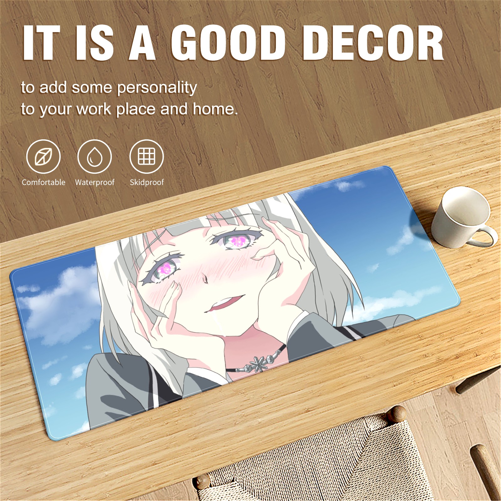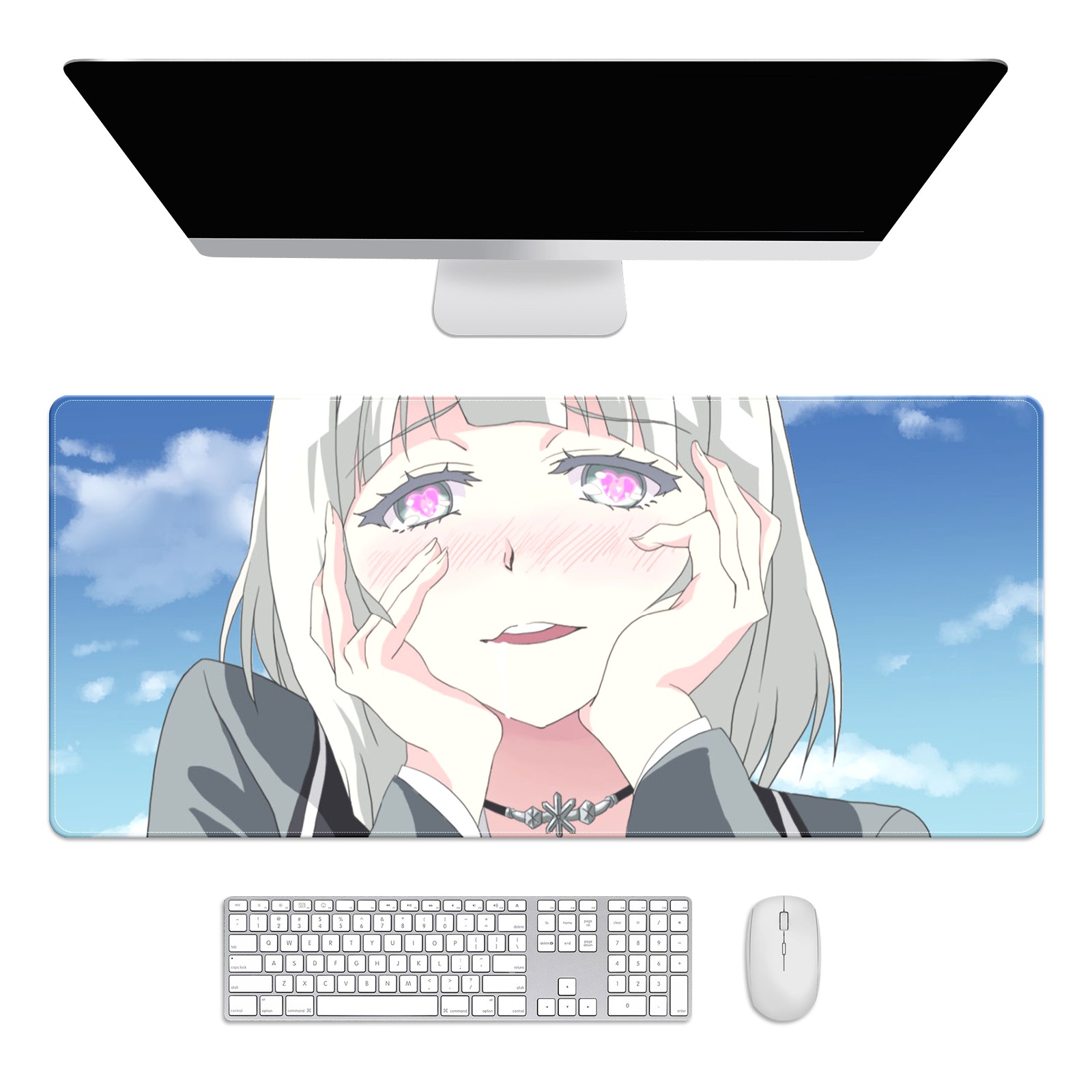 Large Mouse Pad for Desktop, Cute Desk Mat Pad Protector for Work & Gaming, Aesthetic Pretty Anti-Slip Laptop Blotter Cover for Office School Home Supplies, Ahe-gao , 35.4inx15.7in