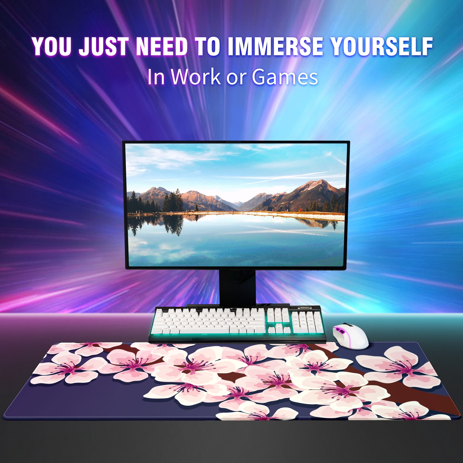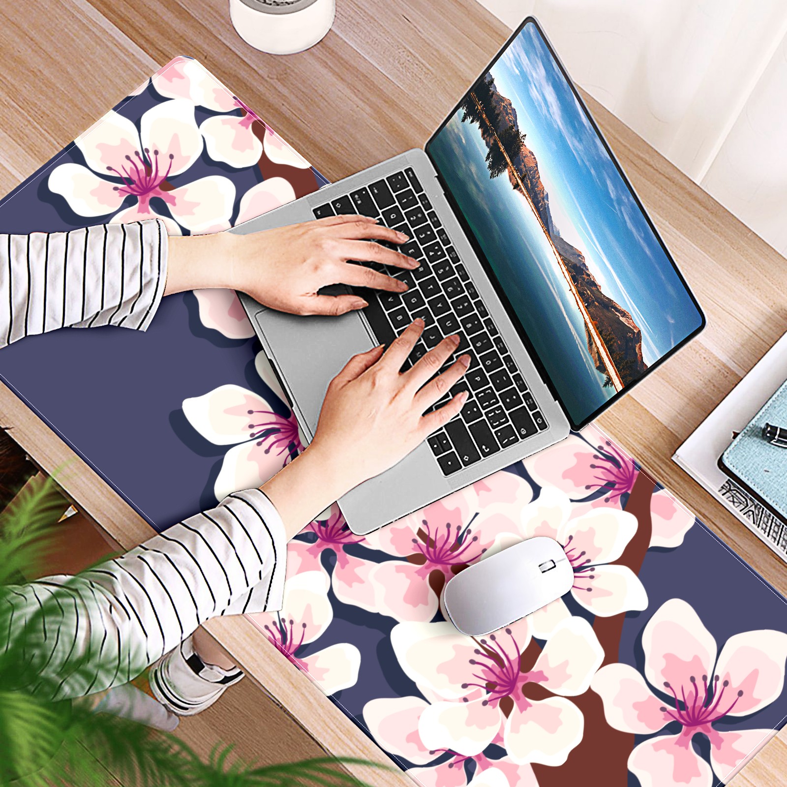 Large Mouse Pad for Desktop, Cute Desk Mat Pad Protector for Work & Gaming, Aesthetic Pretty Anti-Slip Laptop Blotter Cover for Office School Home Supplies, Japan Cherry Blossoms , 35.4inx15.7in