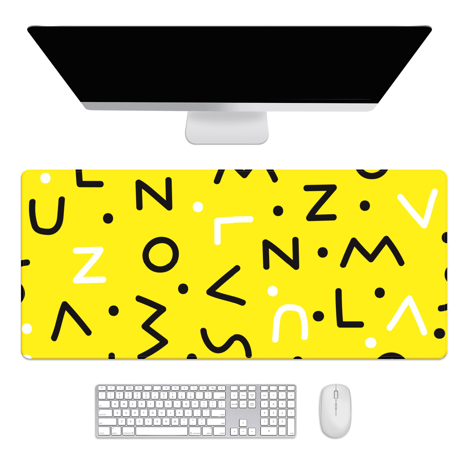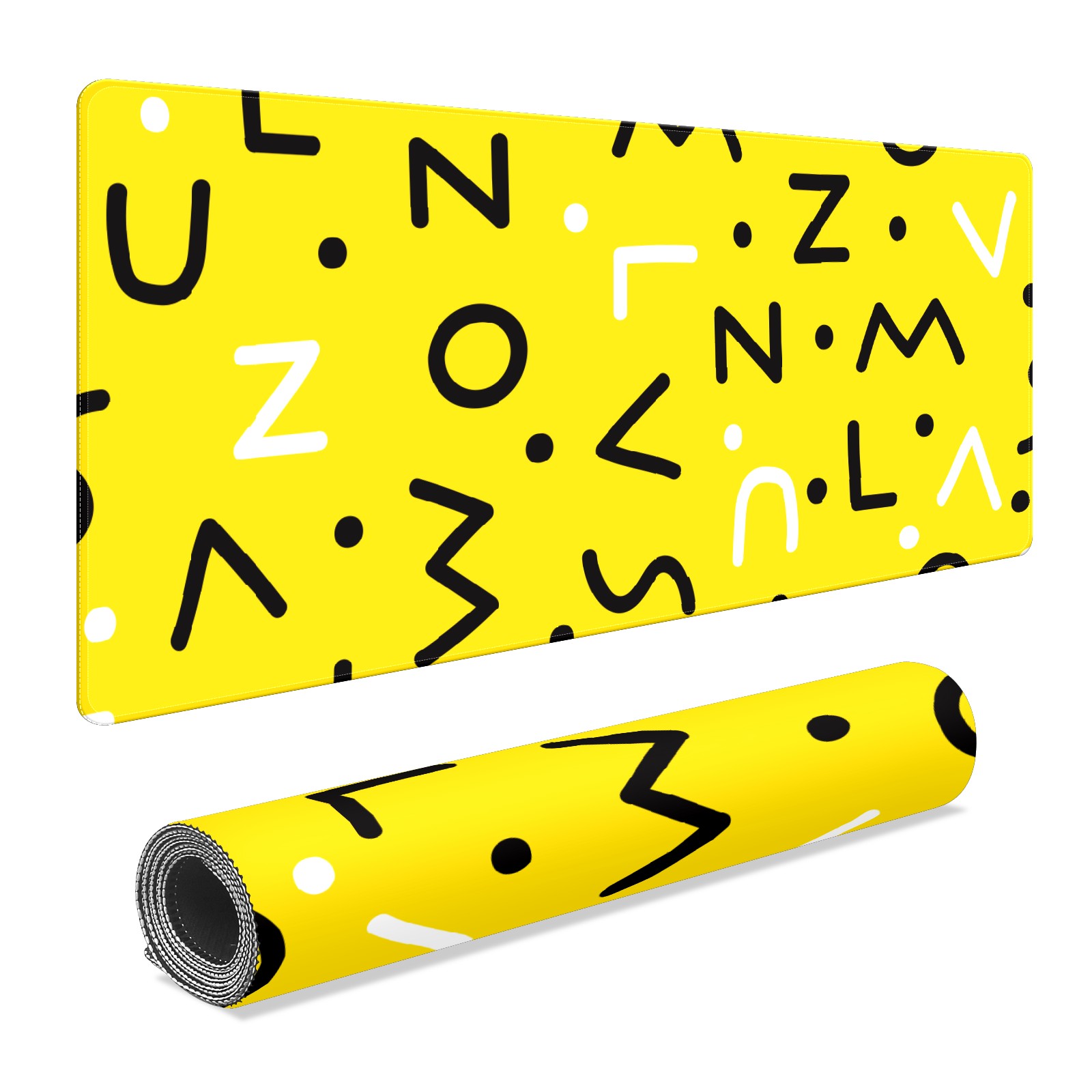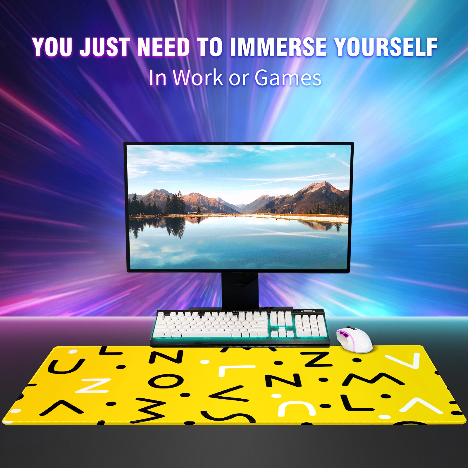 Large Mouse Pad for Desktop, Cute Desk Mat Pad Protector for Work & Gaming, Aesthetic Pretty Anti-Slip Laptop Blotter Cover for Office School Home Supplies, Yellow Letter , 35.4inx15.7in