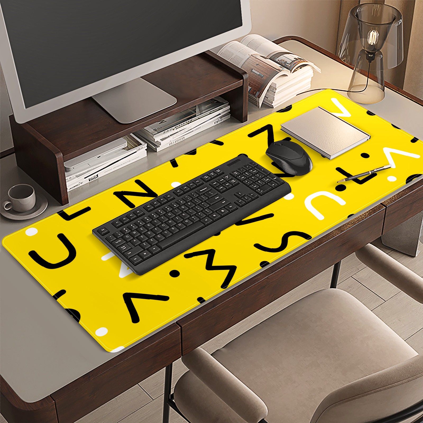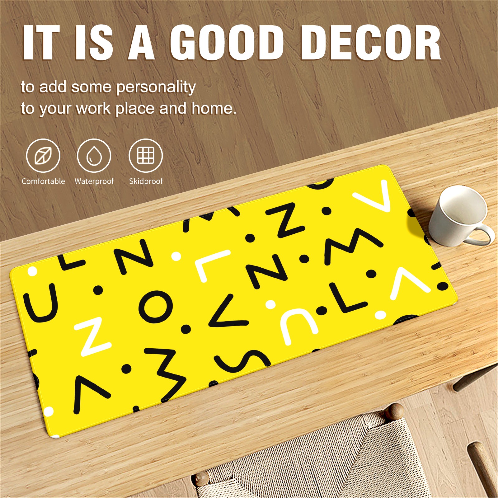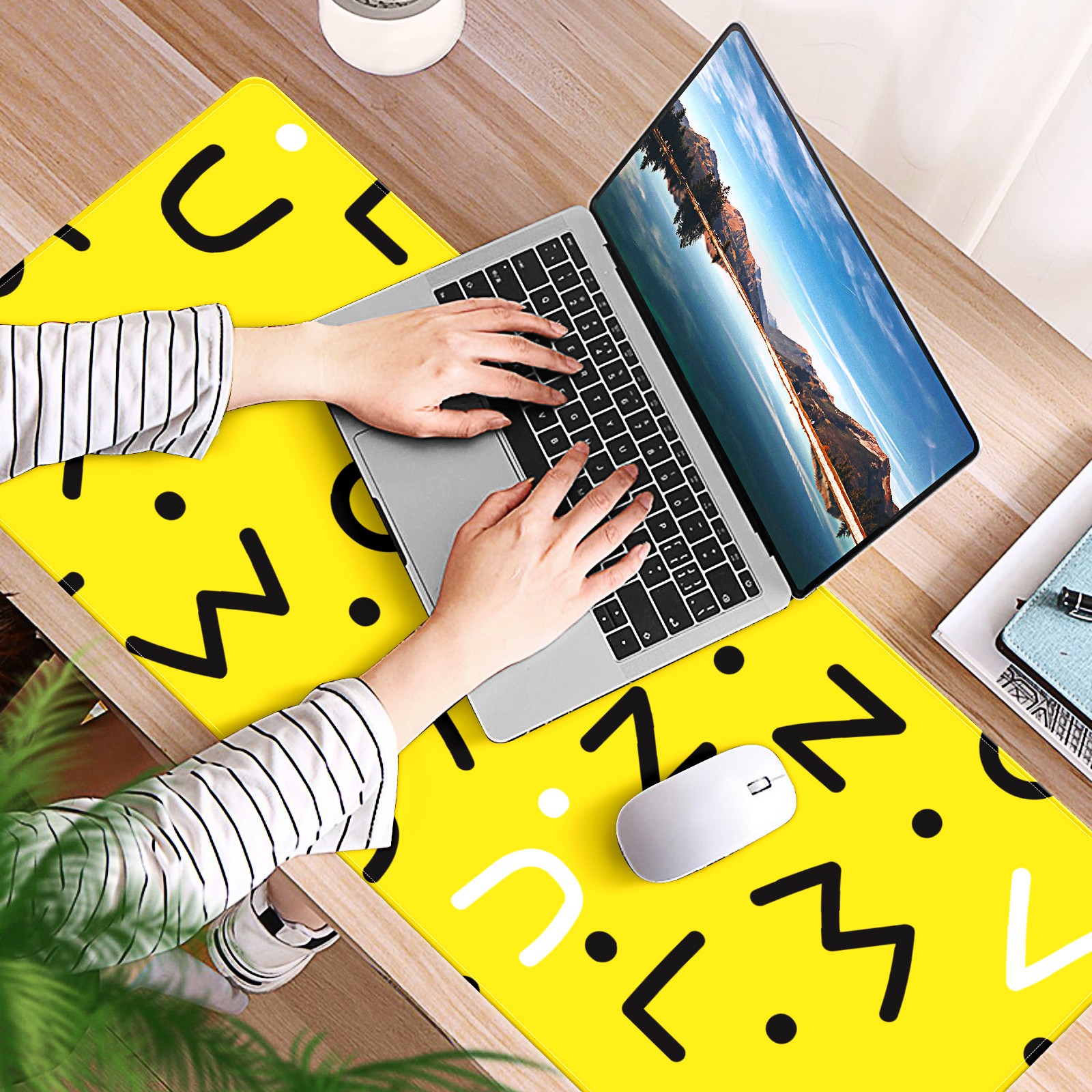 Large Mouse Pad for Desktop, Cute Desk Mat Pad Protector for Work & Gaming, Aesthetic Pretty Anti-Slip Laptop Blotter Cover for Office School Home Supplies, Yellow Letter , 35.4inx15.7in
