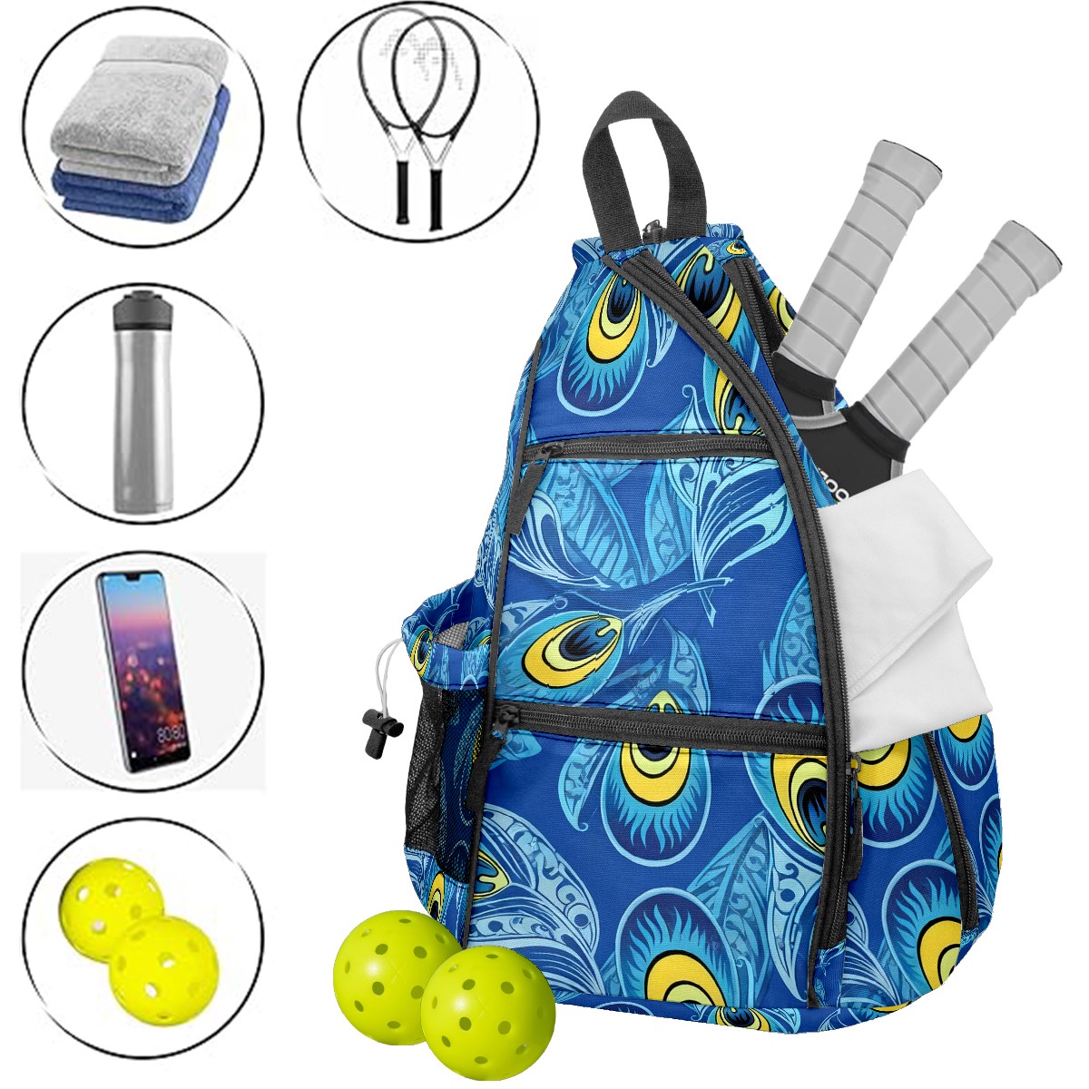 • ✅ Прочный материал Изготовлена из нейлоновой ткани + плетеного ремня + сетчатой корзины: гладкая на ощупь, приятная текстура, долговечная в использовании. ✅ Большой объем + много карманов Размер 153545см/6x13.8x17.7 дюймов, продуманная конструкция с несколькими карманами позволяет удобно разложить аксессуары для пикебола, не беспокоясь о нехватке места. ✅ Максимальный комфорт ношения Подушенное спинное отделение + регулируемые сетчатые плечевые ремни эффективно предотвращают растяжение мышц и боль в плечах, даже при длительном ношении. ✅ Универсальное использование Ремни выполнены по технологии съемного молния — регулируемый способ ношения. Подходит как повседневная поясная сумка для поездок, прогулок и других мероприятий, также является идеальным подарком для друзей и близких!