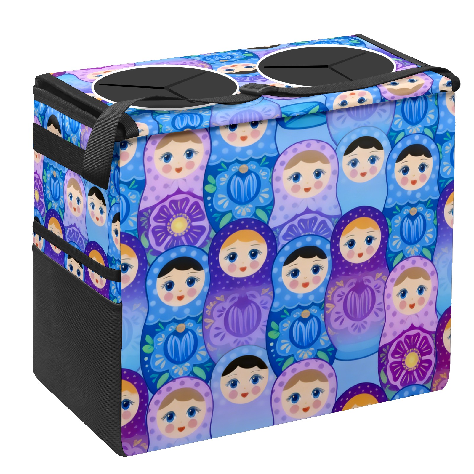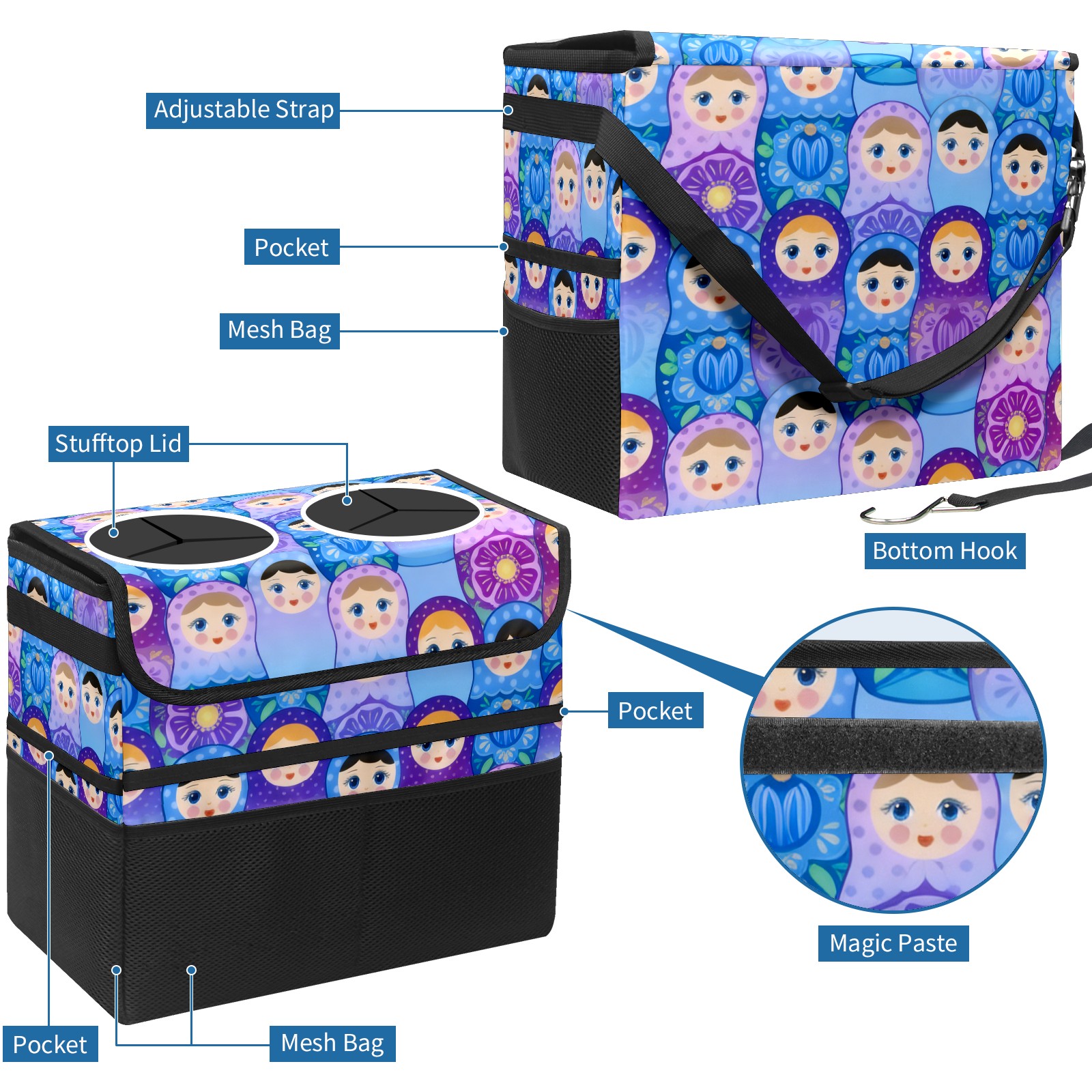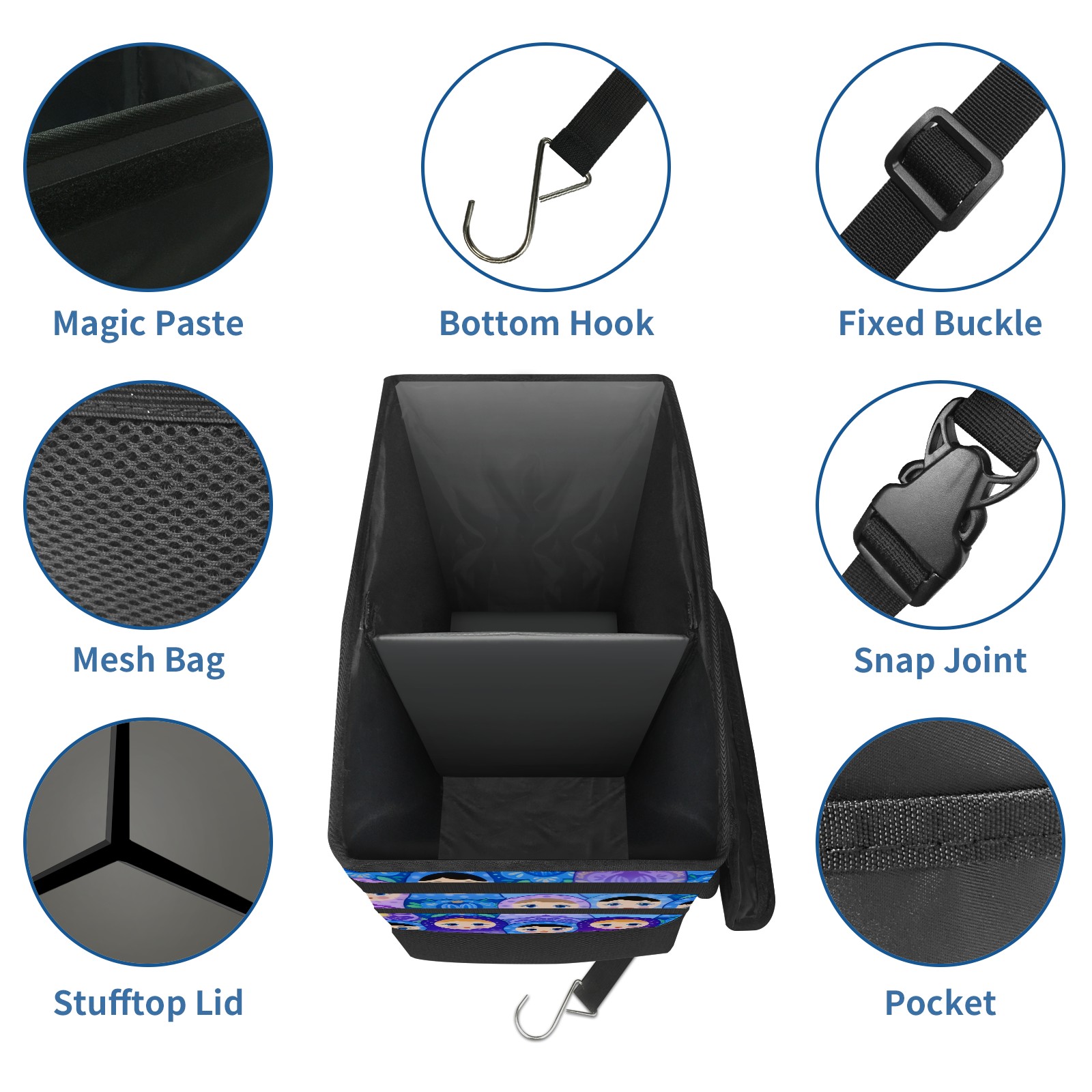 Car Trash Can with Lid, Portable Hanging Automotive Garbage Bin for Vehicles, Leakproof Waste Bag Container for SUV Truck Van Interior Auto Travel Road Trips(Dreamy Dolls Purple)