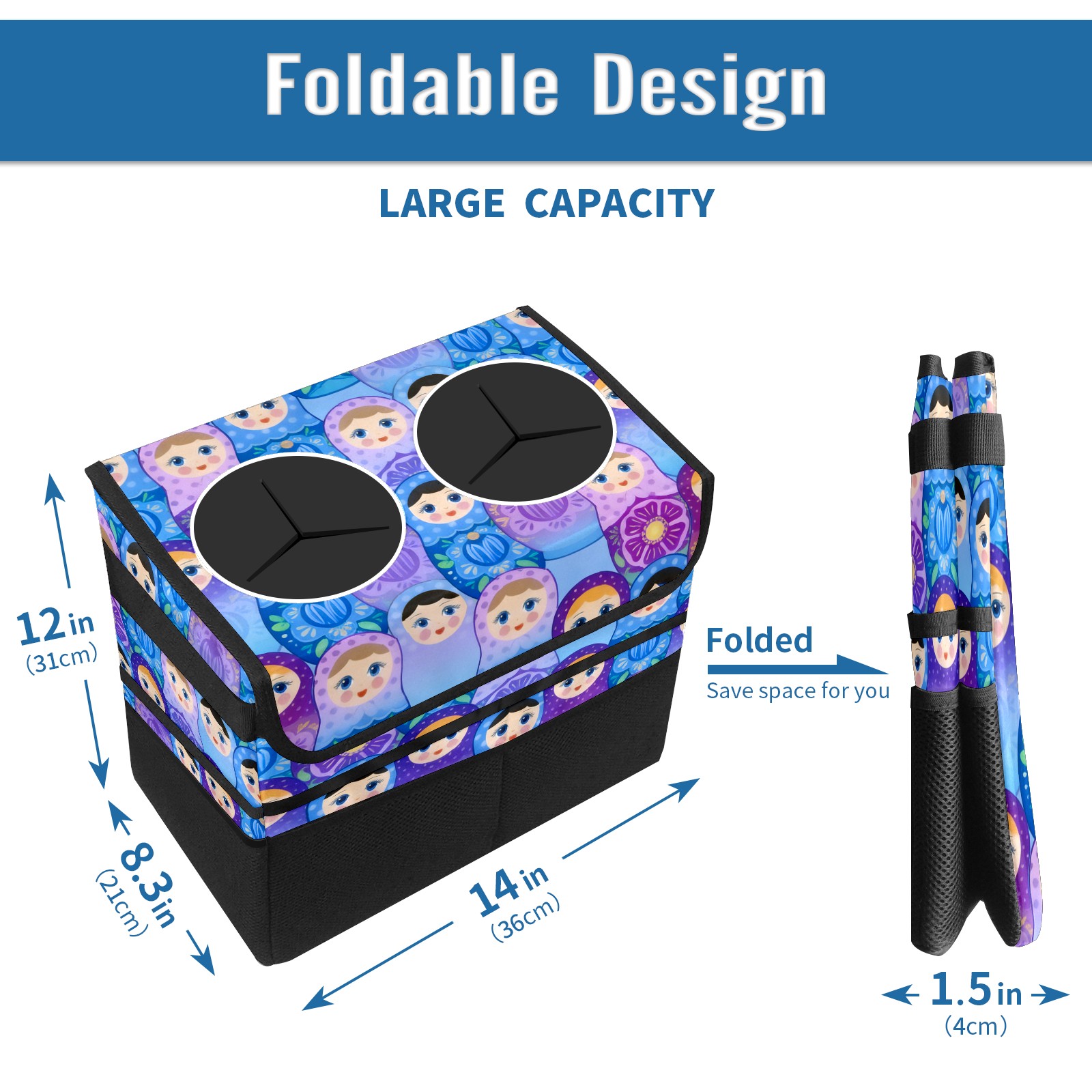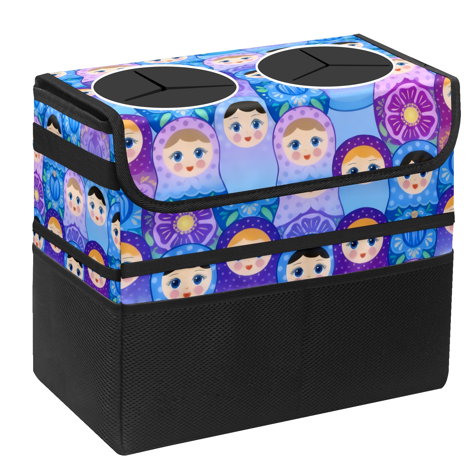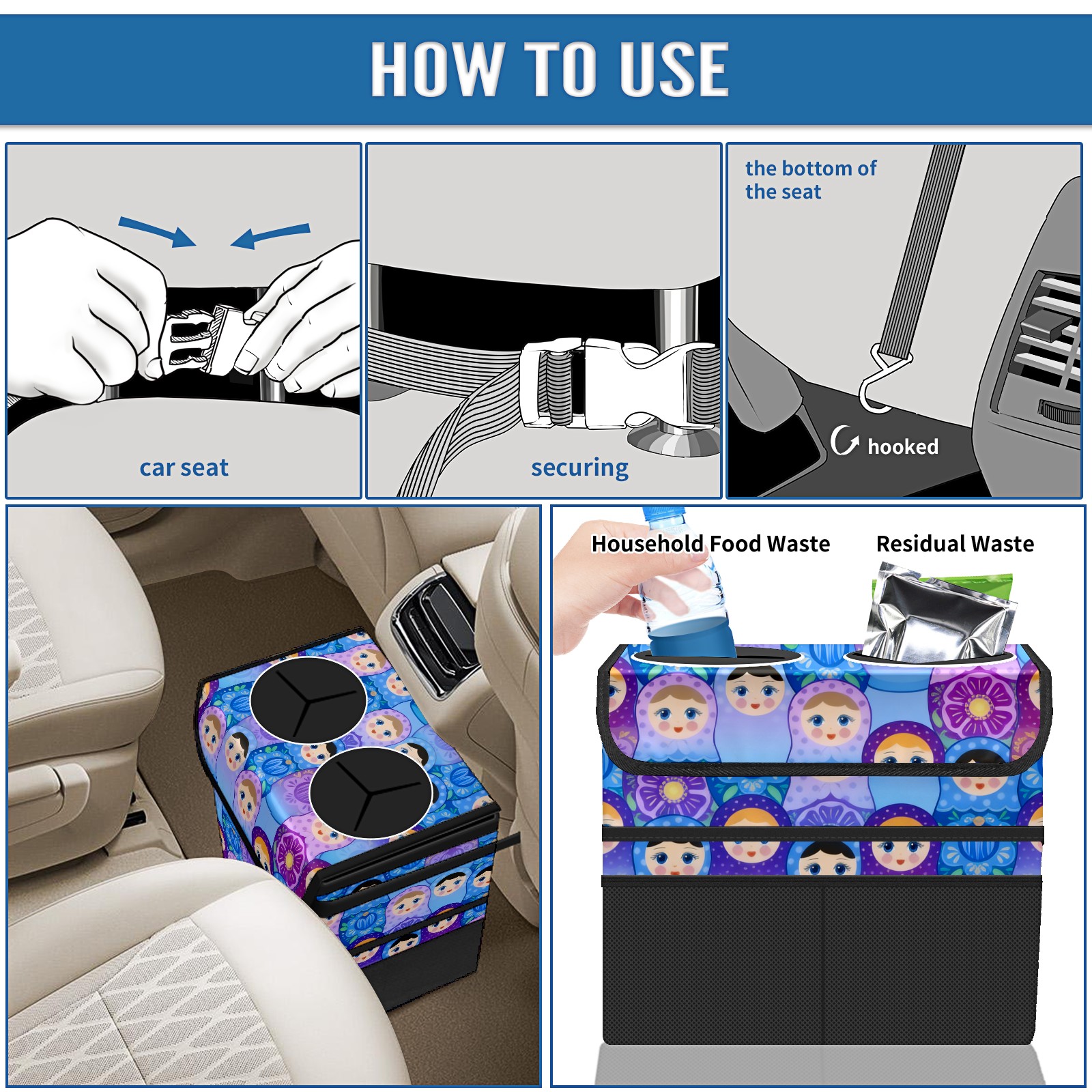 Car Trash Can with Lid, Portable Hanging Automotive Garbage Bin for Vehicles, Leakproof Waste Bag Container for SUV Truck Van Interior Auto Travel Road Trips(Dreamy Dolls Purple)