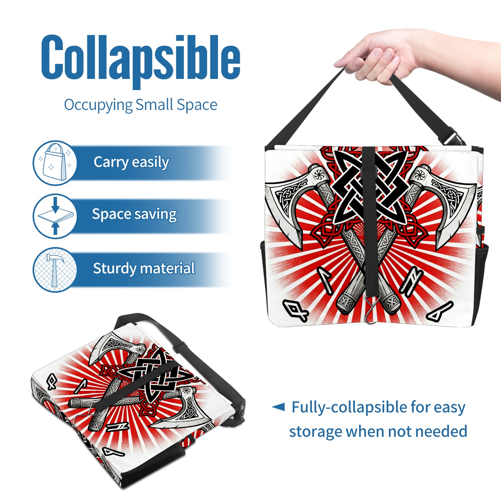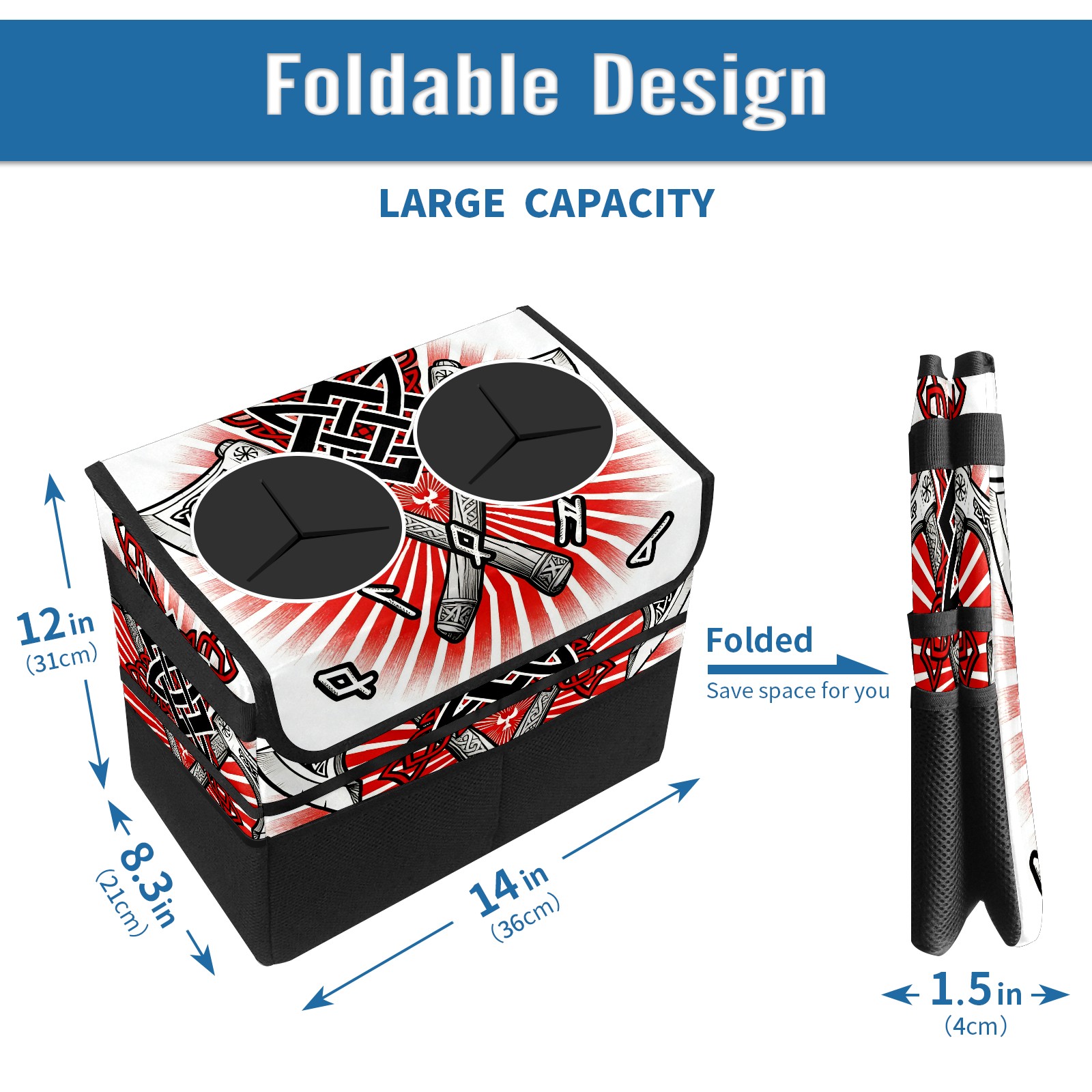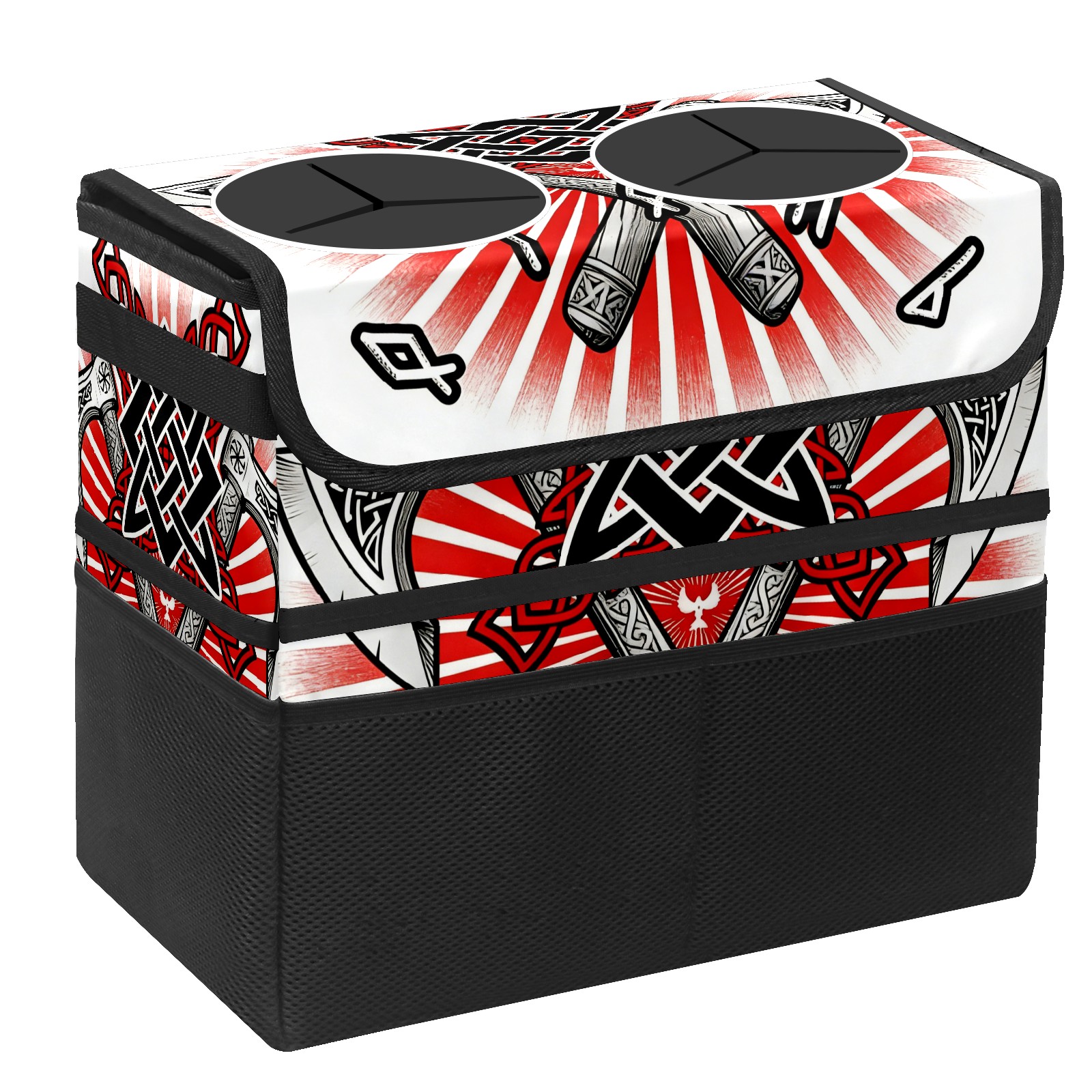 Car Trash Can with Lid, Portable Hanging Automotive Garbage Bin for Vehicles, Leakproof Waste Bag Container for SUV Truck Van Interior Auto Travel Road Trips(Cool Axes Red)