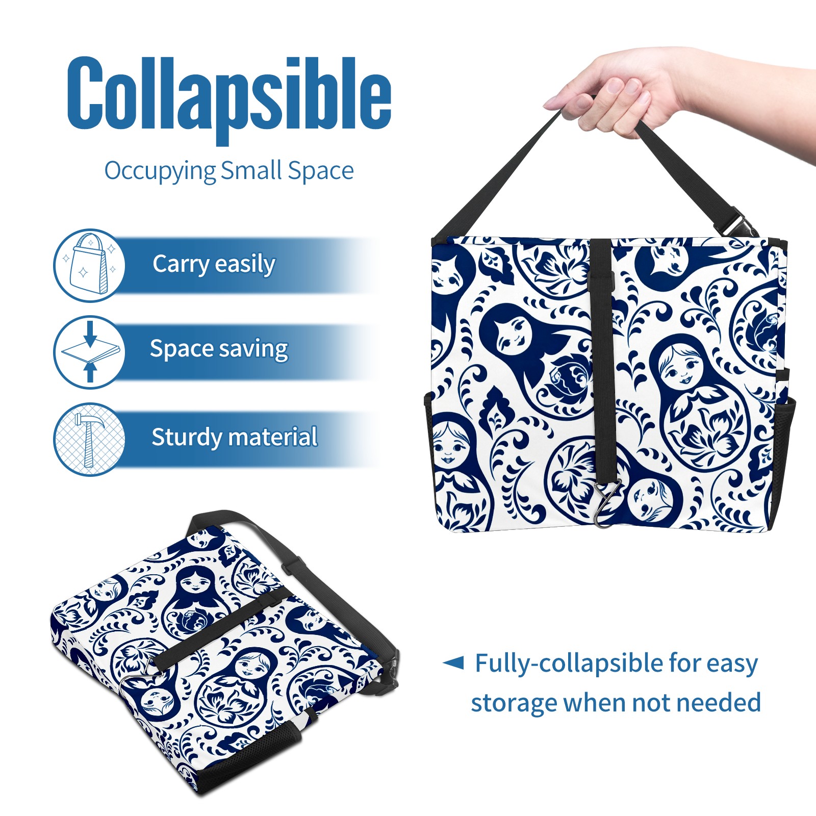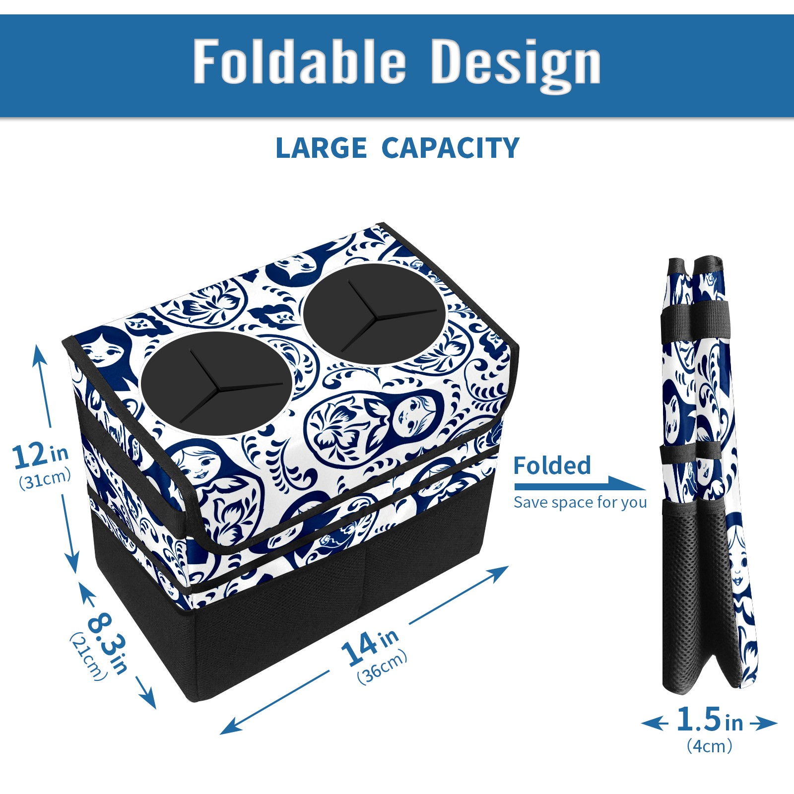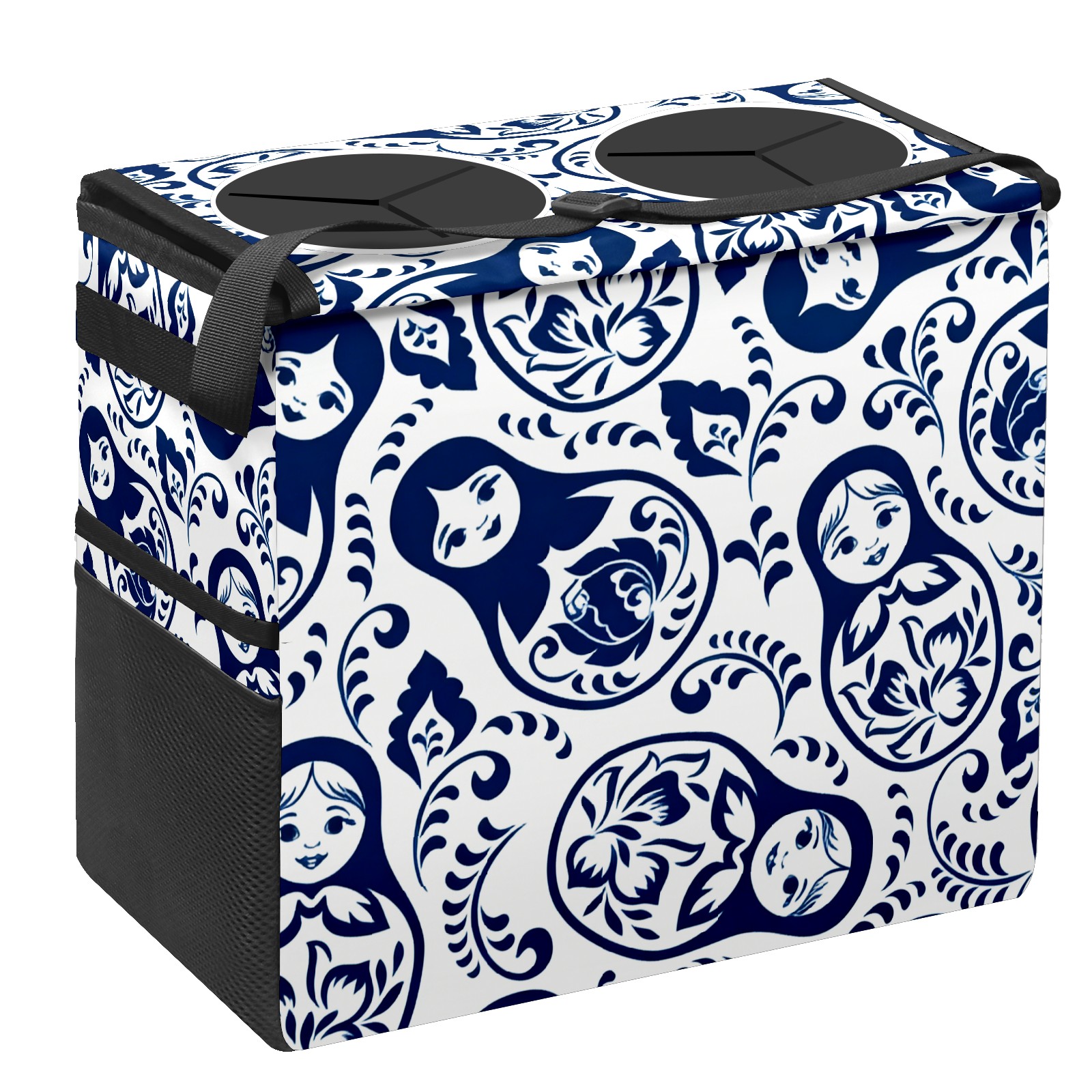Car Trash Can with Lid, Portable Hanging Automotive Garbage Bin for Vehicles, Leakproof Waste Bag Container for SUV Truck Van Interior Auto Travel Road Trips(Elegant Patterns Blue)
