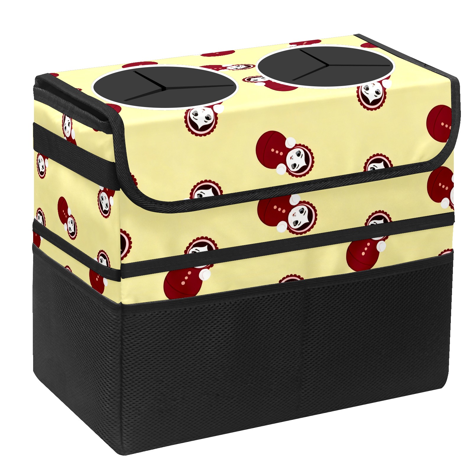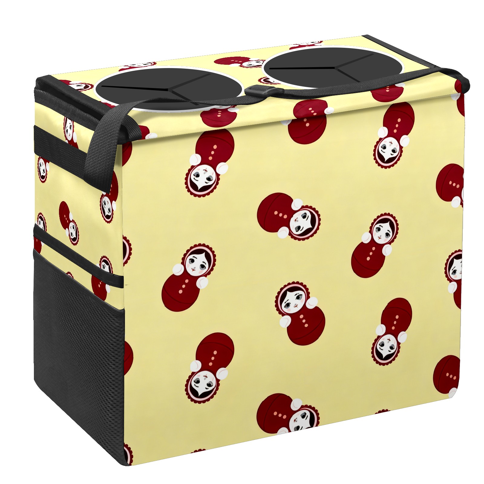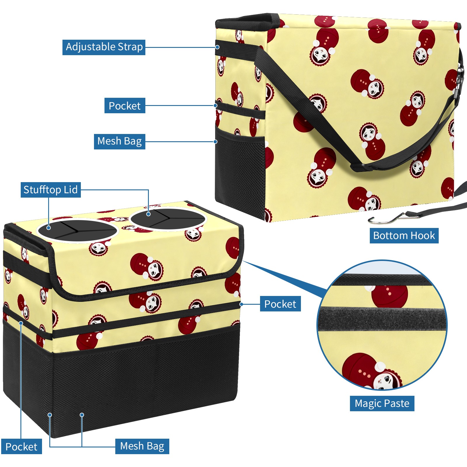 Car Trash Can with Lid, Portable Hanging Automotive Garbage Bin for Vehicles, Leakproof Waste Bag Container for SUV Truck Van Interior Auto Travel Road Trips(Cute Dolls Yellow)