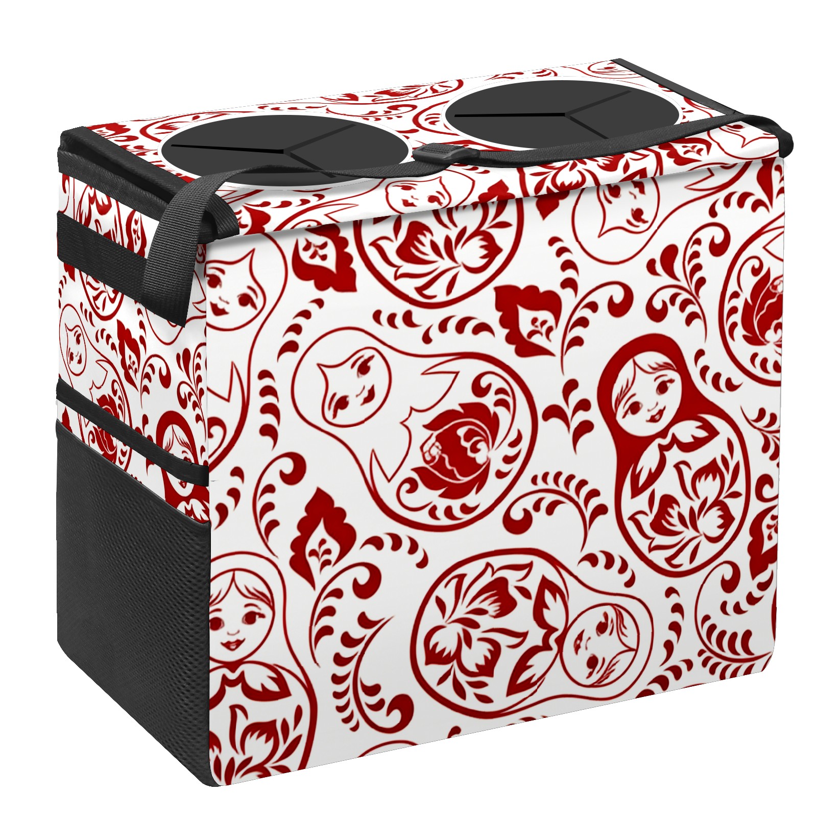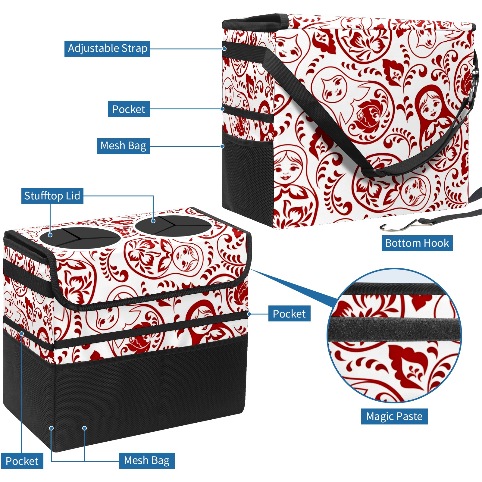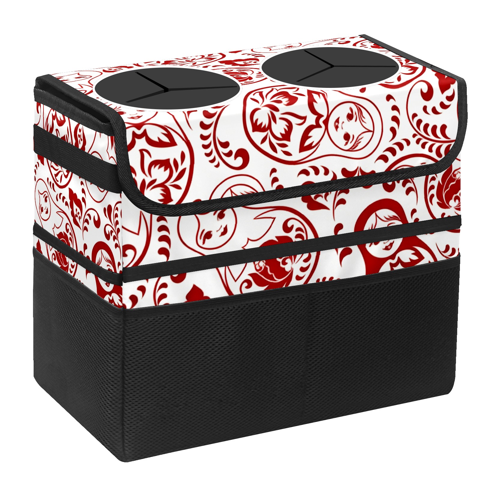 Car Trash Can with Lid, Portable Hanging Automotive Garbage Bin for Vehicles, Leakproof Waste Bag Container for SUV Truck Van Interior Auto Travel Road Trips(Intricate Patterns Red)