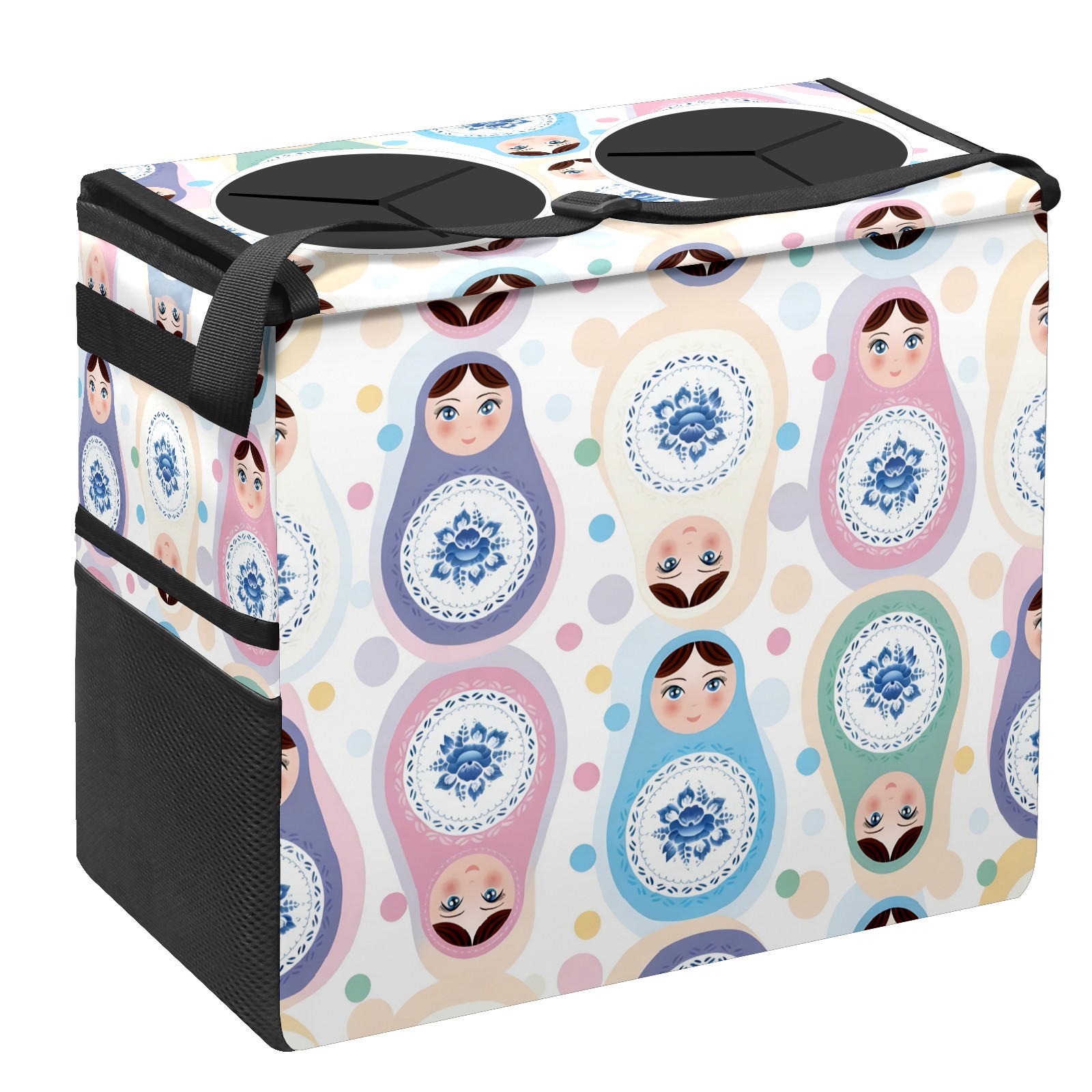 Car Trash Can with Lid, Portable Hanging Automotive Garbage Bin for Vehicles, Leakproof Waste Bag Container for SUV Truck Van Interior Auto Travel Road Trips(Soft Dolls Pink)
