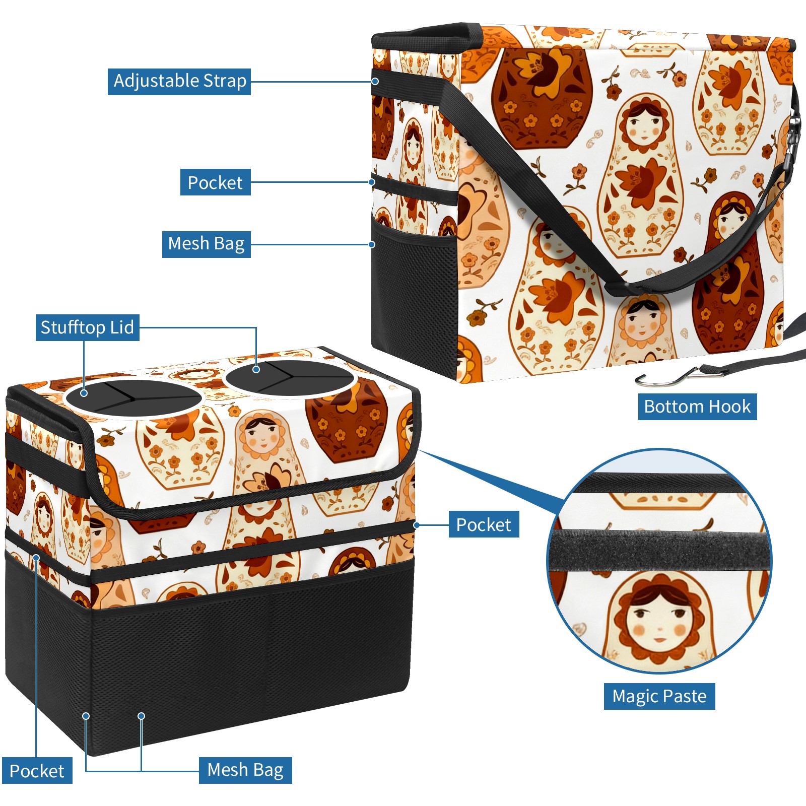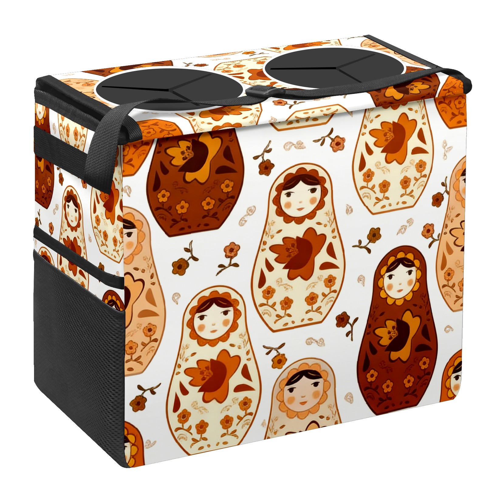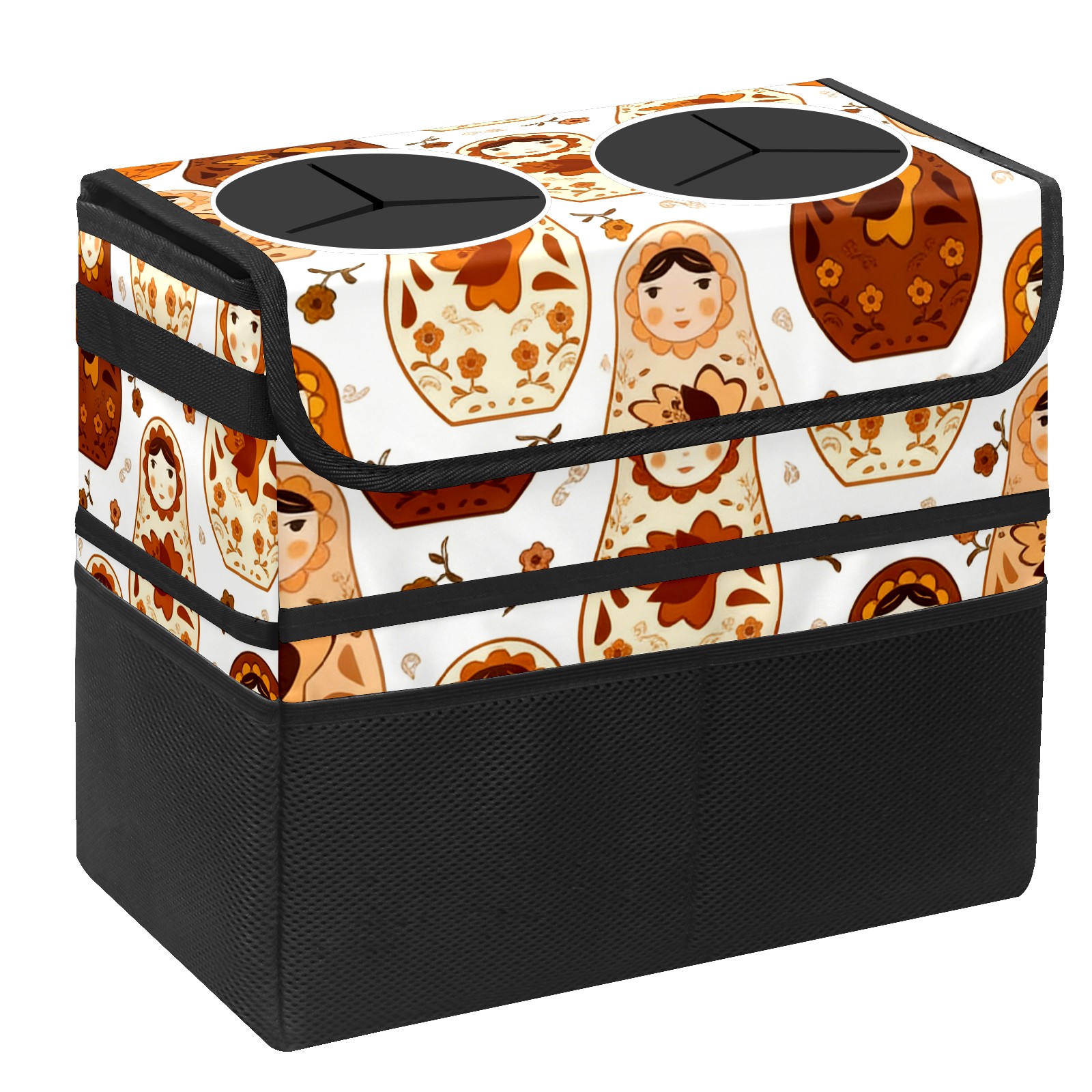Car Trash Can with Lid, Portable Hanging Automotive Garbage Bin for Vehicles, Leakproof Waste Bag Container for SUV Truck Van Interior Auto Travel Road Trips(Calm Dolls Brown)