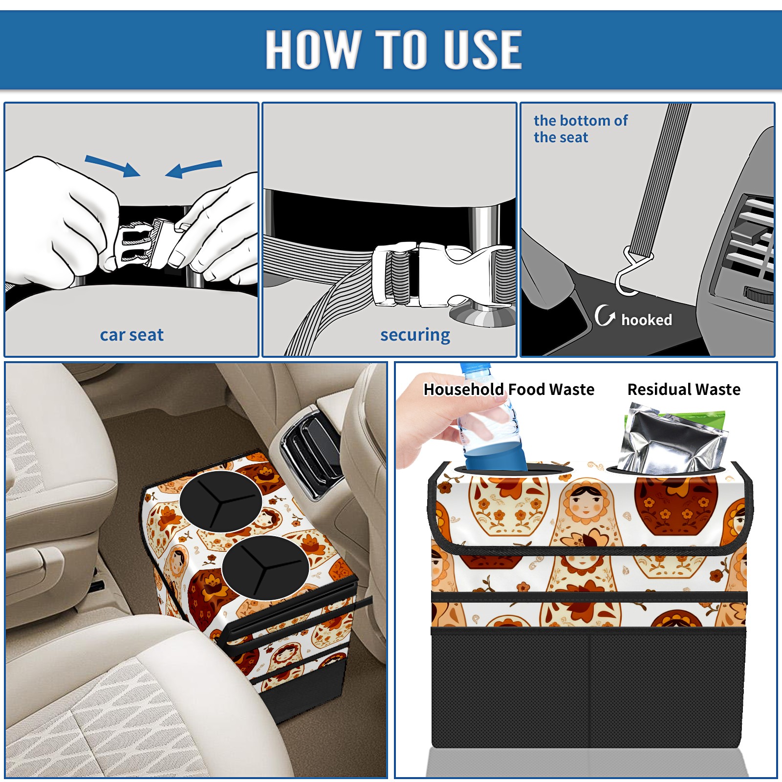 <p><b>Keep Your Car Clean &amp; Organized</b></p> <p>Tired of car clutter? Our durable car trash can is the perfect solution. This compact, leak-proof bin fits perfectly in cup holders, door pockets, or between seats.</p> <p>Ideal for commutes, road trips, and school runs, it’s a must-have car accessory. Use it as a hanging trash bag or a sturdy garbage bin for your SUV, truck, or back seat.</p> <p>Made from tough, easy-clean material, this portable trash container keeps your vehicle spotless. Get your essential car organizer today and enjoy a cleaner ride!</p>