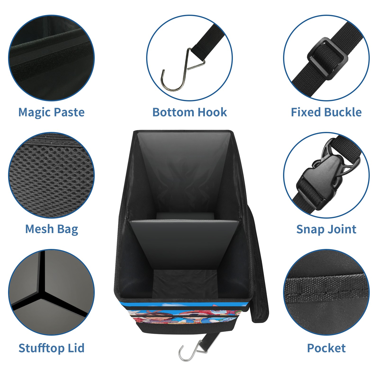 Car Trash Can with Lid, Portable Hanging Automotive Garbage Bin for Vehicles, Leakproof Waste Bag Container for SUV Truck Van Interior Auto Travel Road Trips(横图C (198))