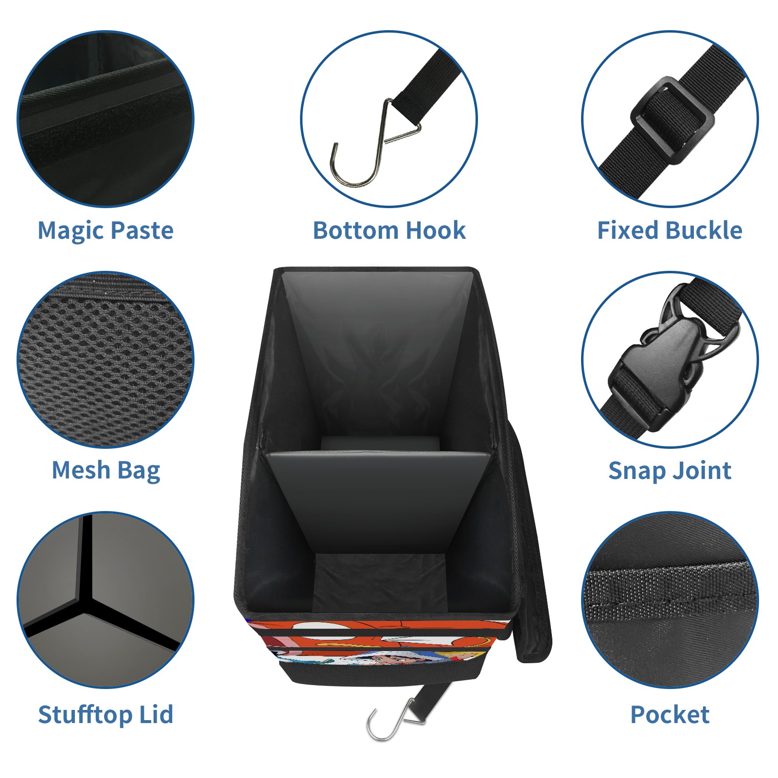 Car Trash Can with Lid, Portable Hanging Automotive Garbage Bin for Vehicles, Leakproof Waste Bag Container for SUV Truck Van Interior Auto Travel Road Trips(横图C (174))