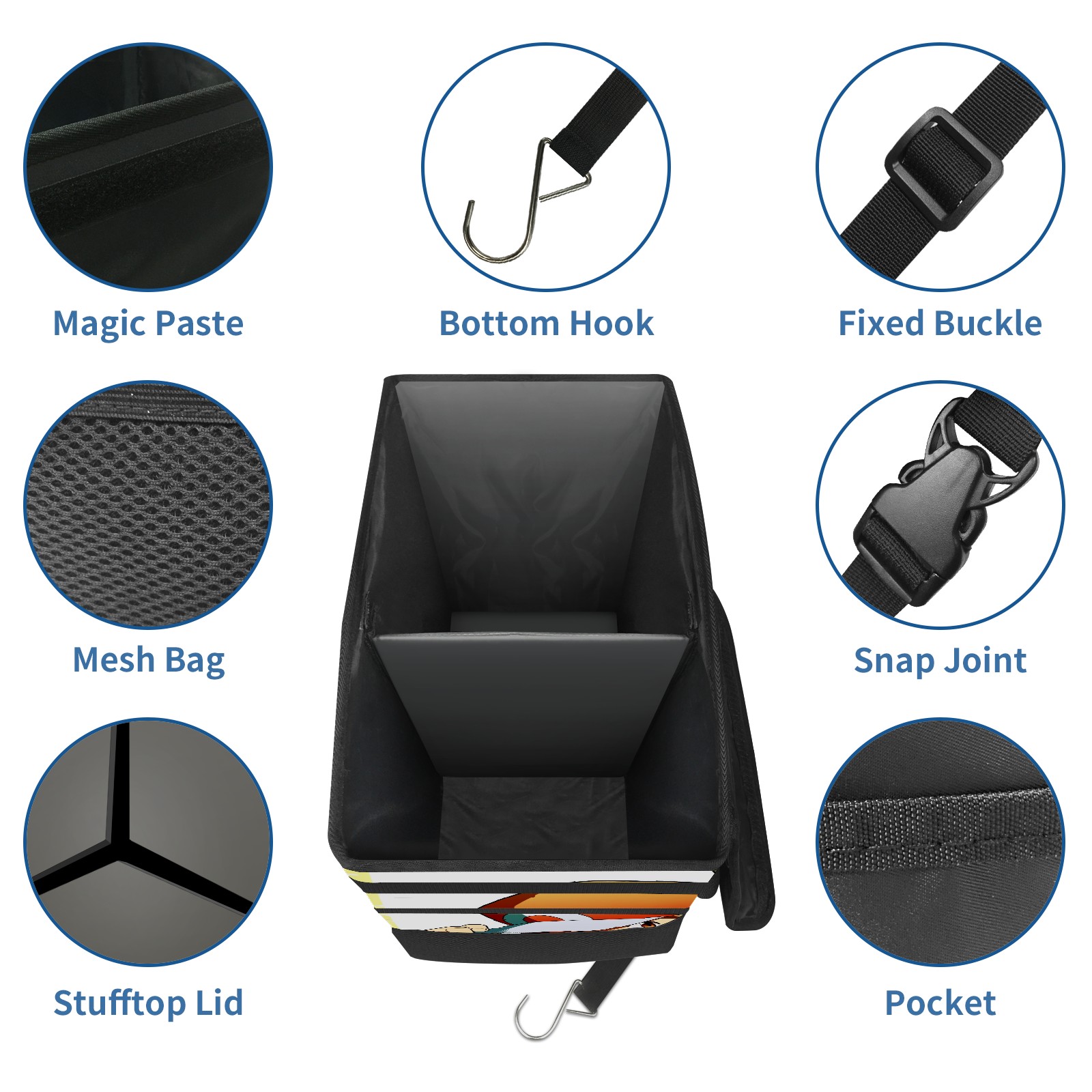 Car Trash Can with Lid, Portable Hanging Automotive Garbage Bin for Vehicles, Leakproof Waste Bag Container for SUV Truck Van Interior Auto Travel Road Trips(横图B (348))