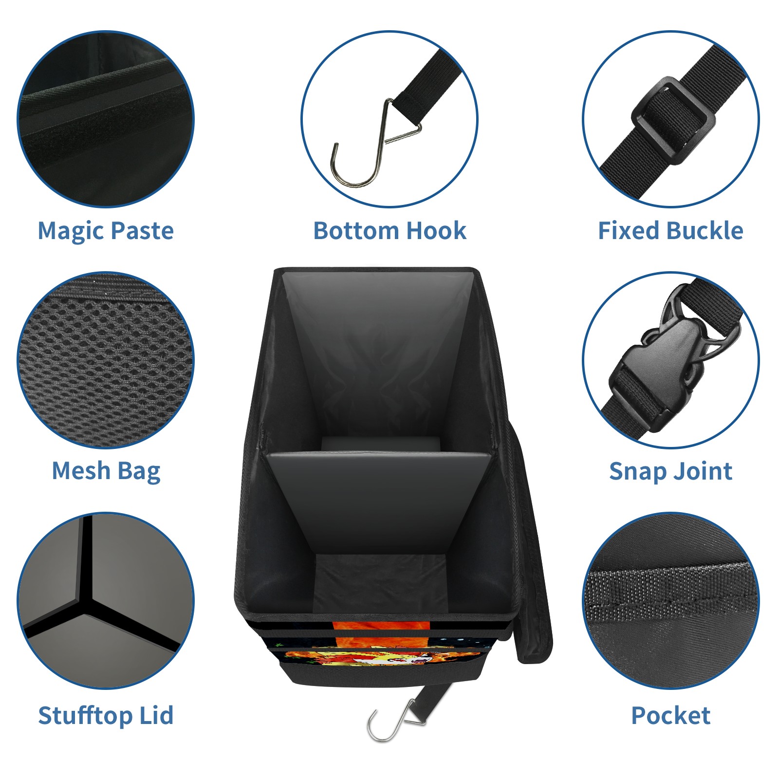 Car Trash Can with Lid, Portable Hanging Automotive Garbage Bin for Vehicles, Leakproof Waste Bag Container for SUV Truck Van Interior Auto Travel Road Trips(横图B (217))