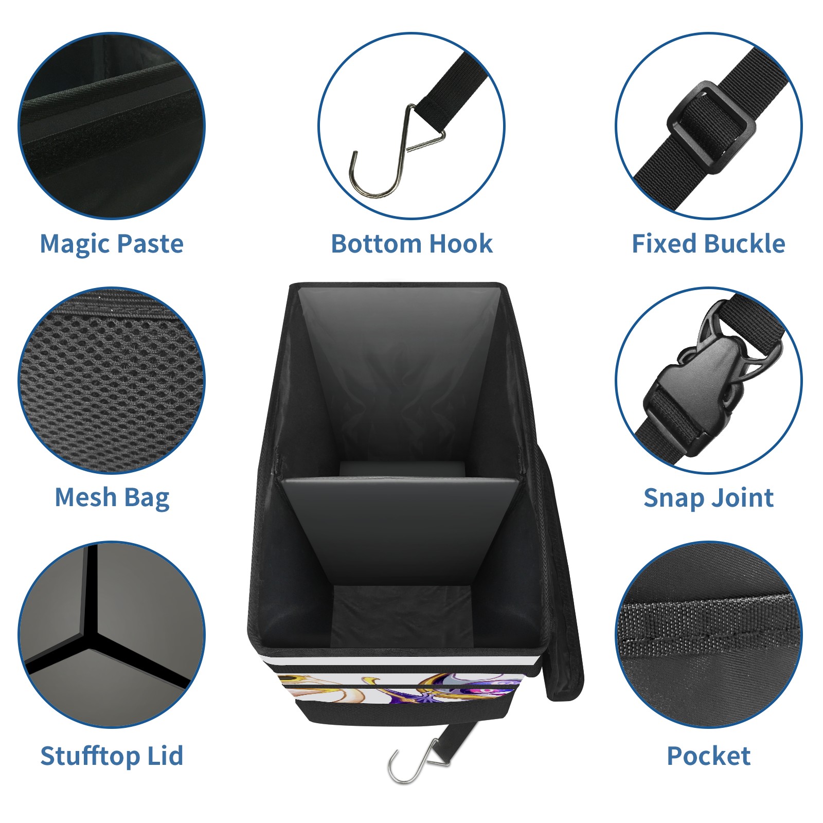 Car Trash Can with Lid, Portable Hanging Automotive Garbage Bin for Vehicles, Leakproof Waste Bag Container for SUV Truck Van Interior Auto Travel Road Trips(横图B (215))