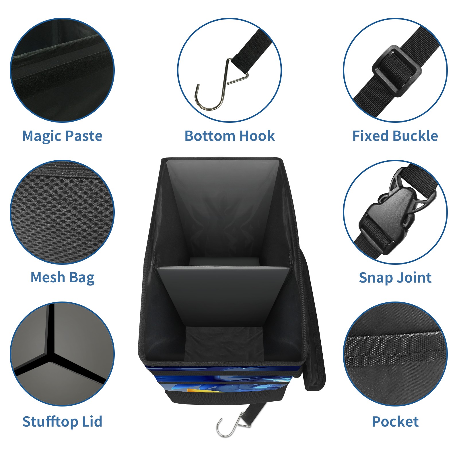Car Trash Can with Lid, Portable Hanging Automotive Garbage Bin for Vehicles, Leakproof Waste Bag Container for SUV Truck Van Interior Auto Travel Road Trips(横图B (165))