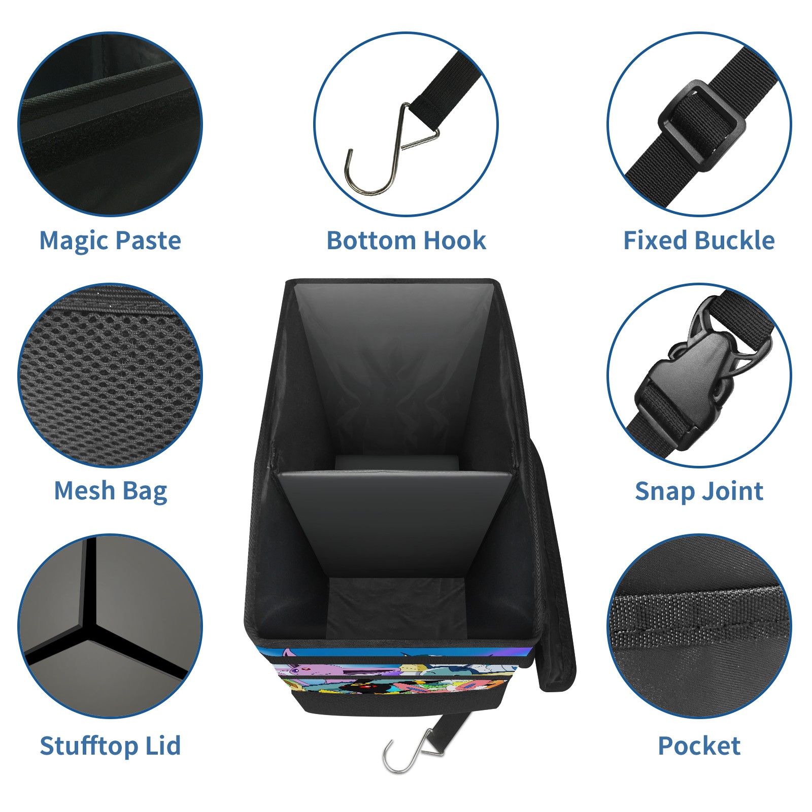 Car Trash Can with Lid, Portable Hanging Automotive Garbage Bin for Vehicles, Leakproof Waste Bag Container for SUV Truck Van Interior Auto Travel Road Trips(横图B (155))