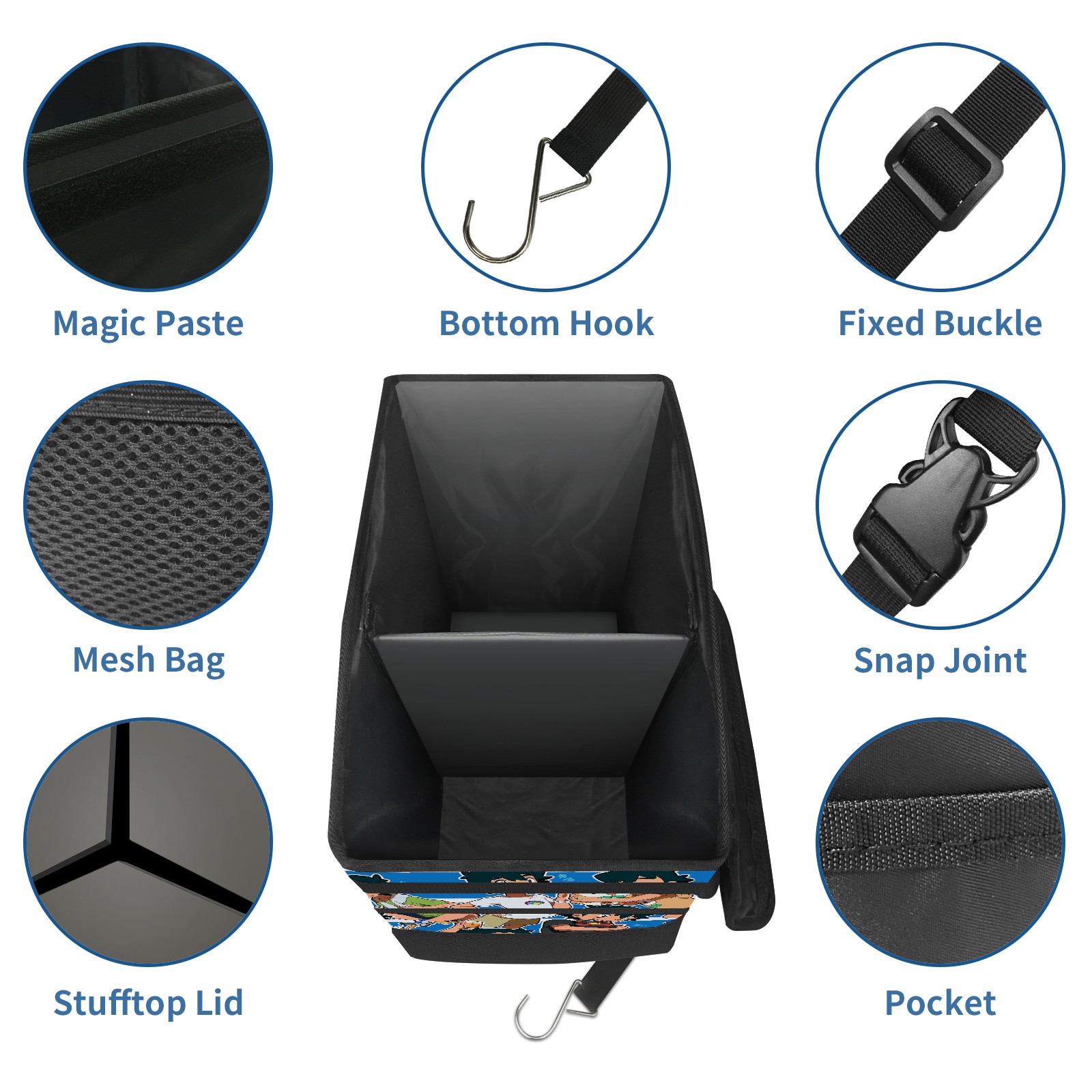Car Trash Can with Lid, Portable Hanging Automotive Garbage Bin for Vehicles, Leakproof Waste Bag Container for SUV Truck Van Interior Auto Travel Road Trips(横图B (12))