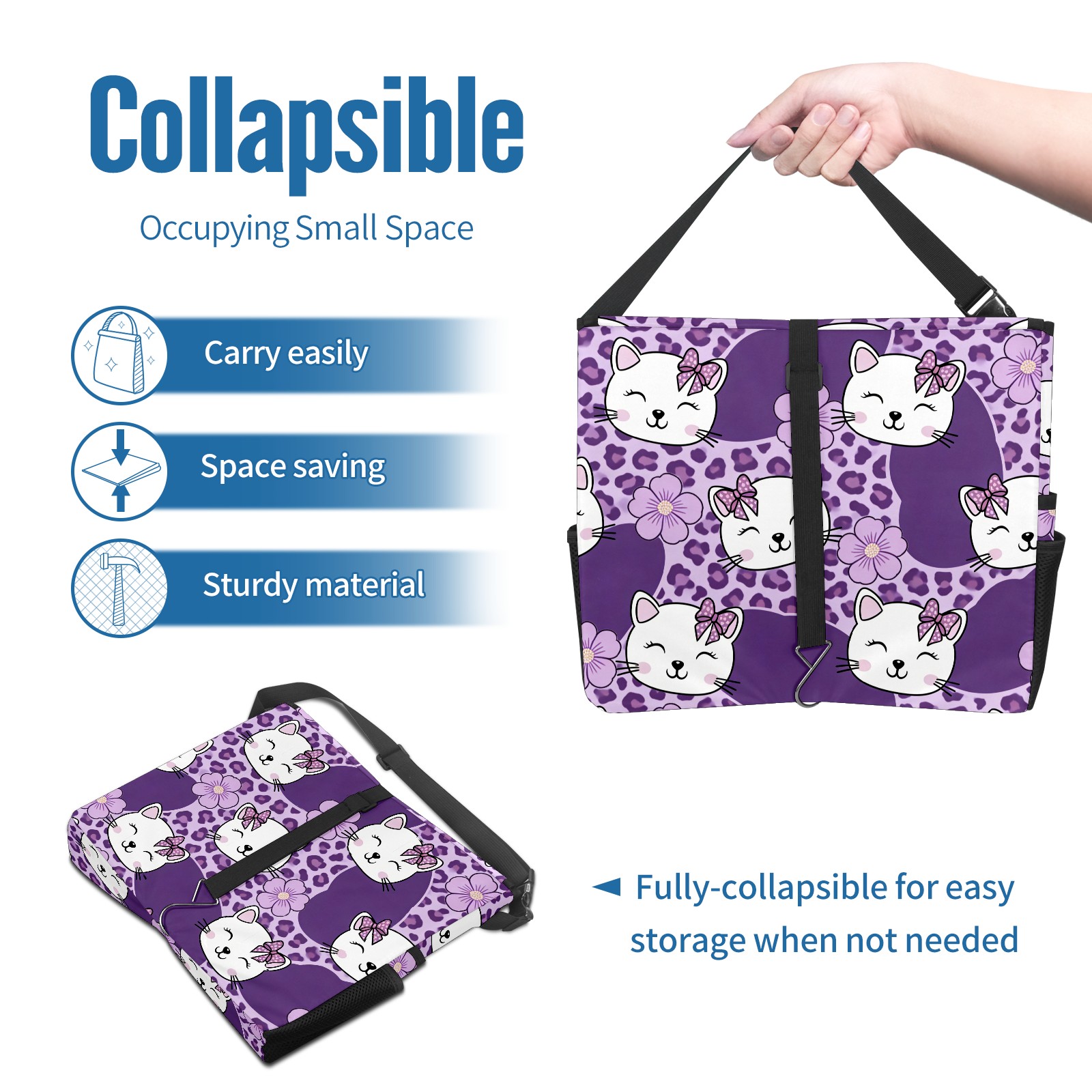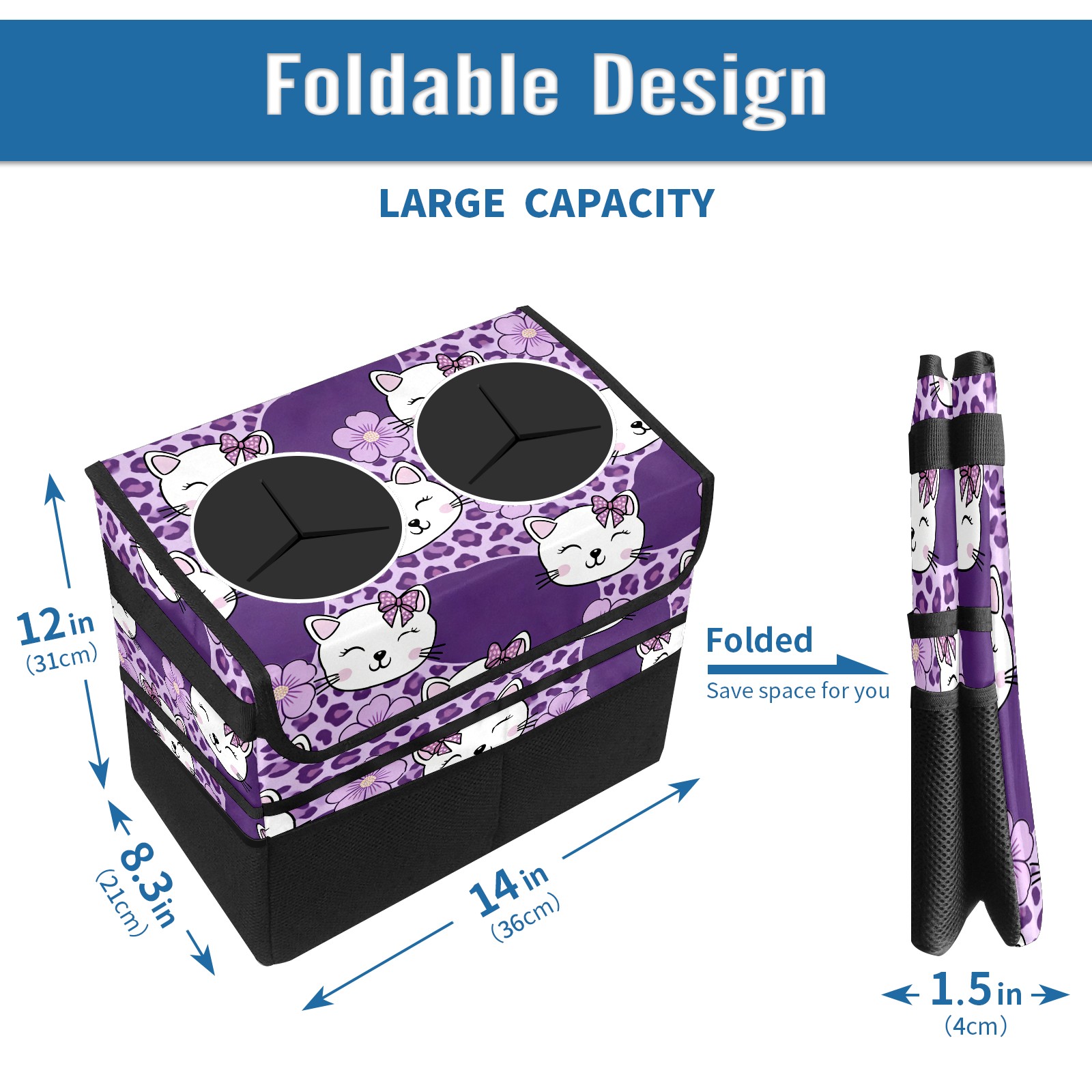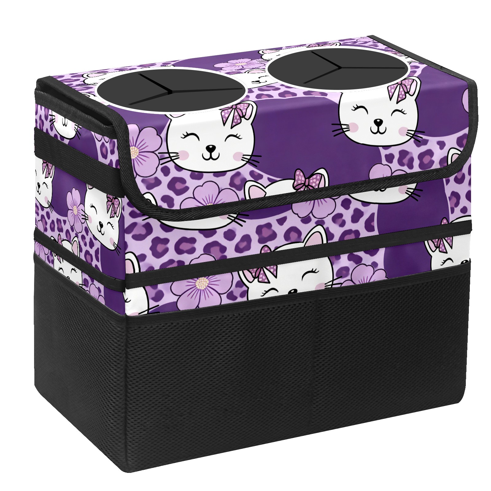 Car Trash Can with Lid, Portable Hanging Automotive Garbage Bin for Vehicles, Leakproof Waste Bag Container for SUV Truck Van Interior Auto Travel Road Trips(Cat Purple)