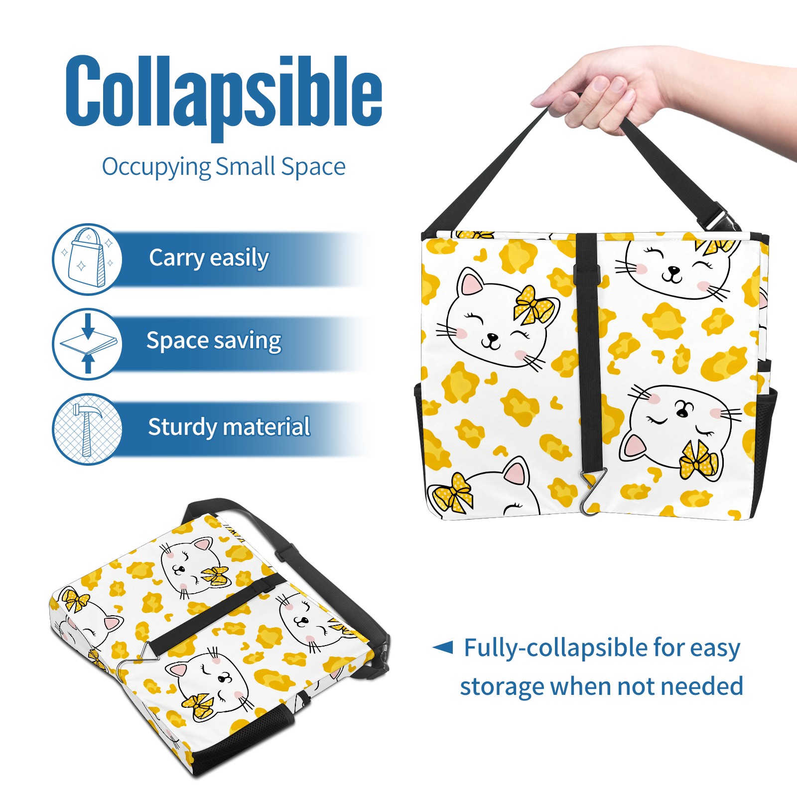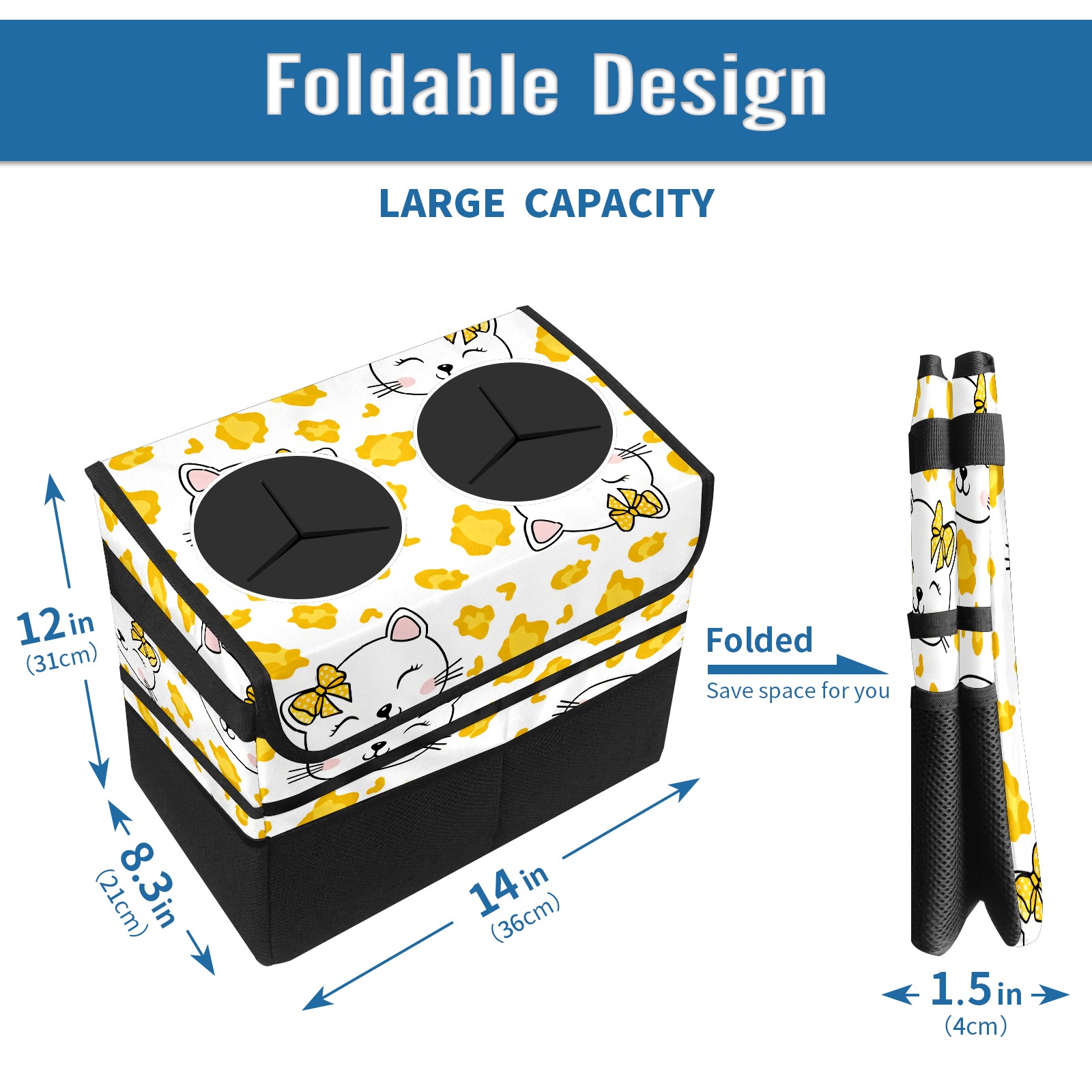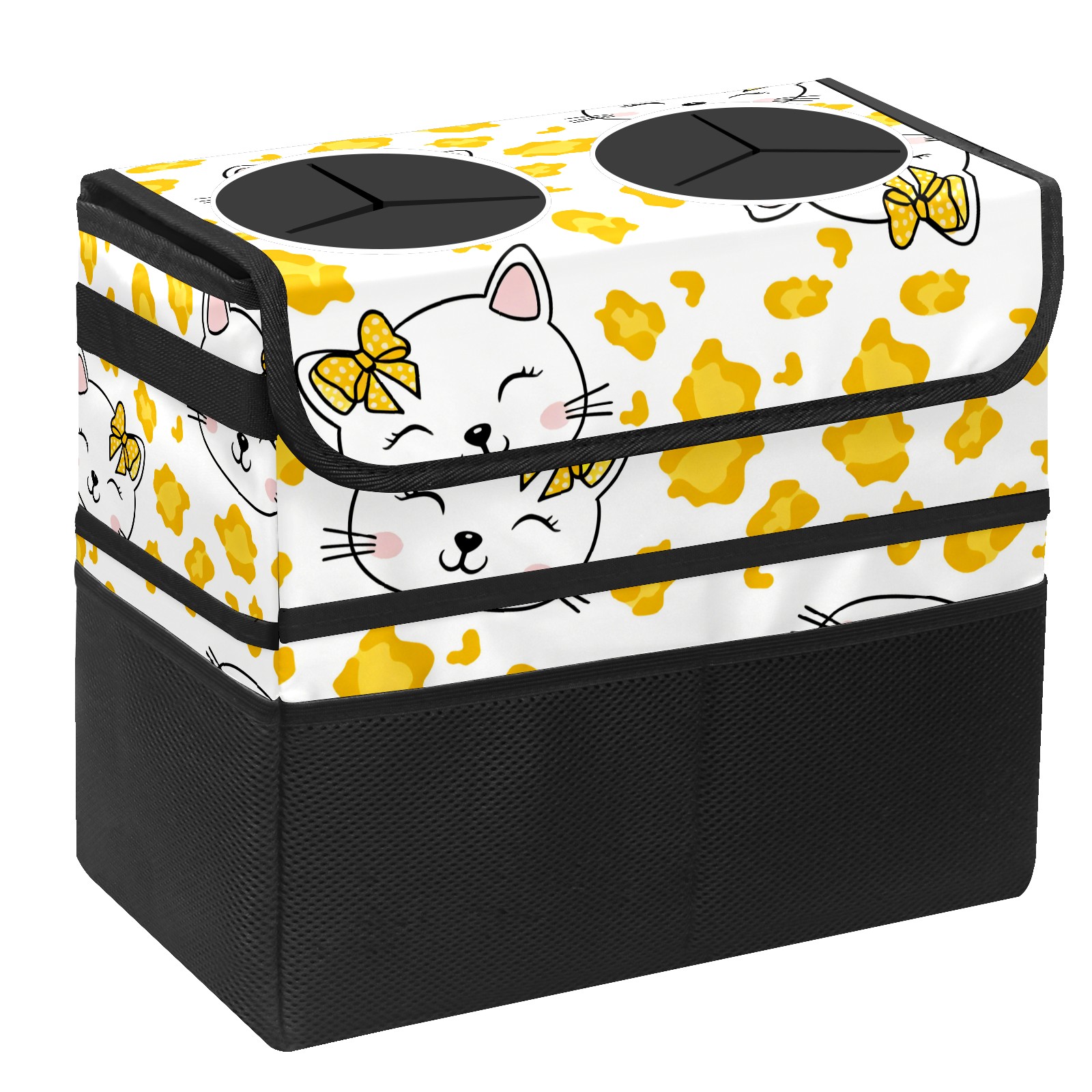 Car Trash Can with Lid, Portable Hanging Automotive Garbage Bin for Vehicles, Leakproof Waste Bag Container for SUV Truck Van Interior Auto Travel Road Trips(Hello Cat Yellow)