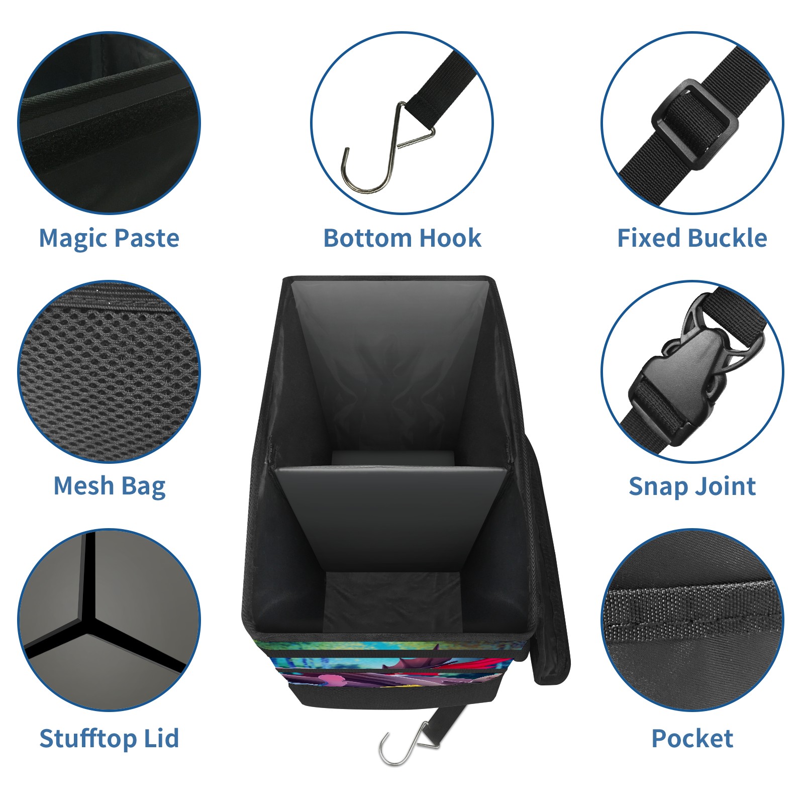 Car Trash Can with Lid, Portable Hanging Automotive Garbage Bin for Vehicles, Leakproof Waste Bag Container for SUV Truck Van Interior Auto Travel Road Trips(横图A (382))