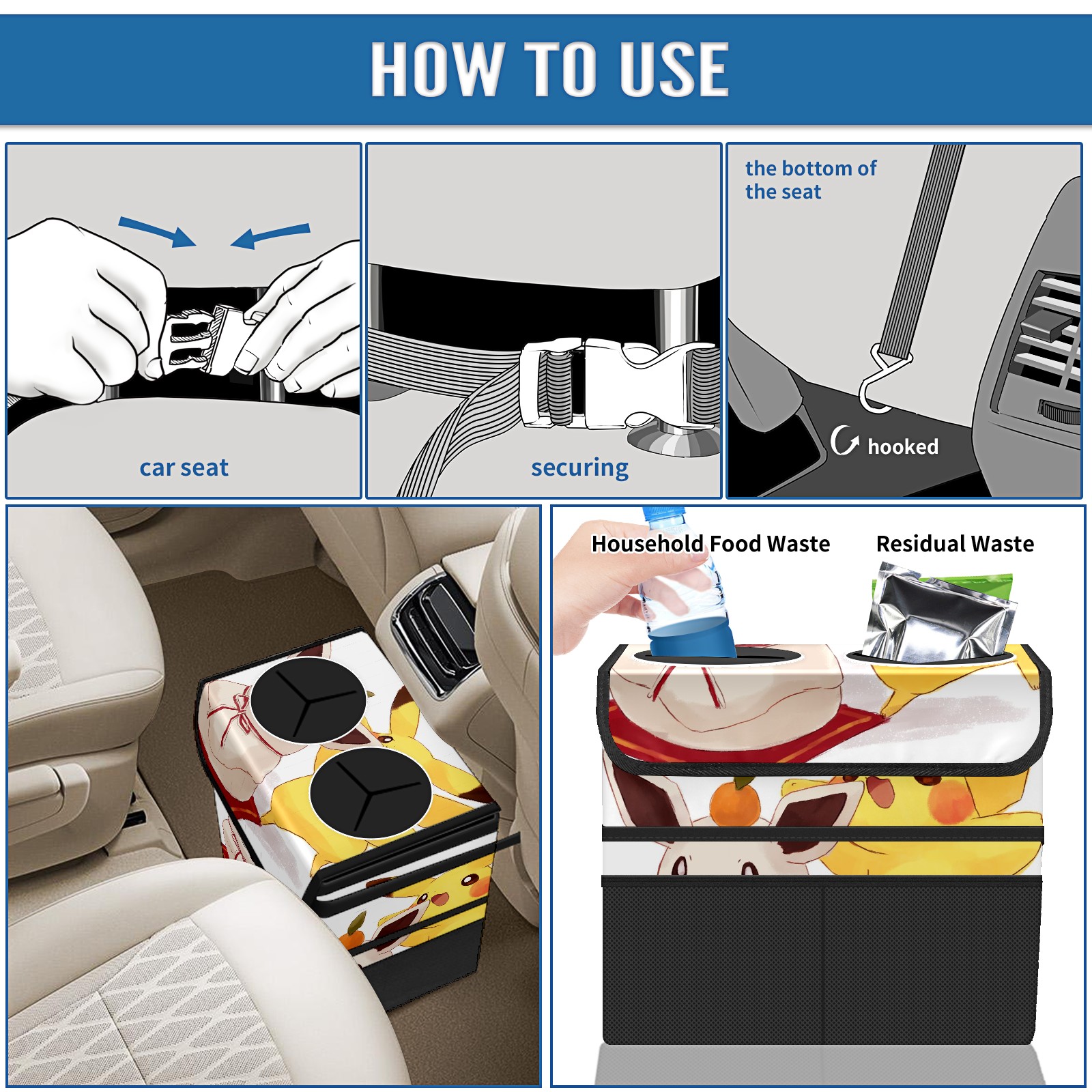 Car Trash Can with Lid, Portable Hanging Automotive Garbage Bin for Vehicles, Leakproof Waste Bag Container for SUV Truck Van Interior Auto Travel Road Trips(横图A (288))