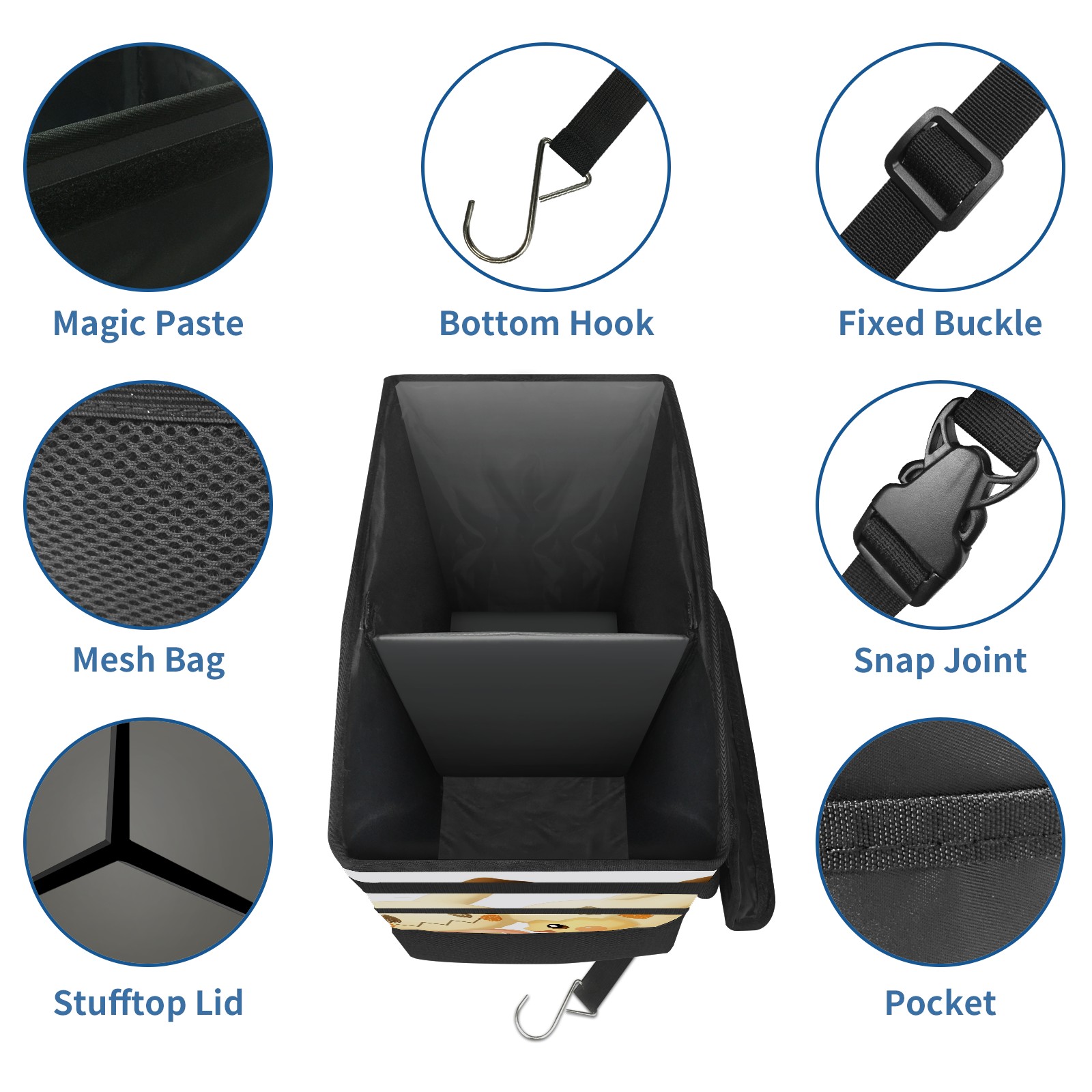 Car Trash Can with Lid, Portable Hanging Automotive Garbage Bin for Vehicles, Leakproof Waste Bag Container for SUV Truck Van Interior Auto Travel Road Trips(横图A (274))