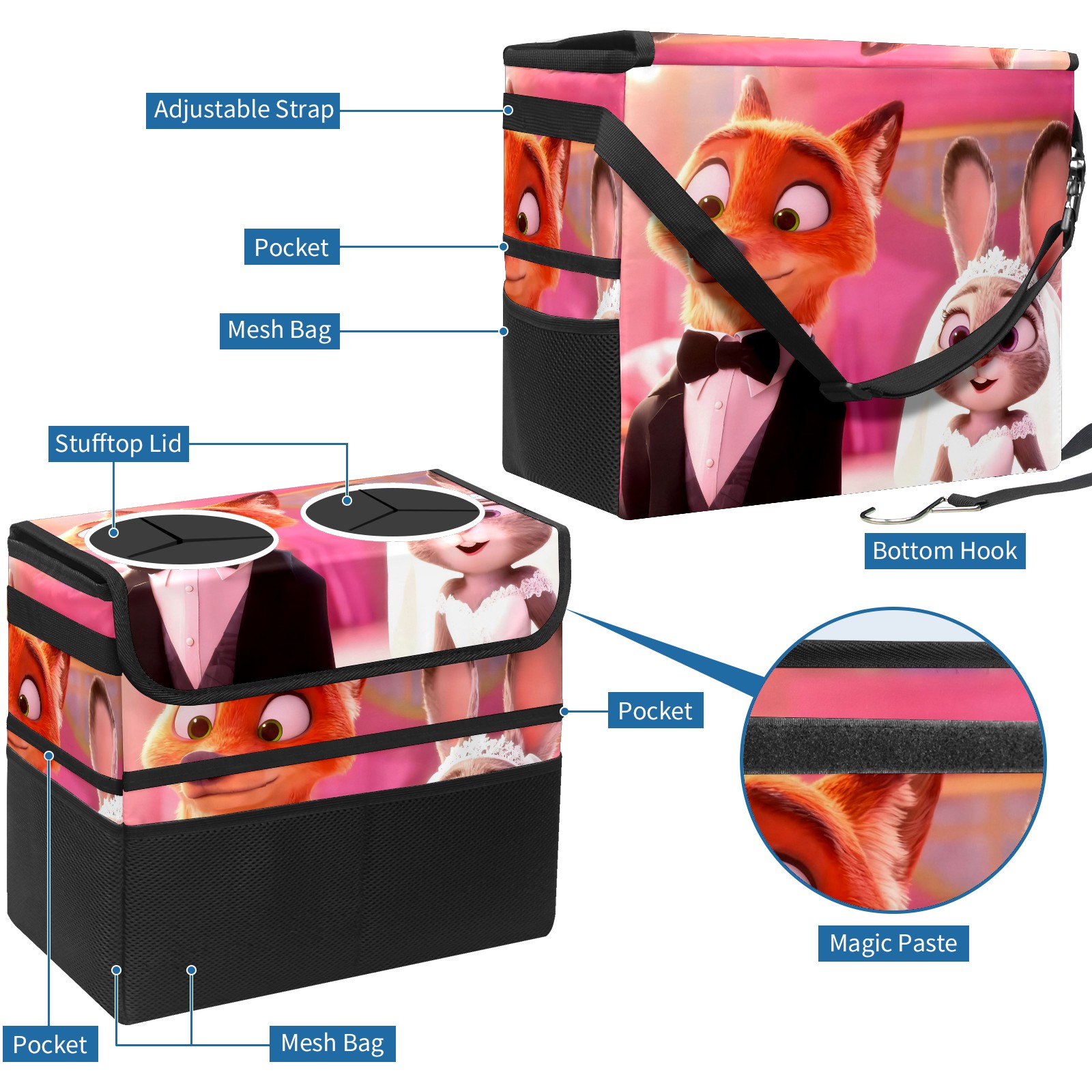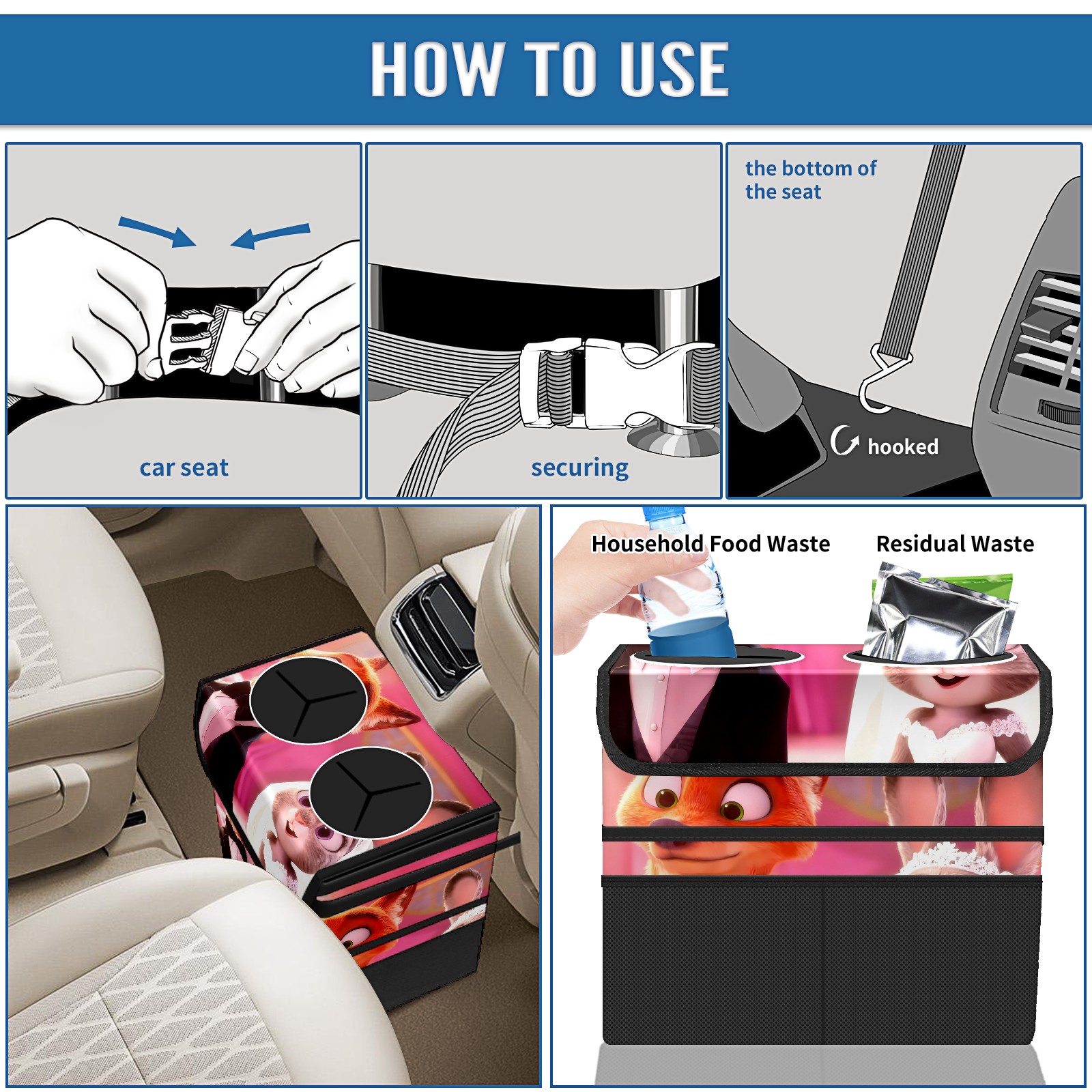 Car Trash Can with Lid, Portable Hanging Automotive Garbage Bin for Vehicles, Leakproof Waste Bag Container for SUV Truck Van Interior Auto Travel Road Trips(朱迪尼克礼服 IPad版02)
