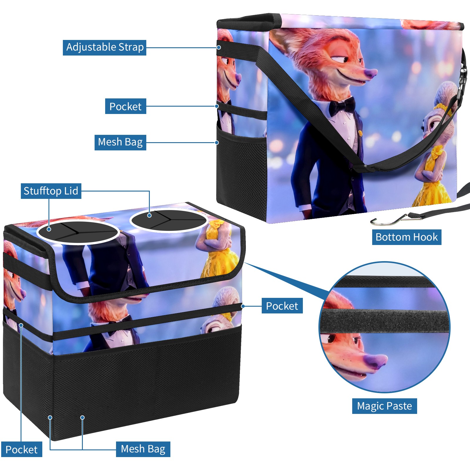 Car Trash Can with Lid, Portable Hanging Automotive Garbage Bin for Vehicles, Leakproof Waste Bag Container for SUV Truck Van Interior Auto Travel Road Trips(朱迪尼克礼服 IPad版01)