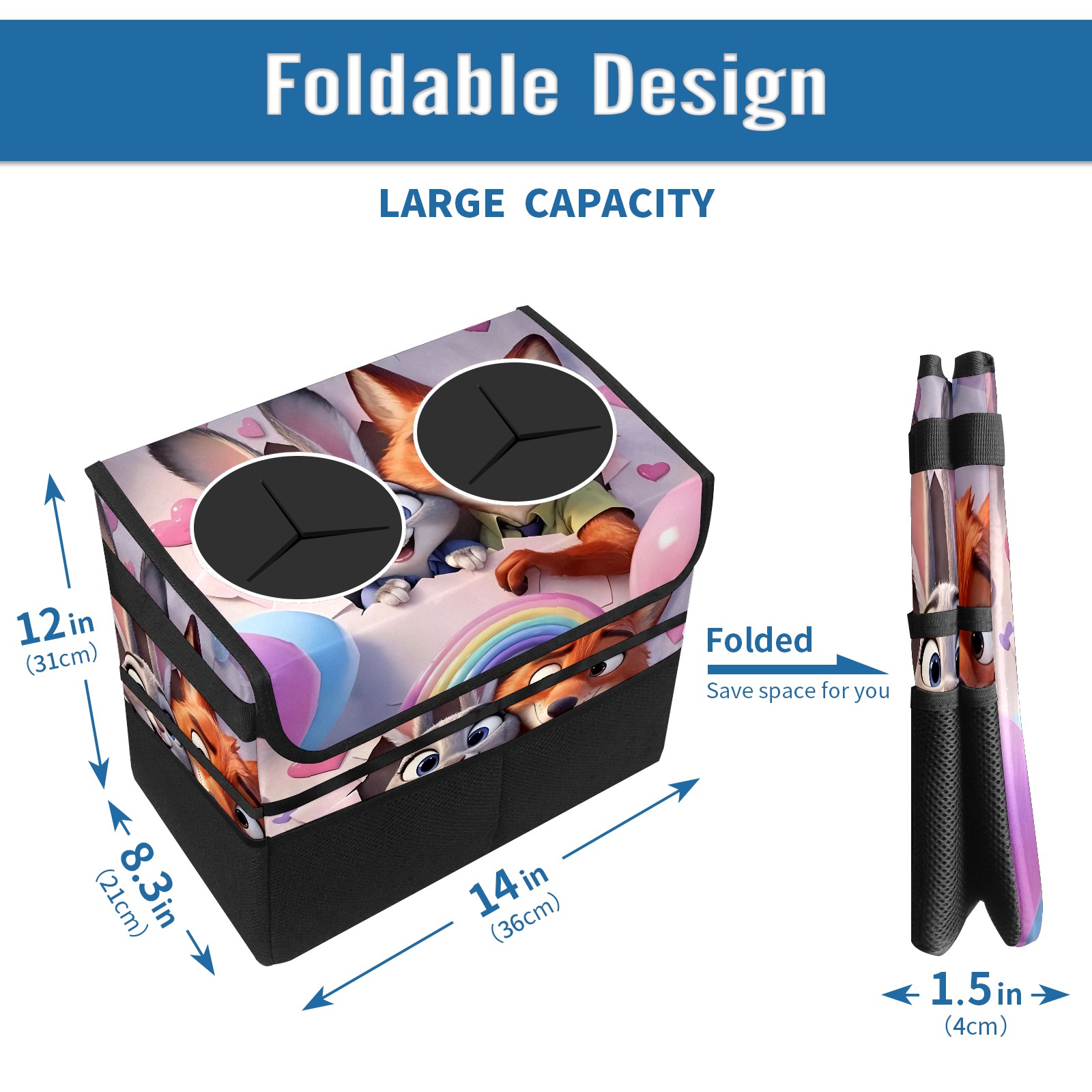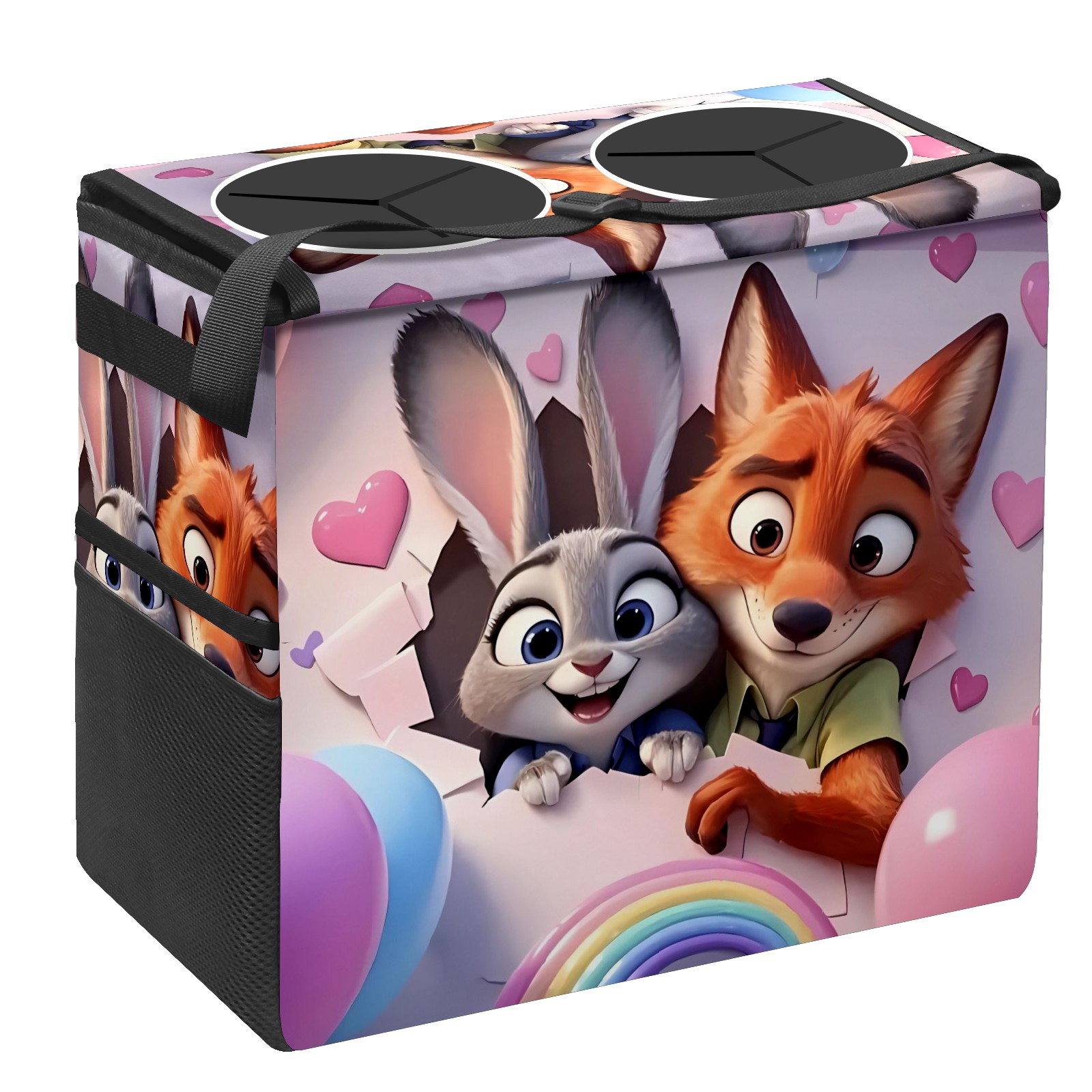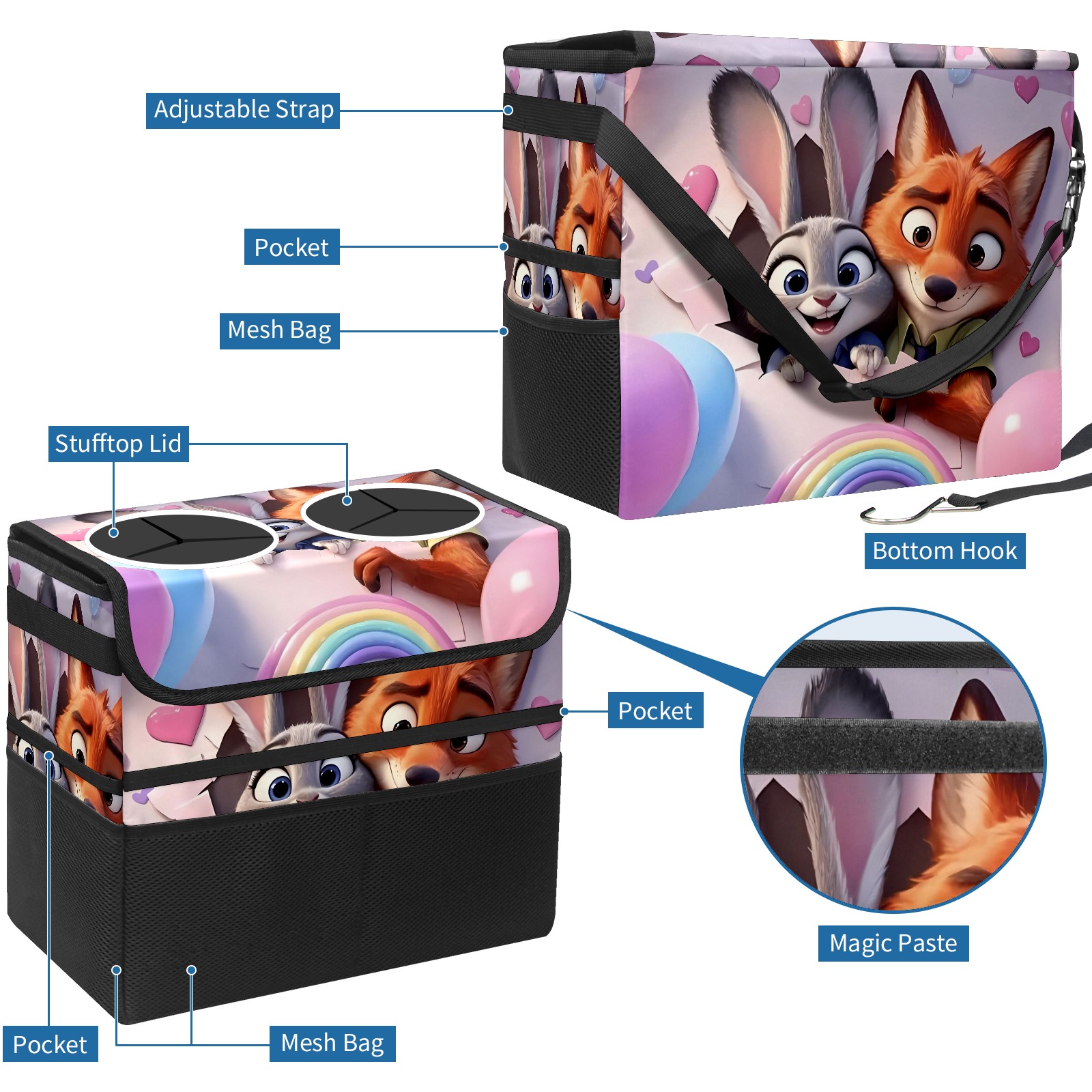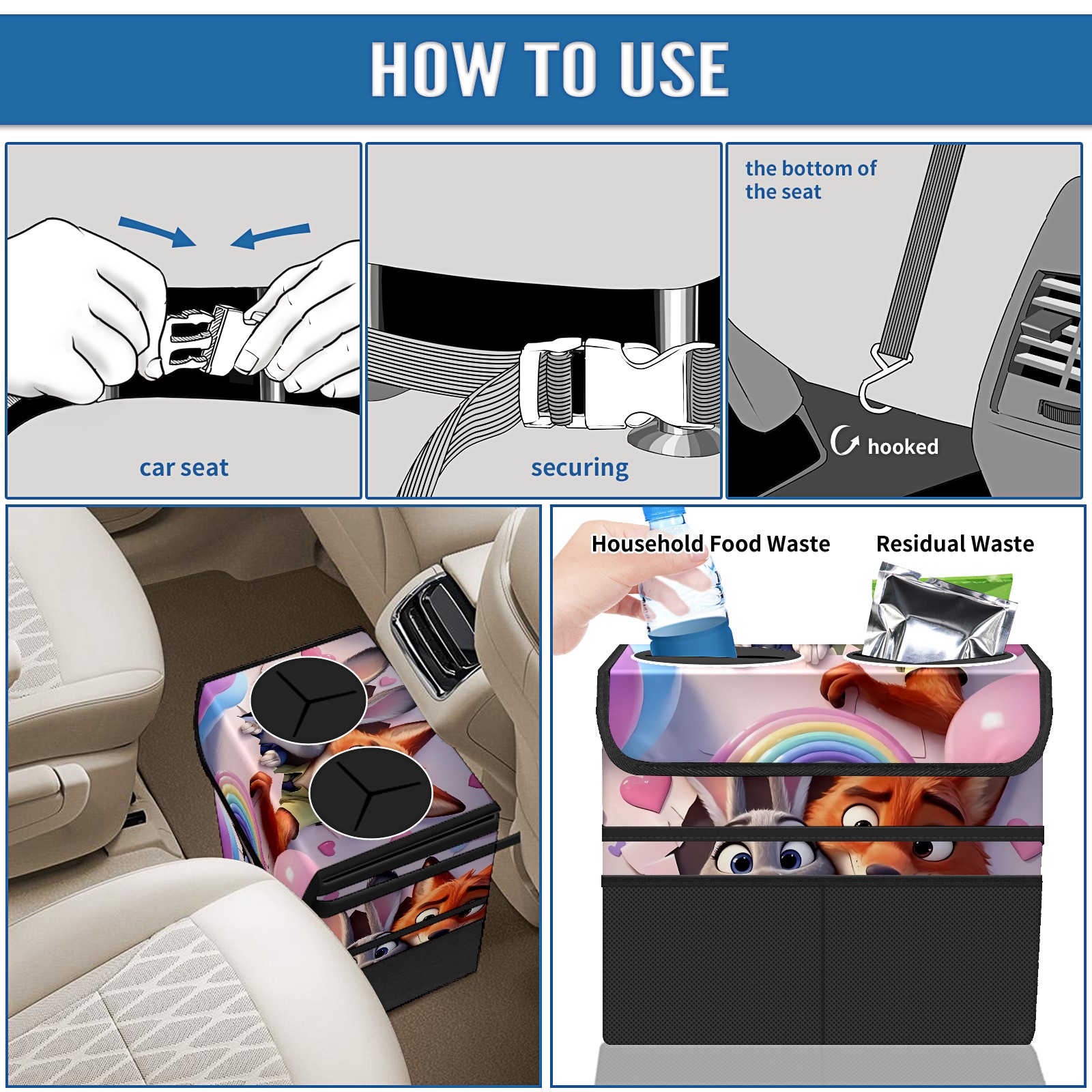 Car Trash Can with Lid, Portable Hanging Automotive Garbage Bin for Vehicles, Leakproof Waste Bag Container for SUV Truck Van Interior Auto Travel Road Trips(疯狂动物城 新增 电脑版 01)
