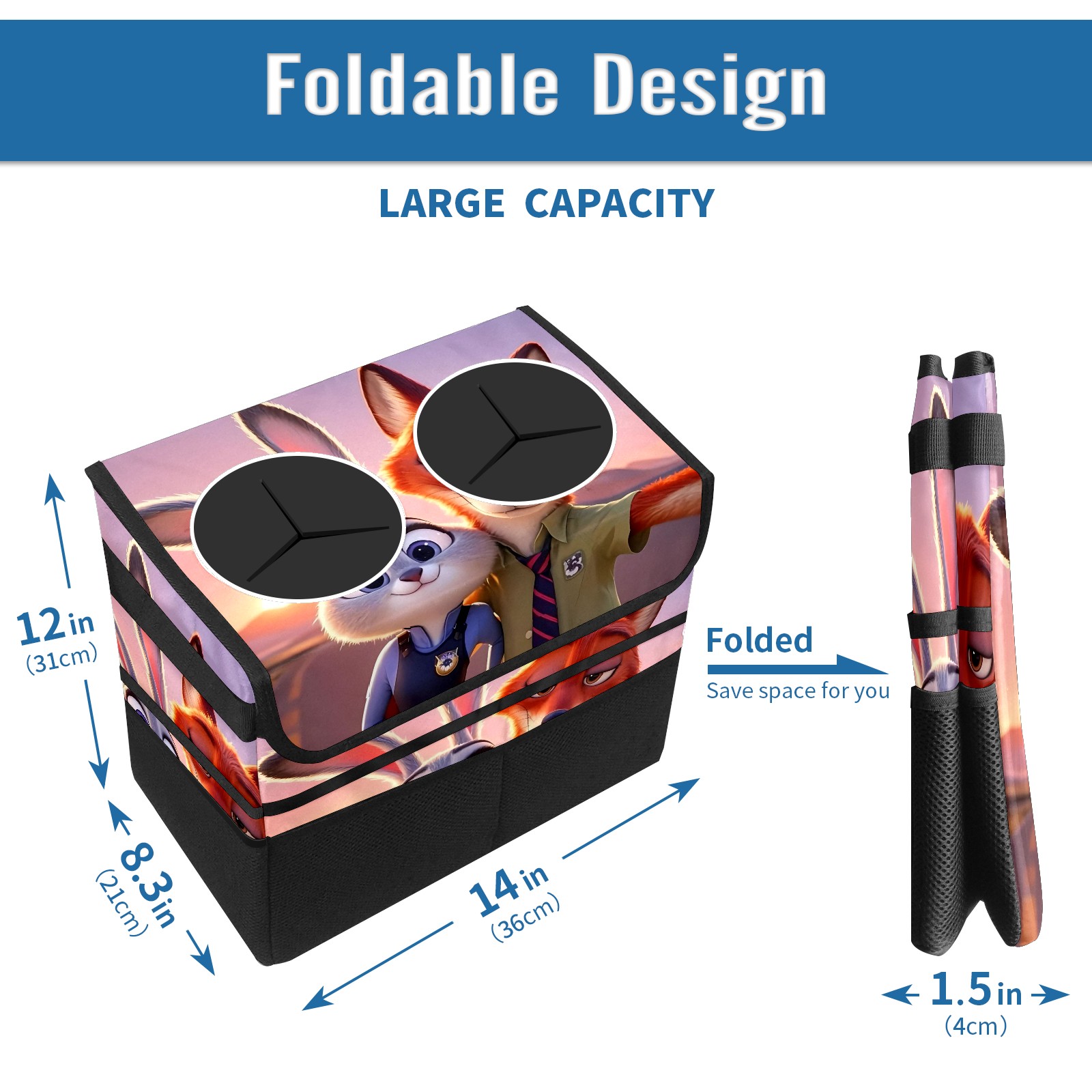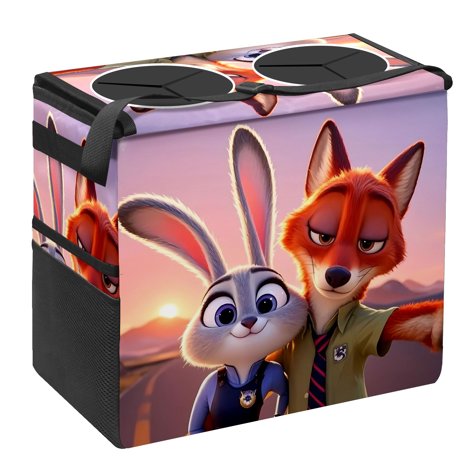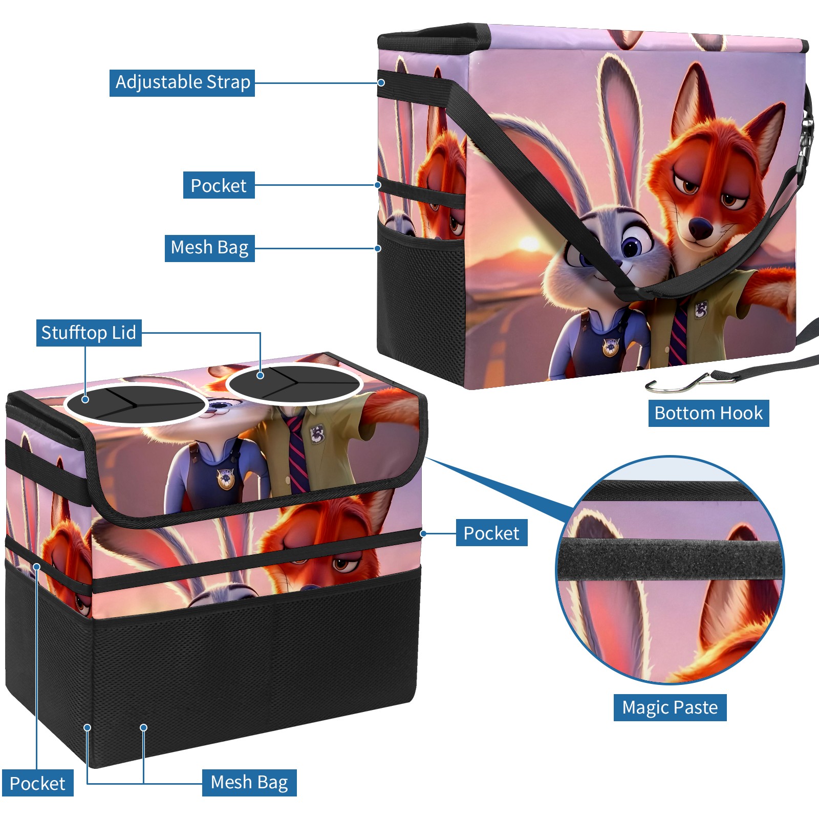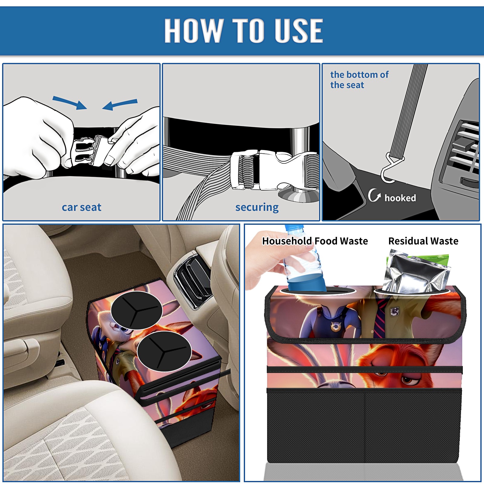 Car Trash Can with Lid, Portable Hanging Automotive Garbage Bin for Vehicles, Leakproof Waste Bag Container for SUV Truck Van Interior Auto Travel Road Trips(疯狂动物城 新增 IPad 04)