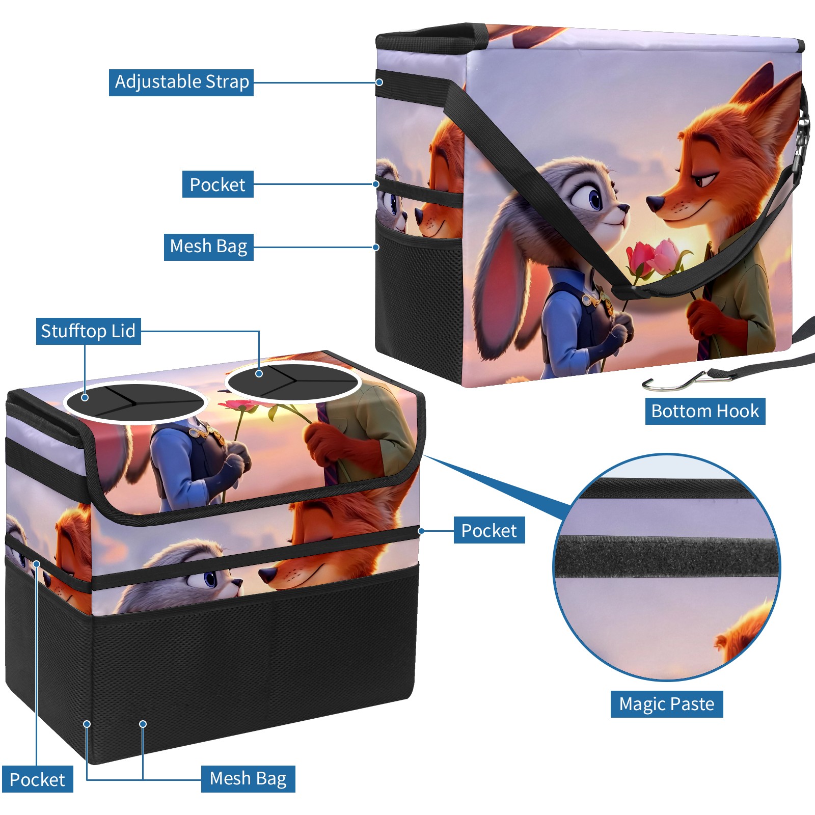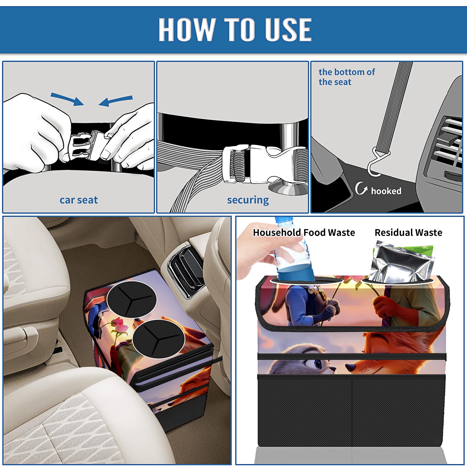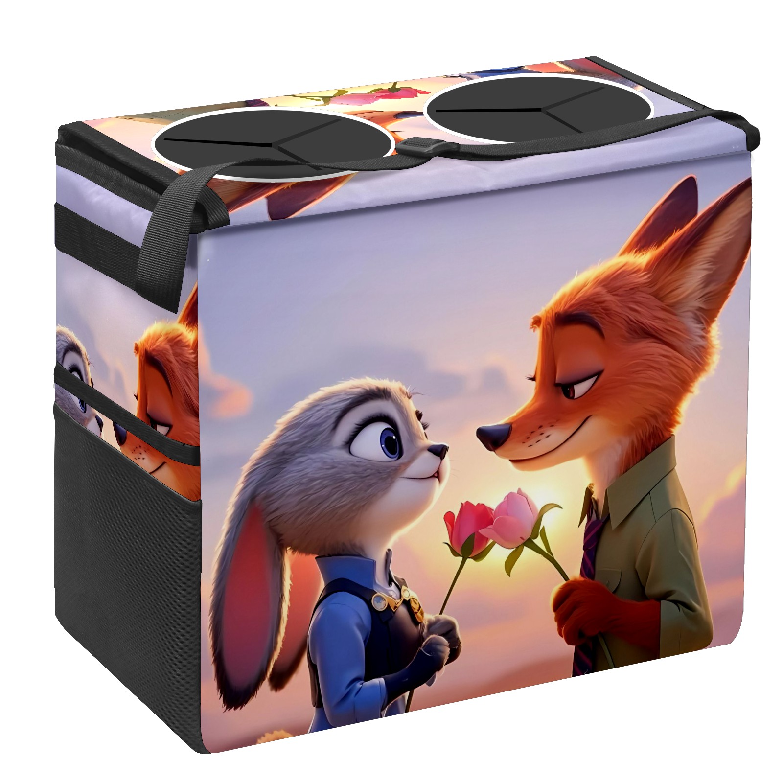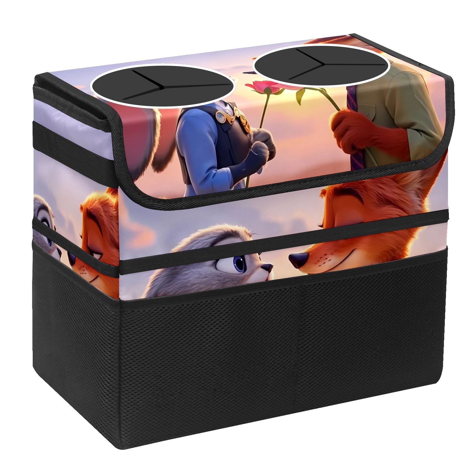 Car Trash Can with Lid, Portable Hanging Automotive Garbage Bin for Vehicles, Leakproof Waste Bag Container for SUV Truck Van Interior Auto Travel Road Trips(疯狂动物城 新增 IPad 03)