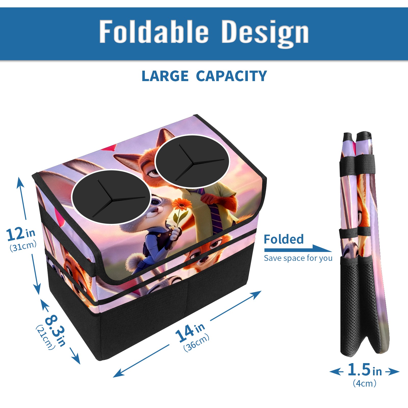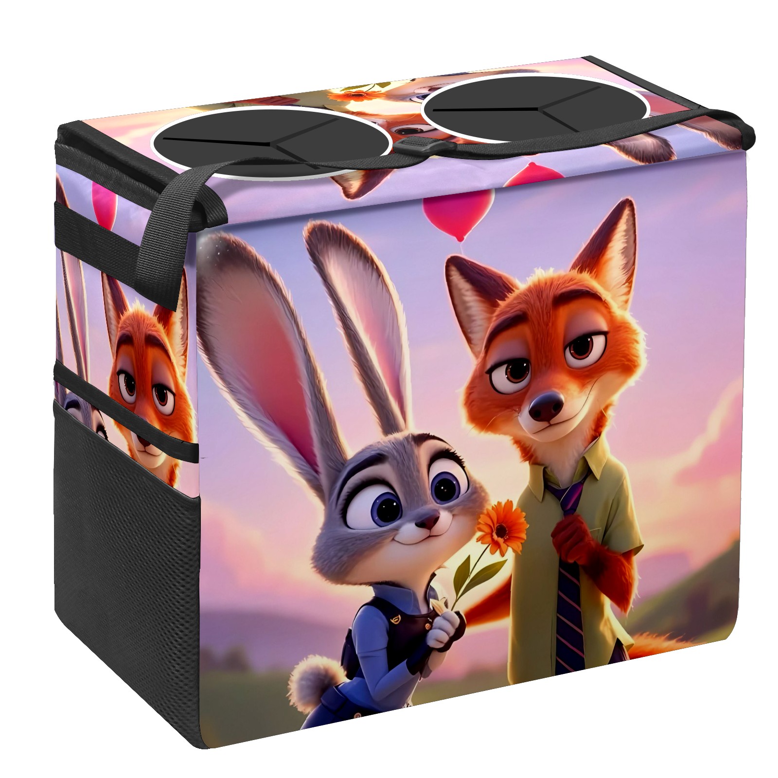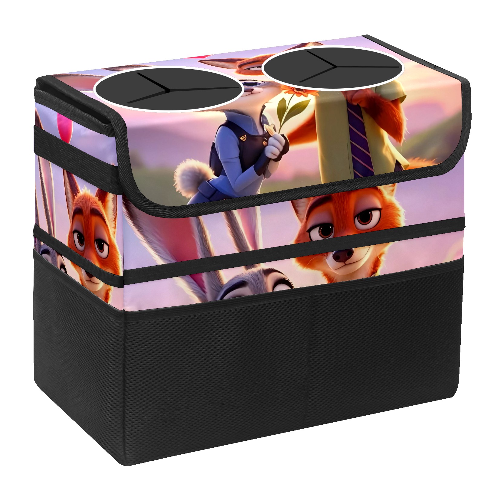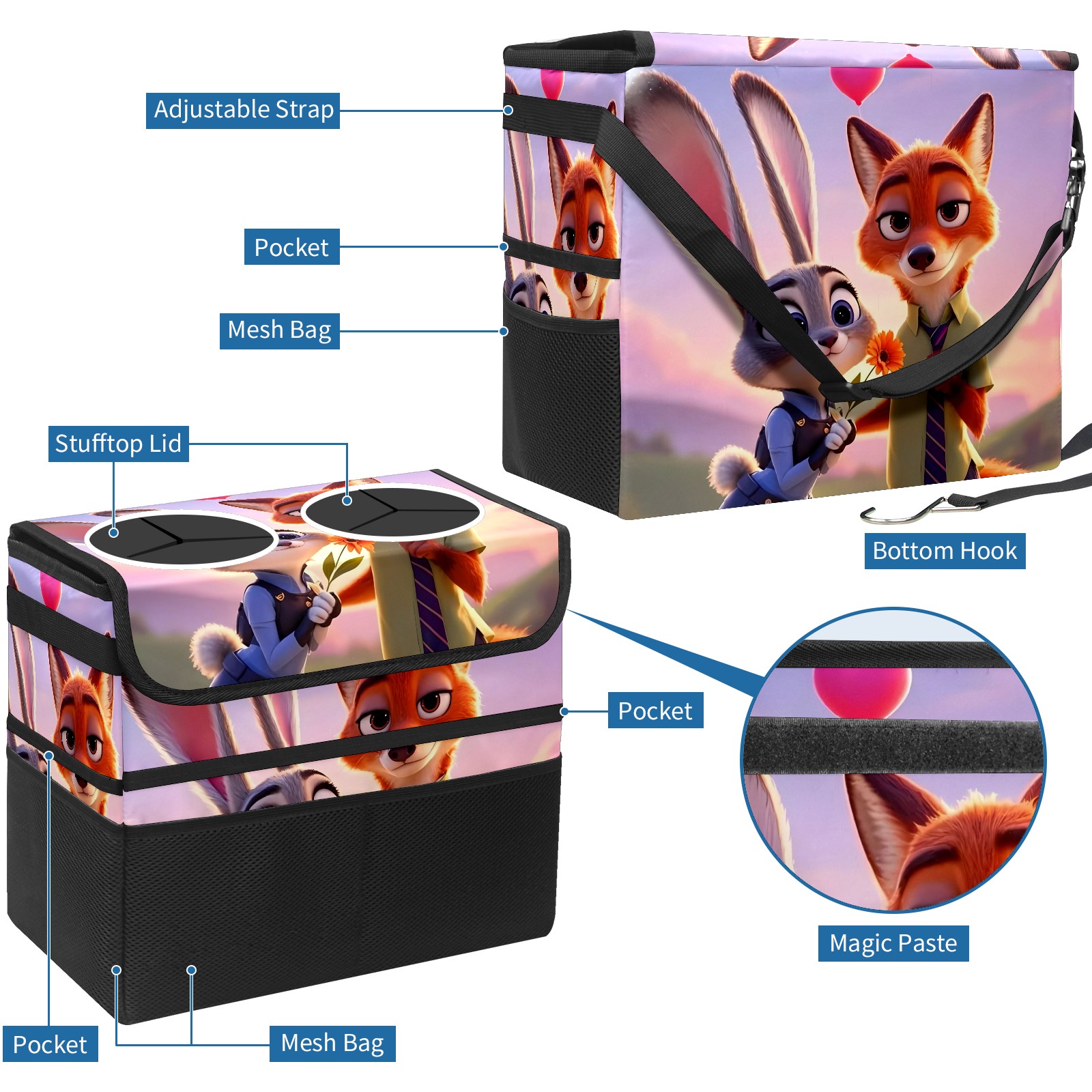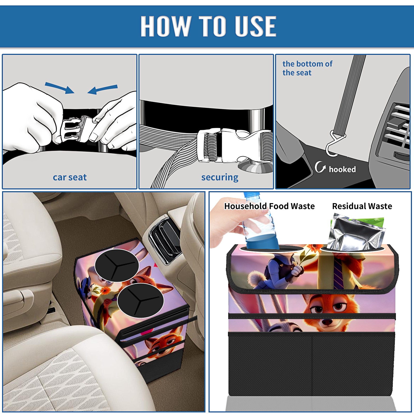 Car Trash Can with Lid, Portable Hanging Automotive Garbage Bin for Vehicles, Leakproof Waste Bag Container for SUV Truck Van Interior Auto Travel Road Trips(疯狂动物城 新增 IPad 01)