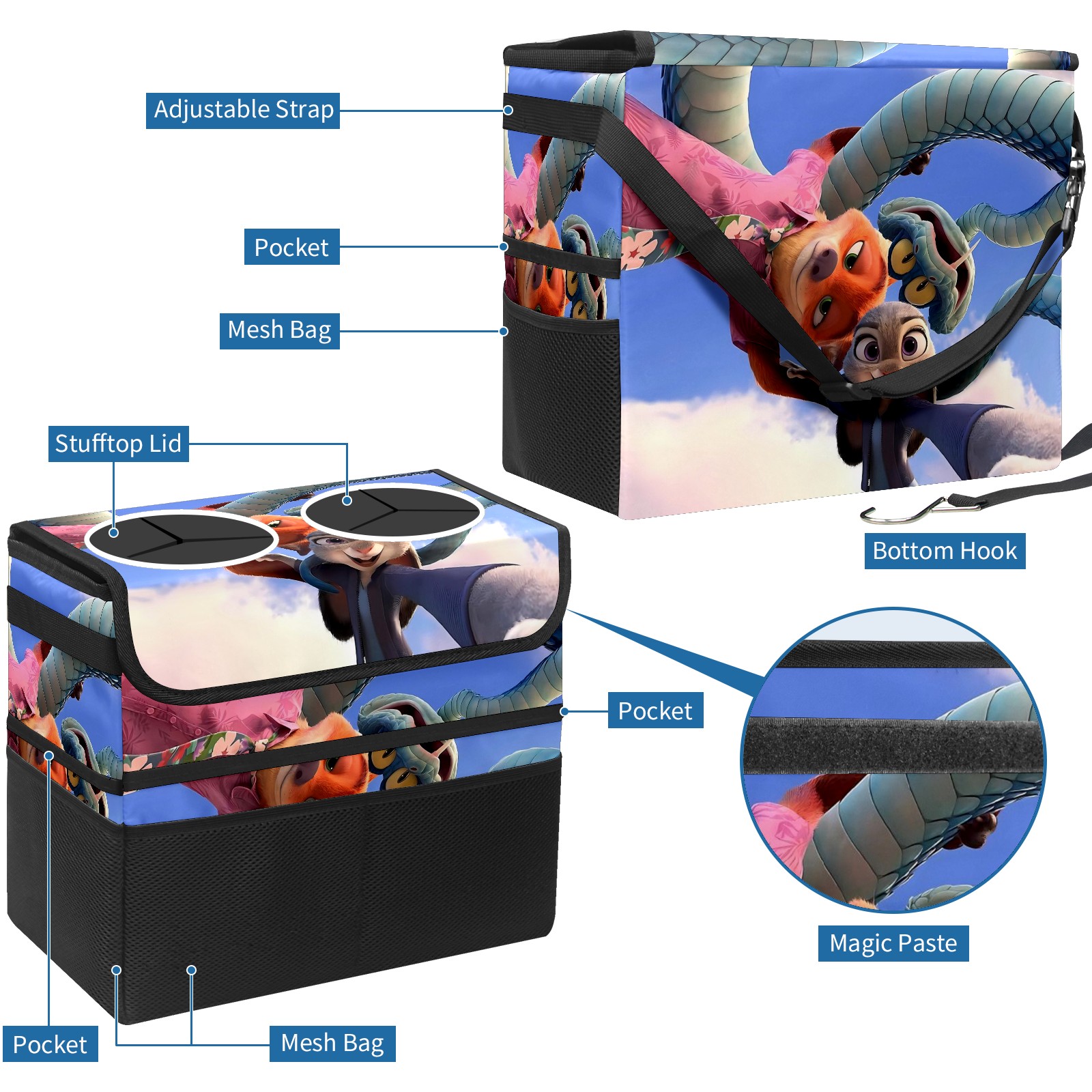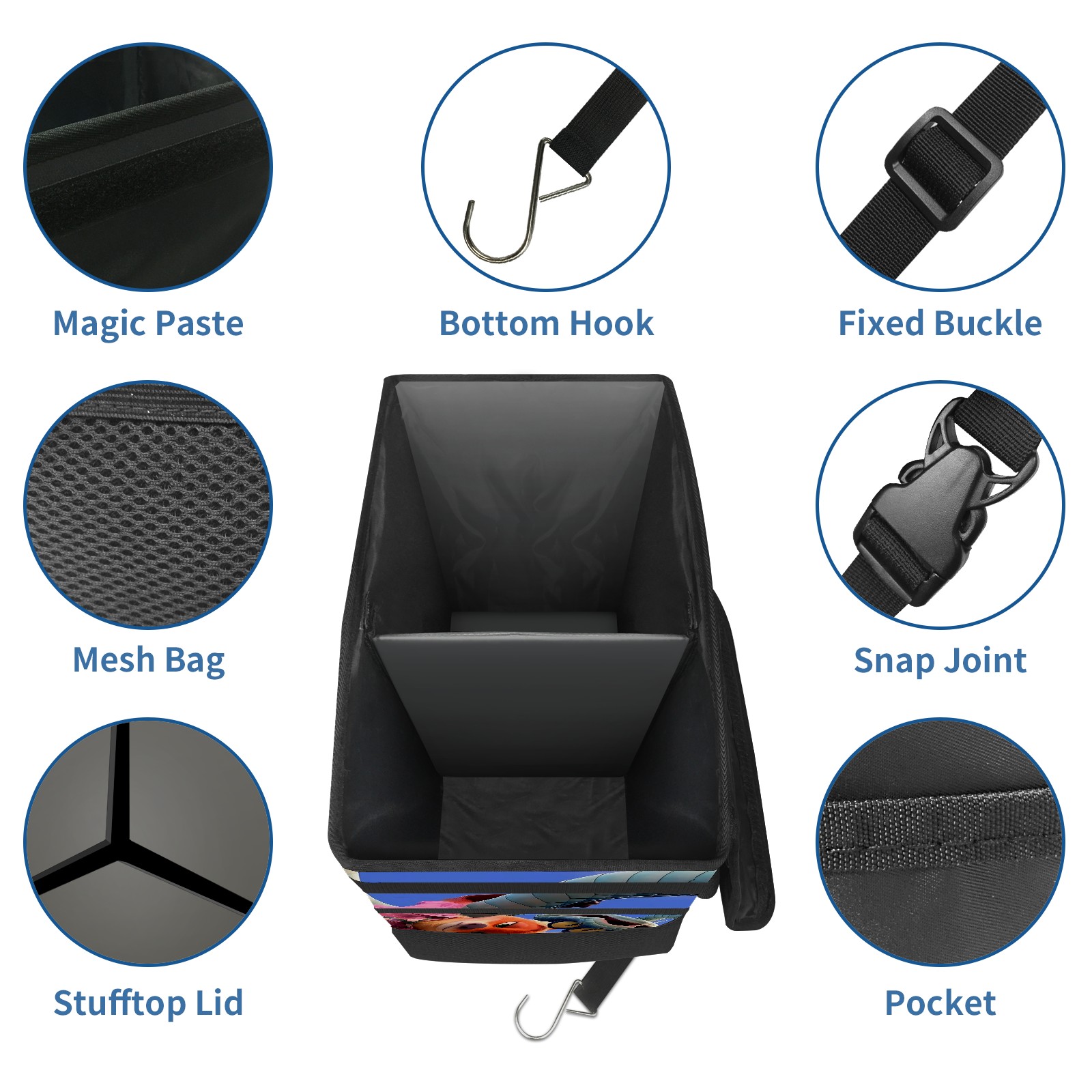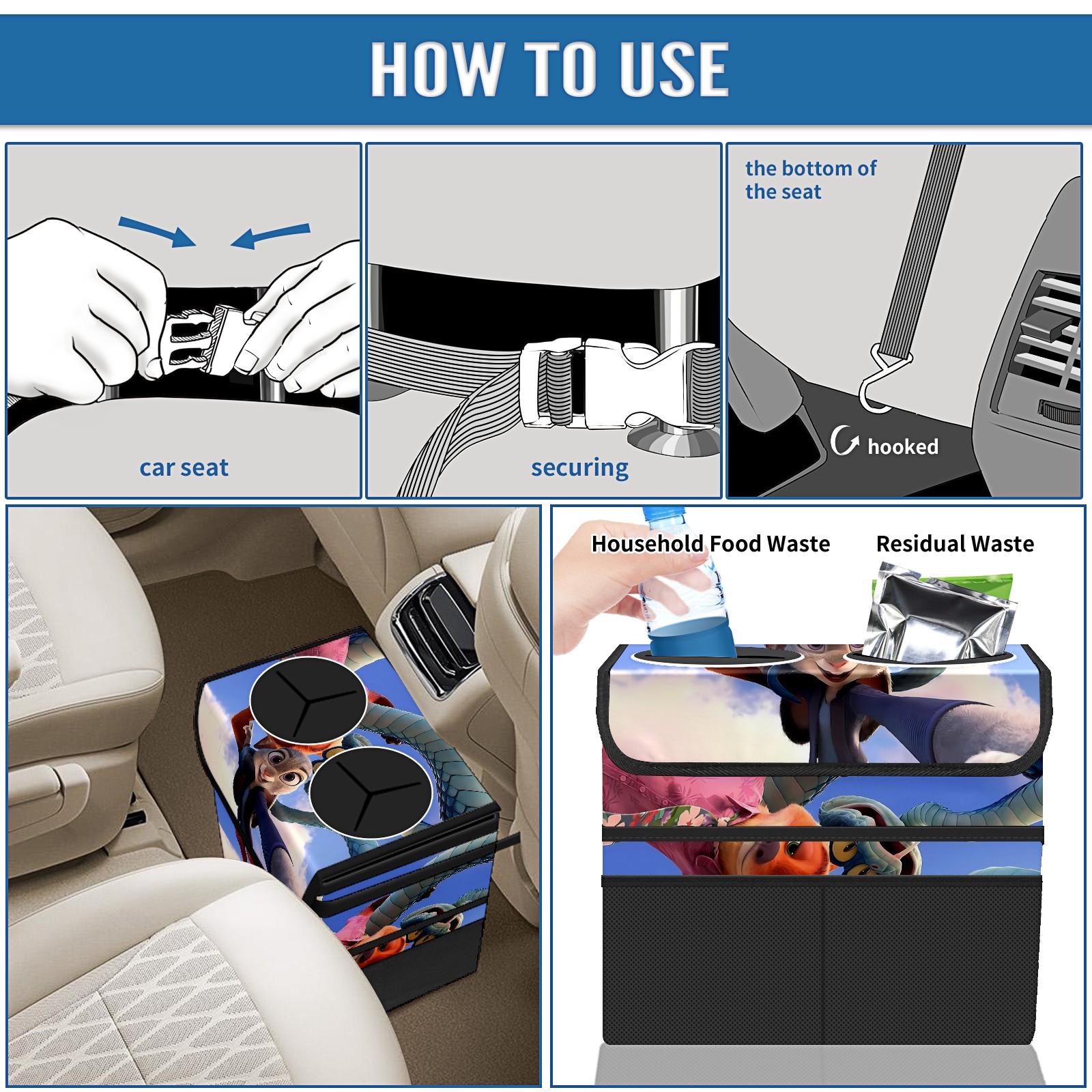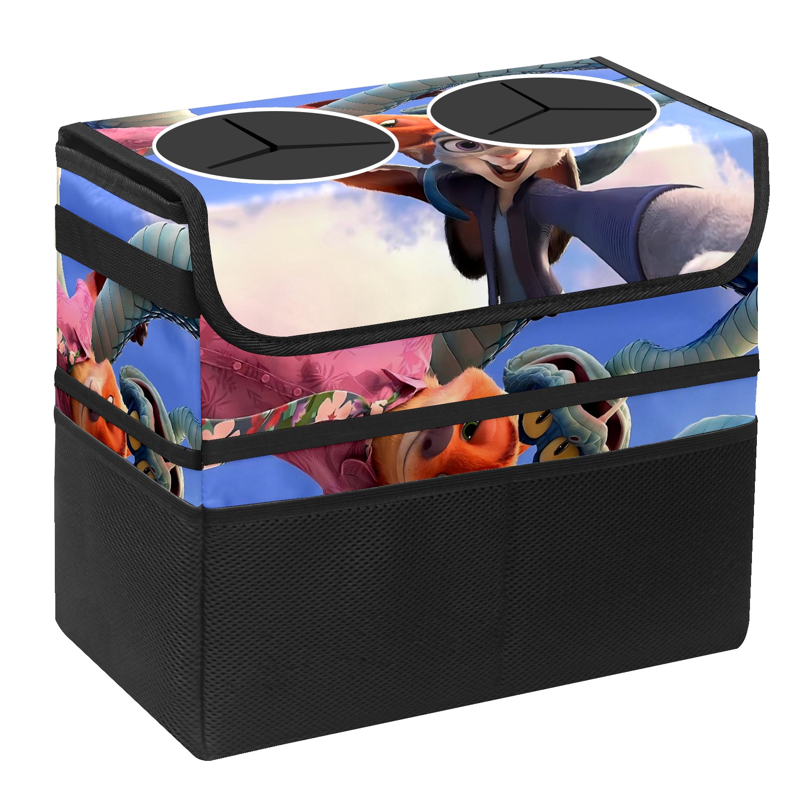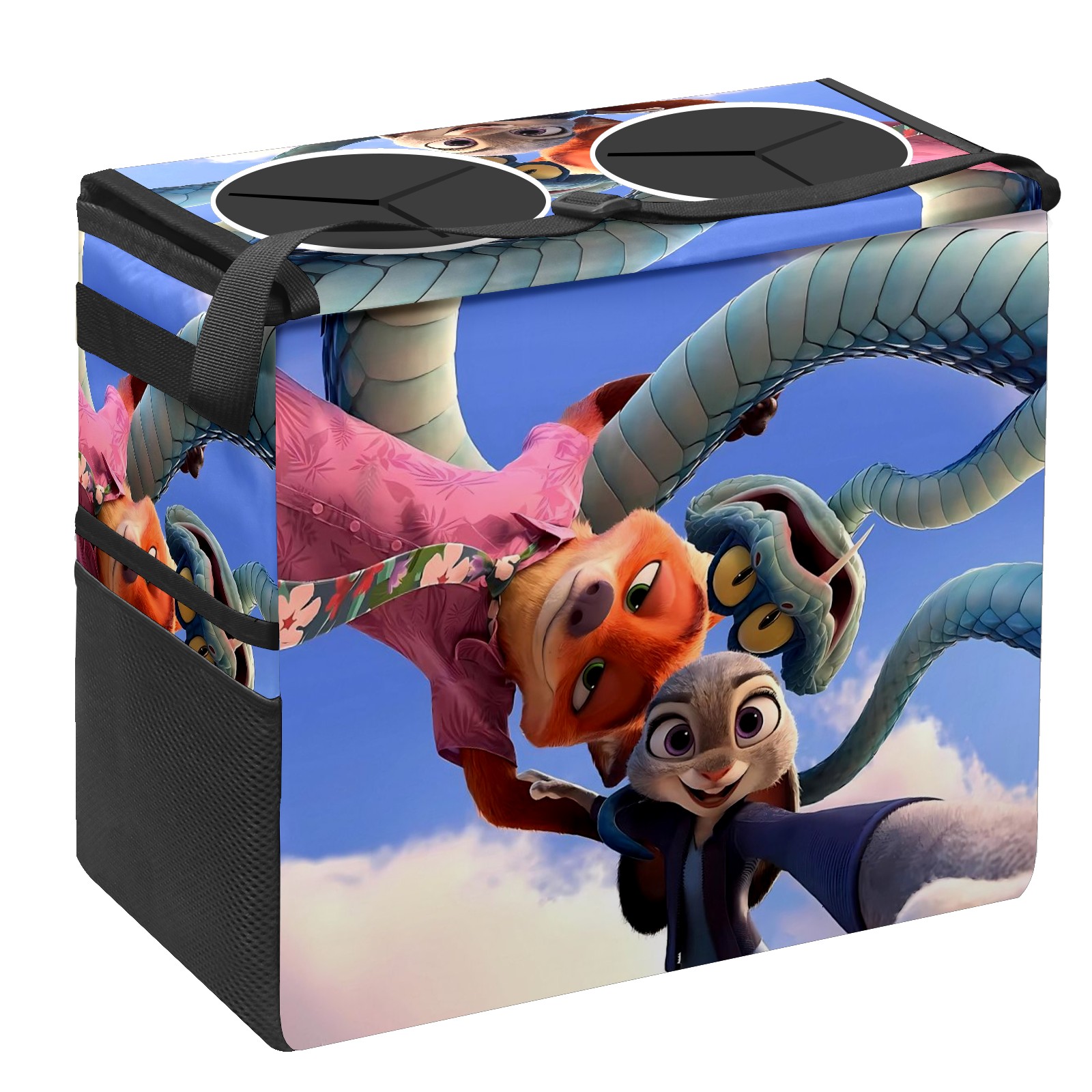 Car Trash Can with Lid, Portable Hanging Automotive Garbage Bin for Vehicles, Leakproof Waste Bag Container for SUV Truck Van Interior Auto Travel Road Trips(疯狂动物城 电脑版 03)