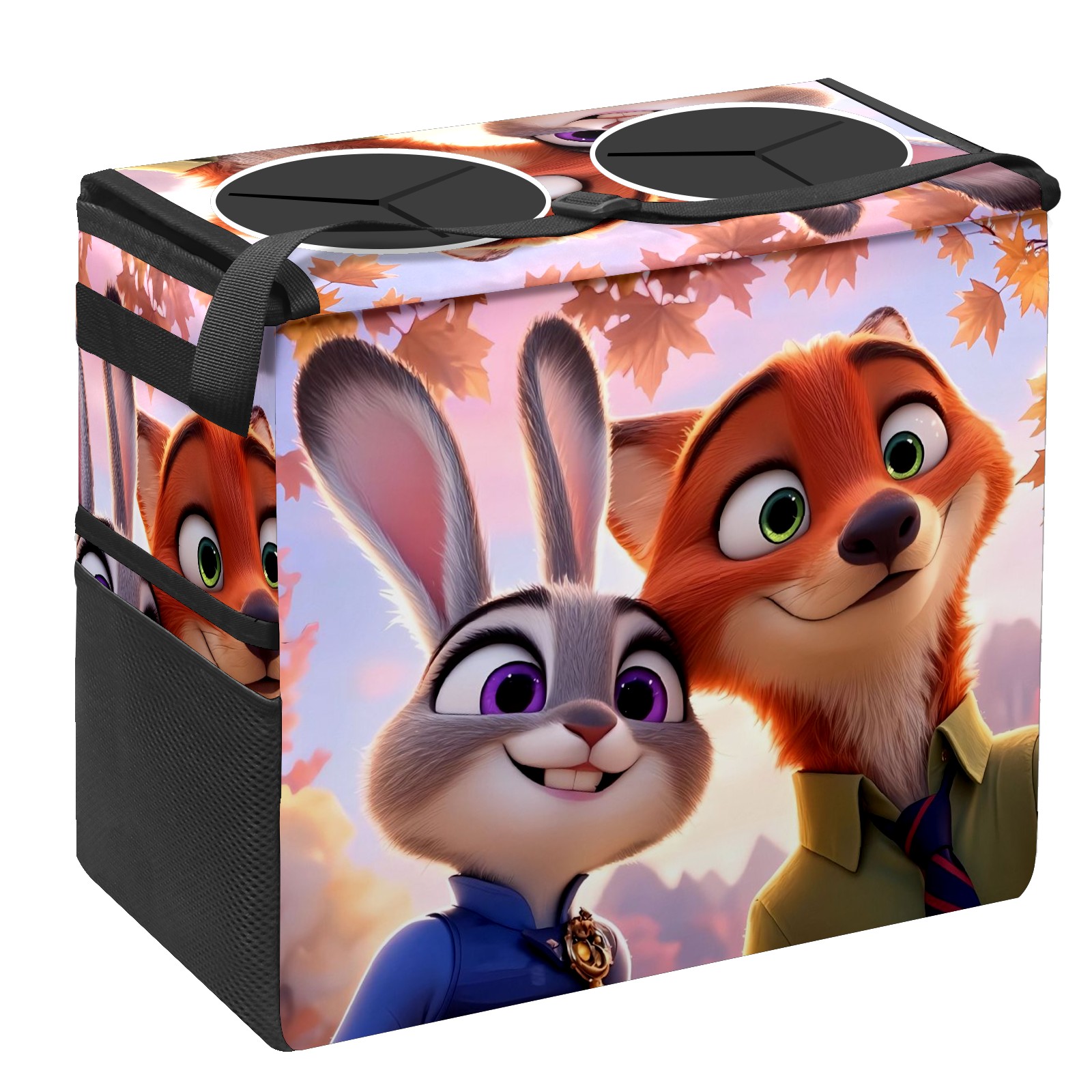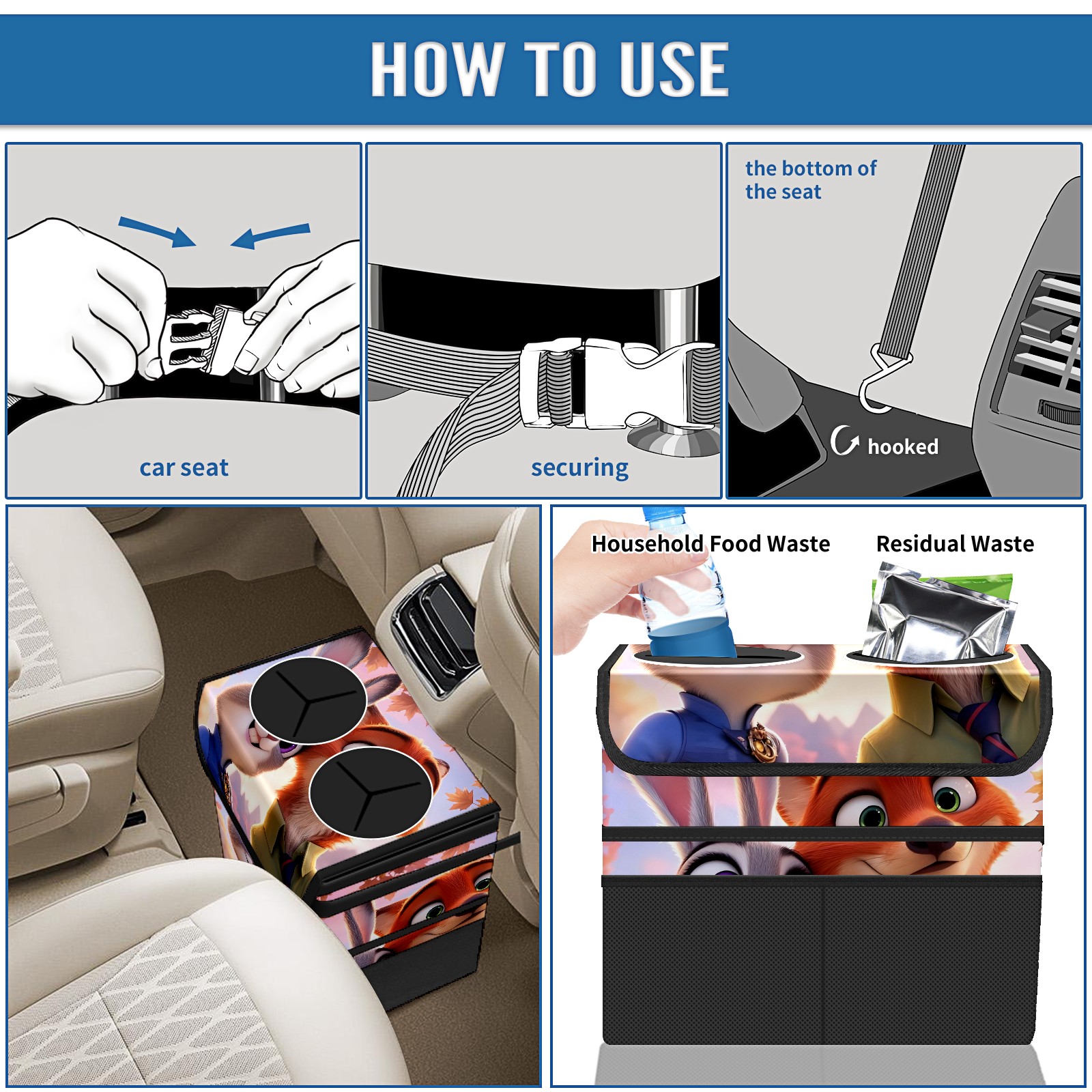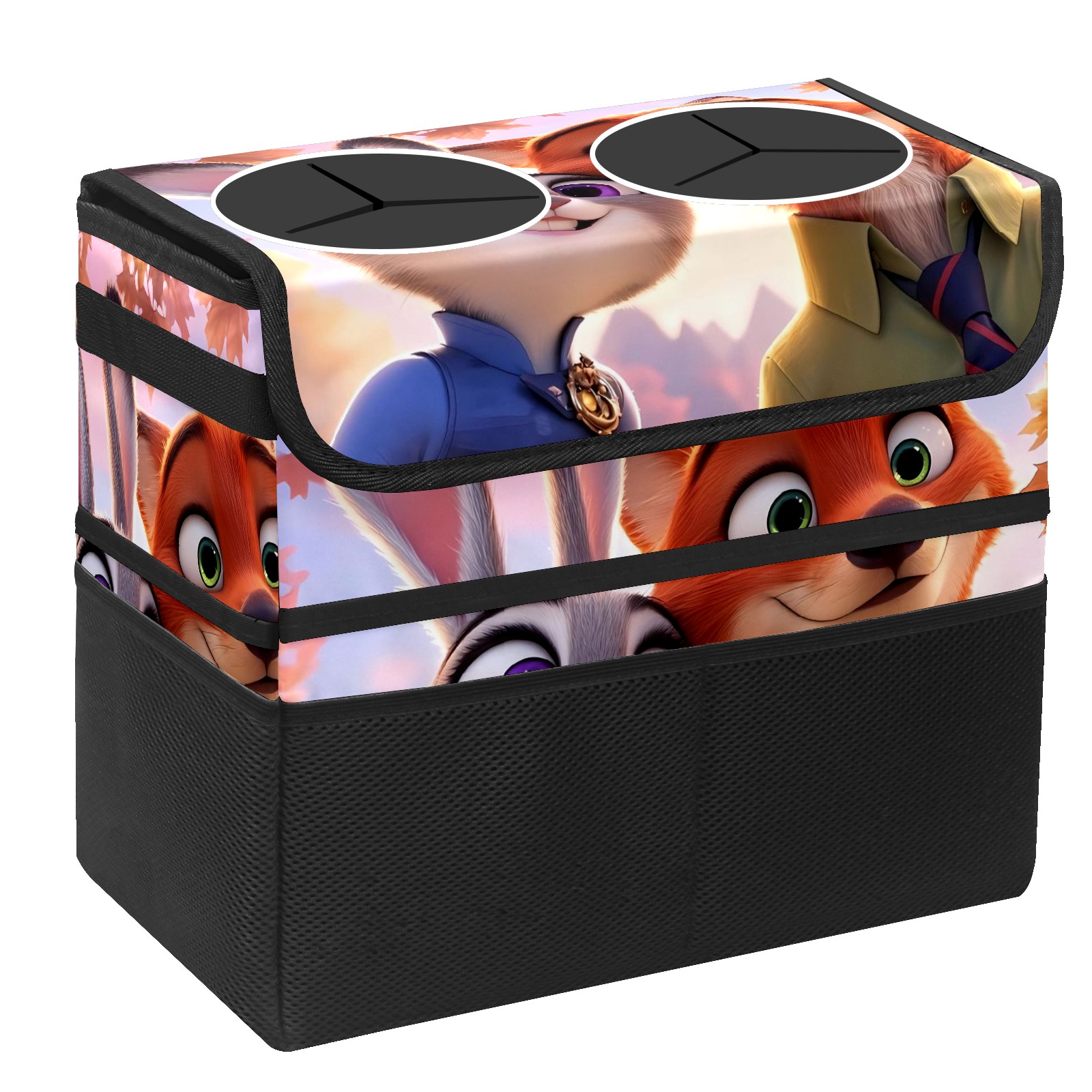 Car Trash Can with Lid, Portable Hanging Automotive Garbage Bin for Vehicles, Leakproof Waste Bag Container for SUV Truck Van Interior Auto Travel Road Trips(疯狂动物城 电脑版 01)