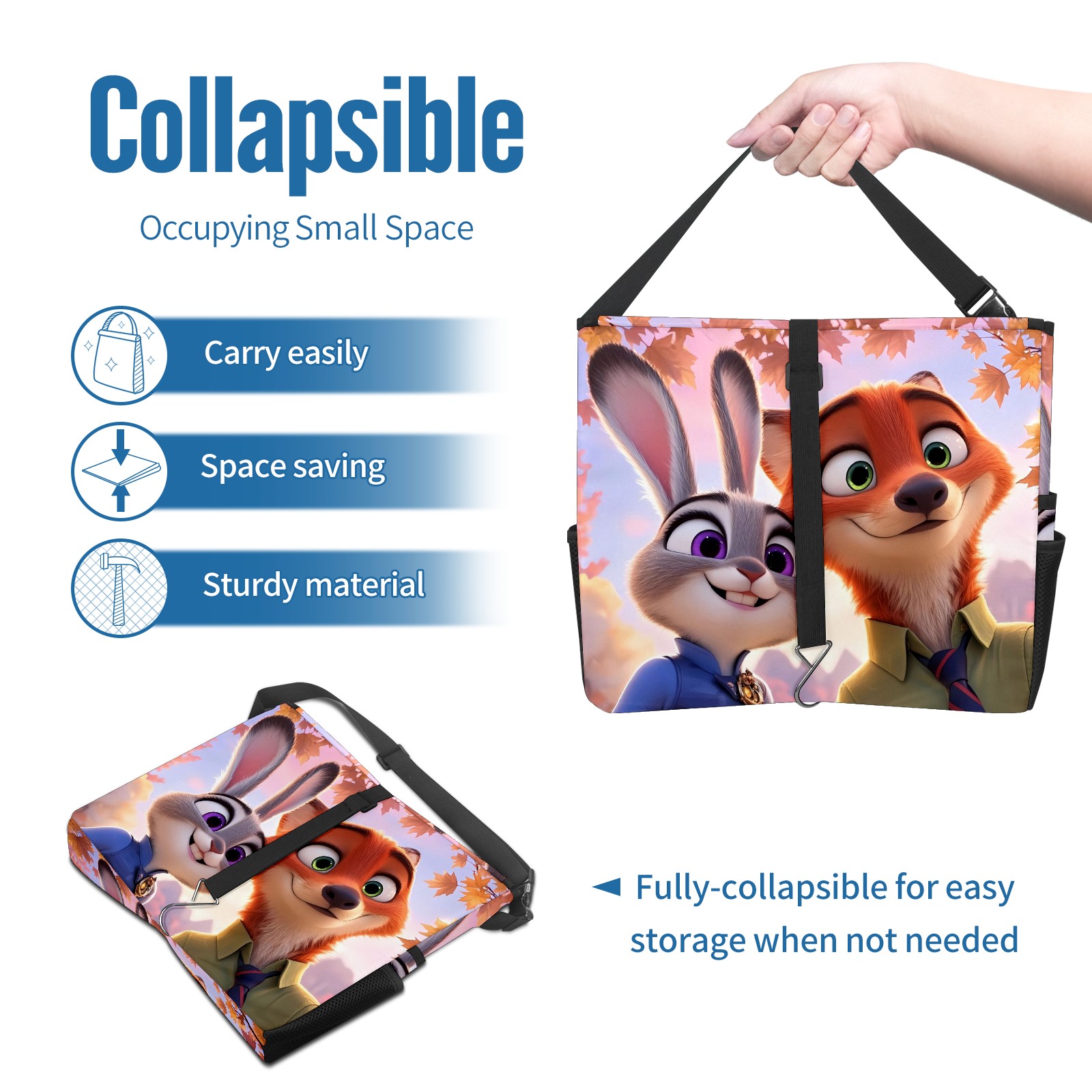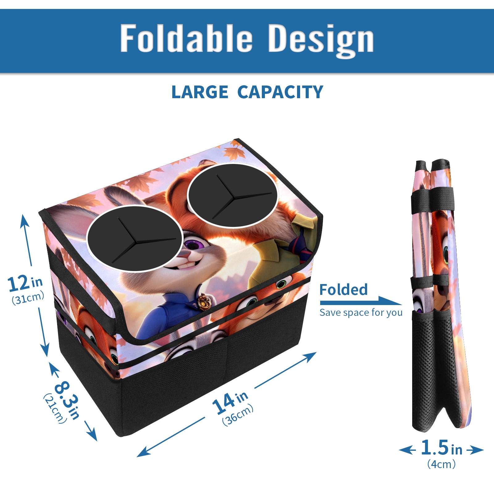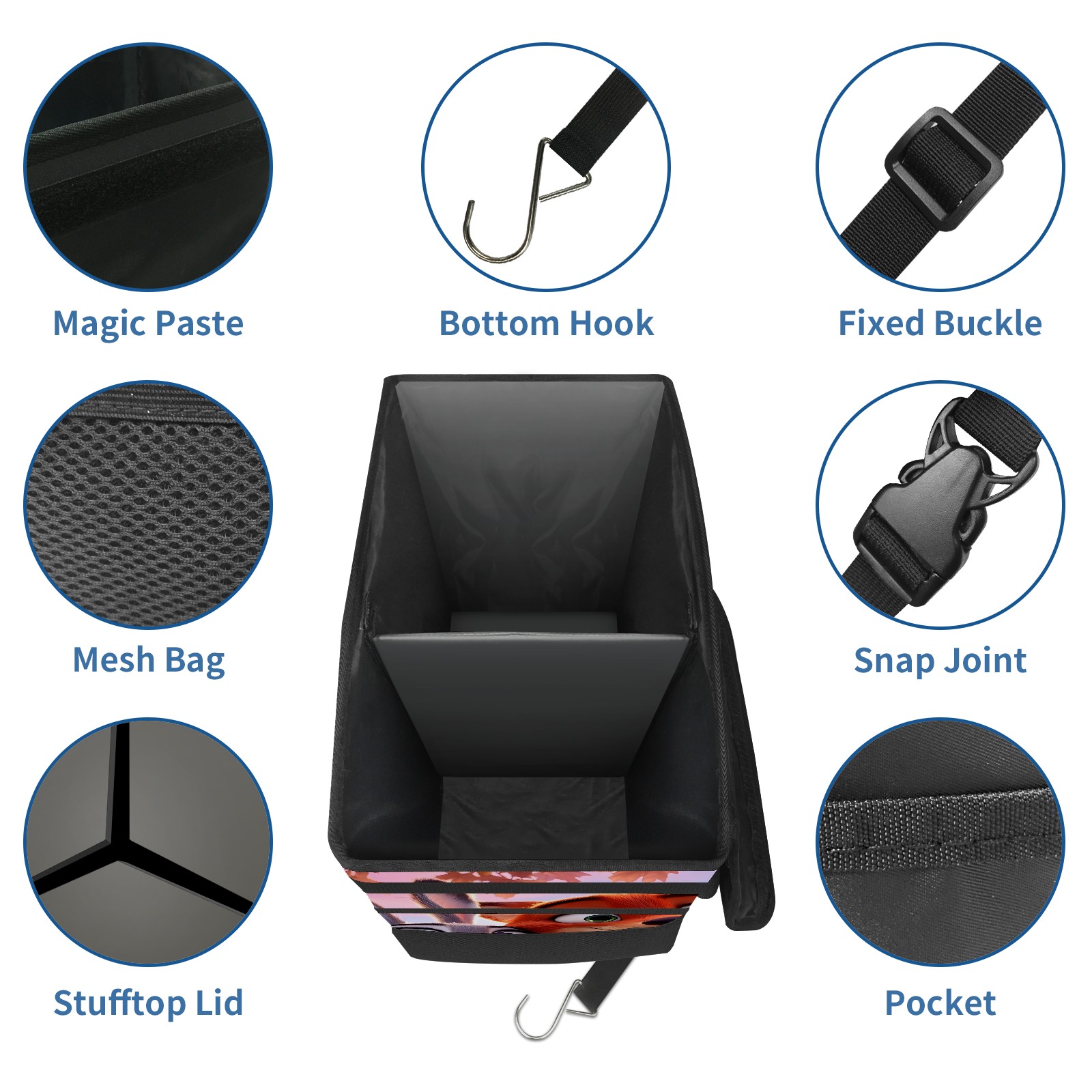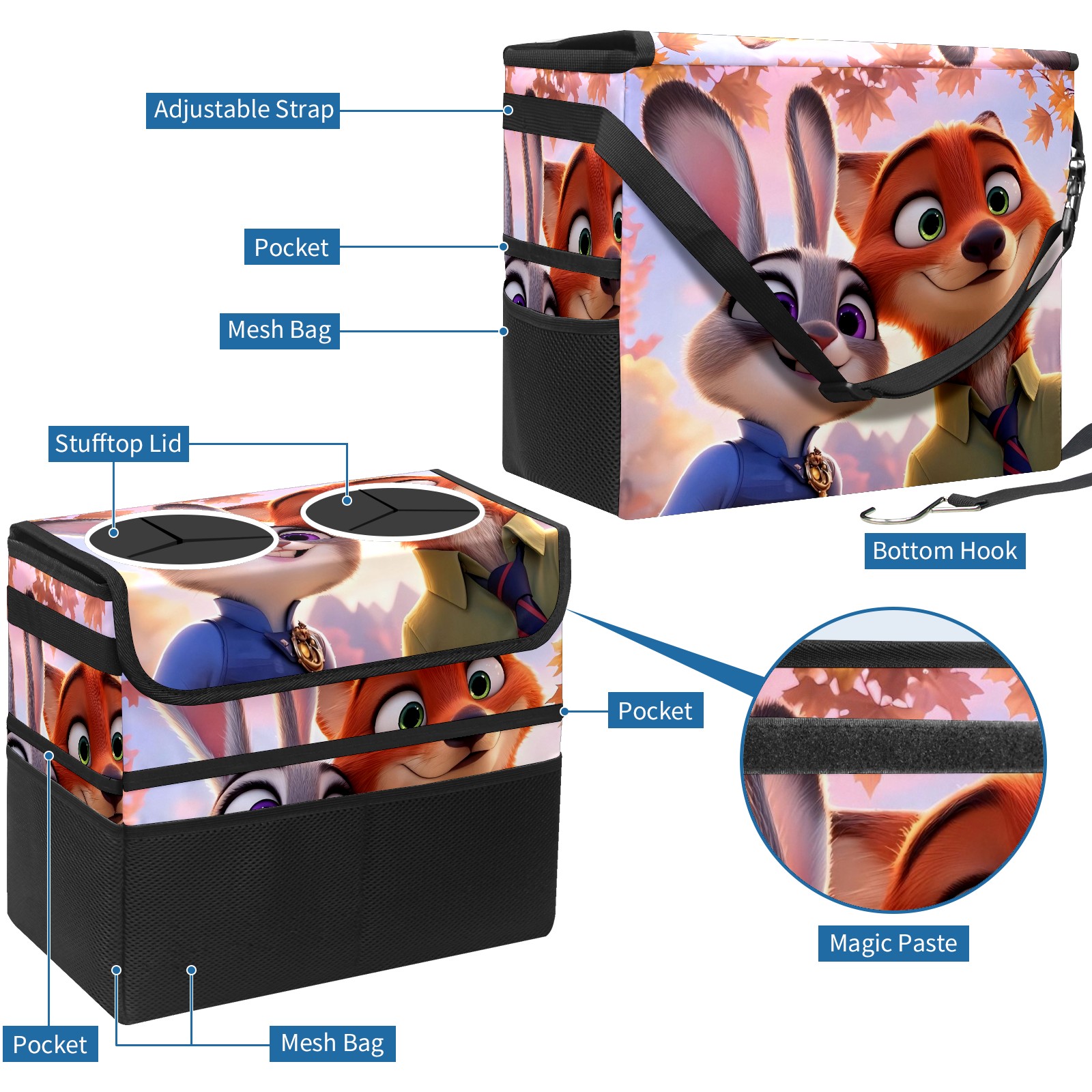 Car Trash Can with Lid, Portable Hanging Automotive Garbage Bin for Vehicles, Leakproof Waste Bag Container for SUV Truck Van Interior Auto Travel Road Trips(疯狂动物城 电脑版 01)