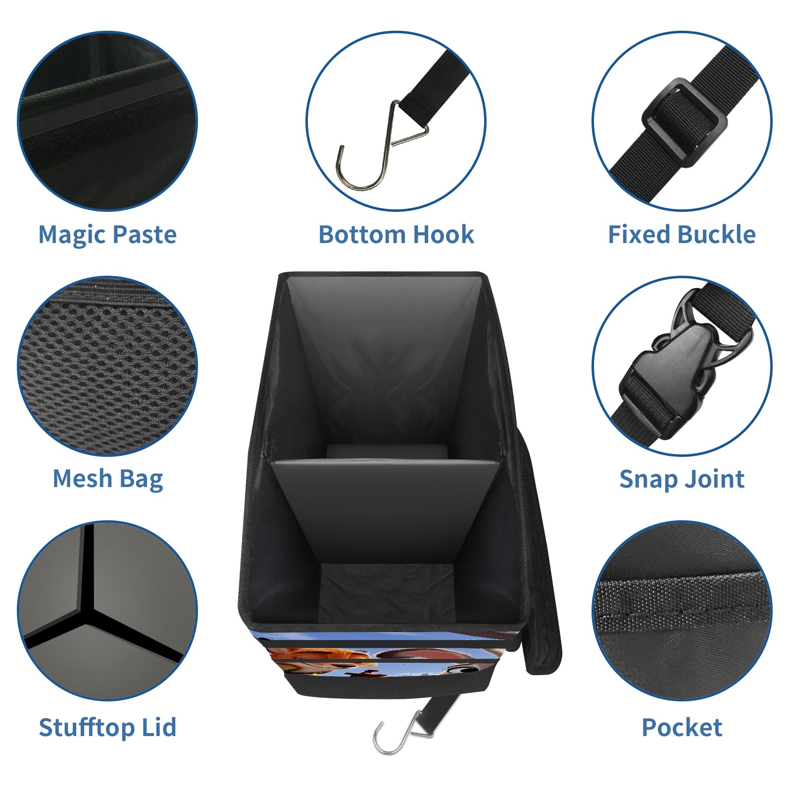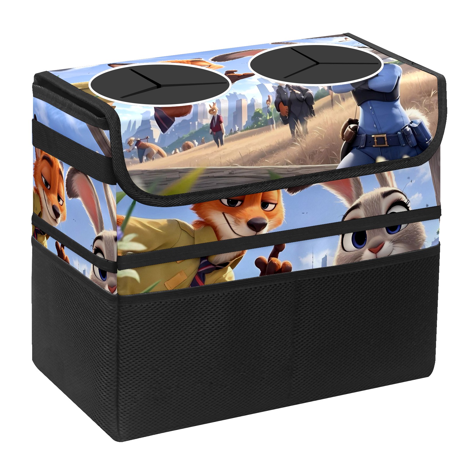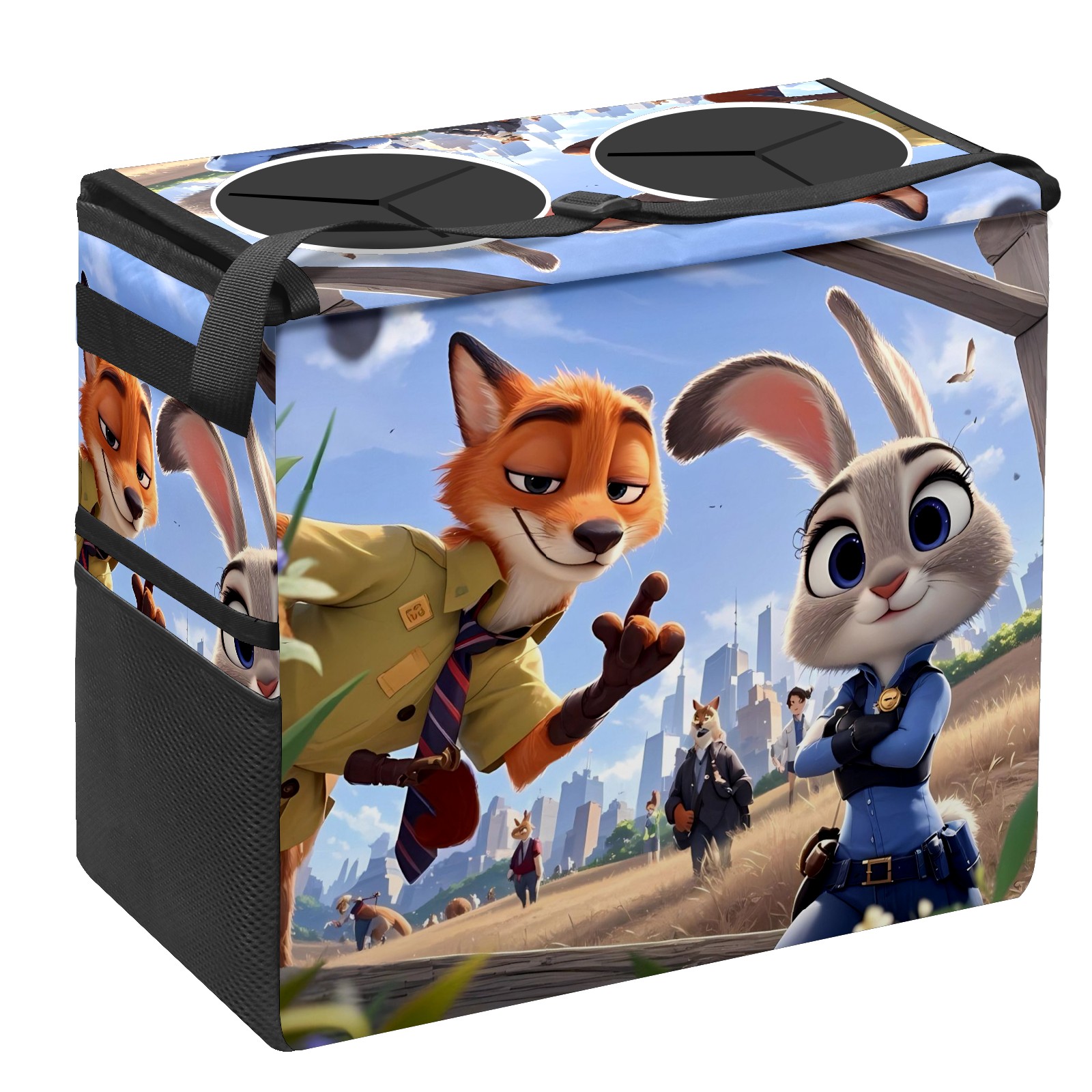 Car Trash Can with Lid, Portable Hanging Automotive Garbage Bin for Vehicles, Leakproof Waste Bag Container for SUV Truck Van Interior Auto Travel Road Trips(疯狂动物城 IPad版 08)
