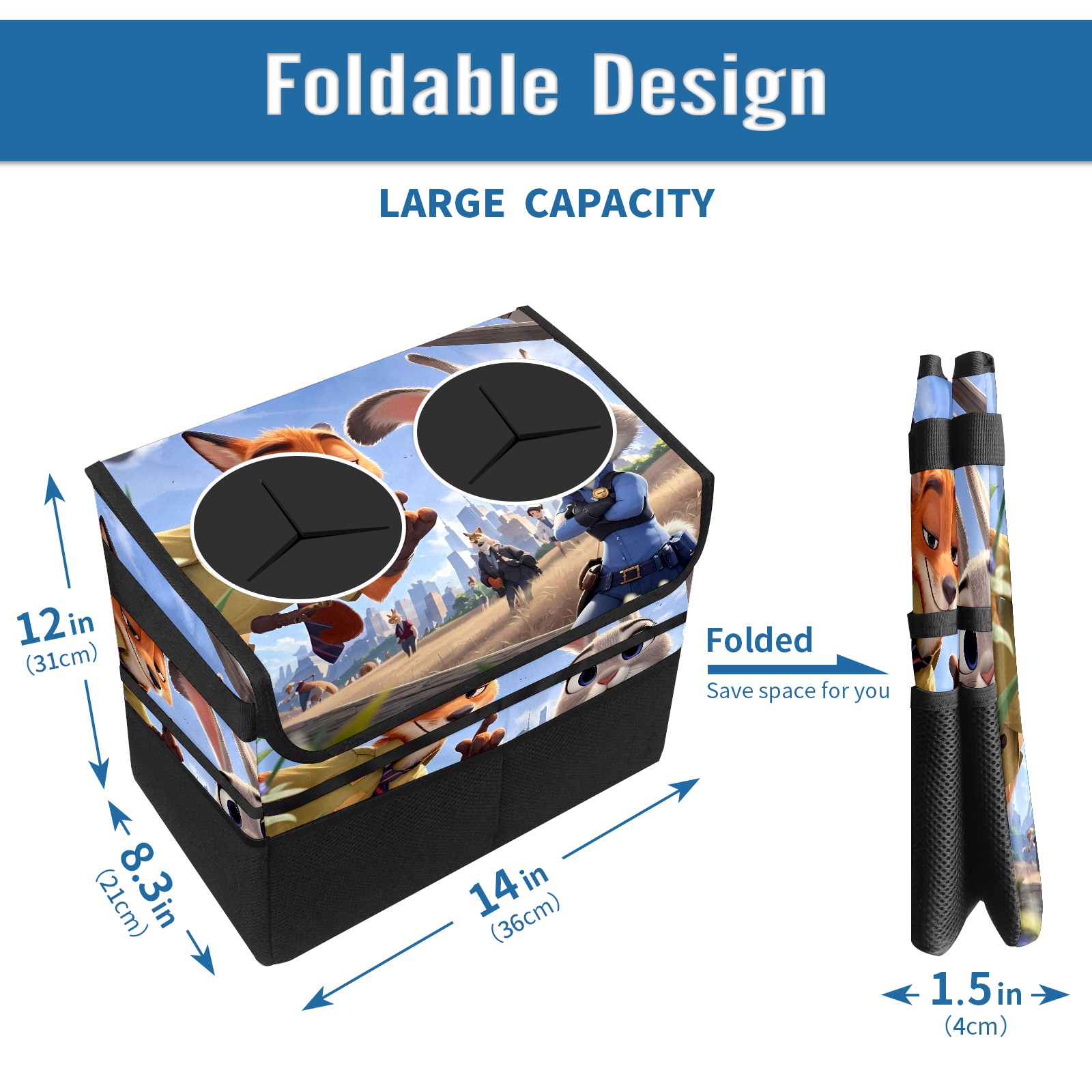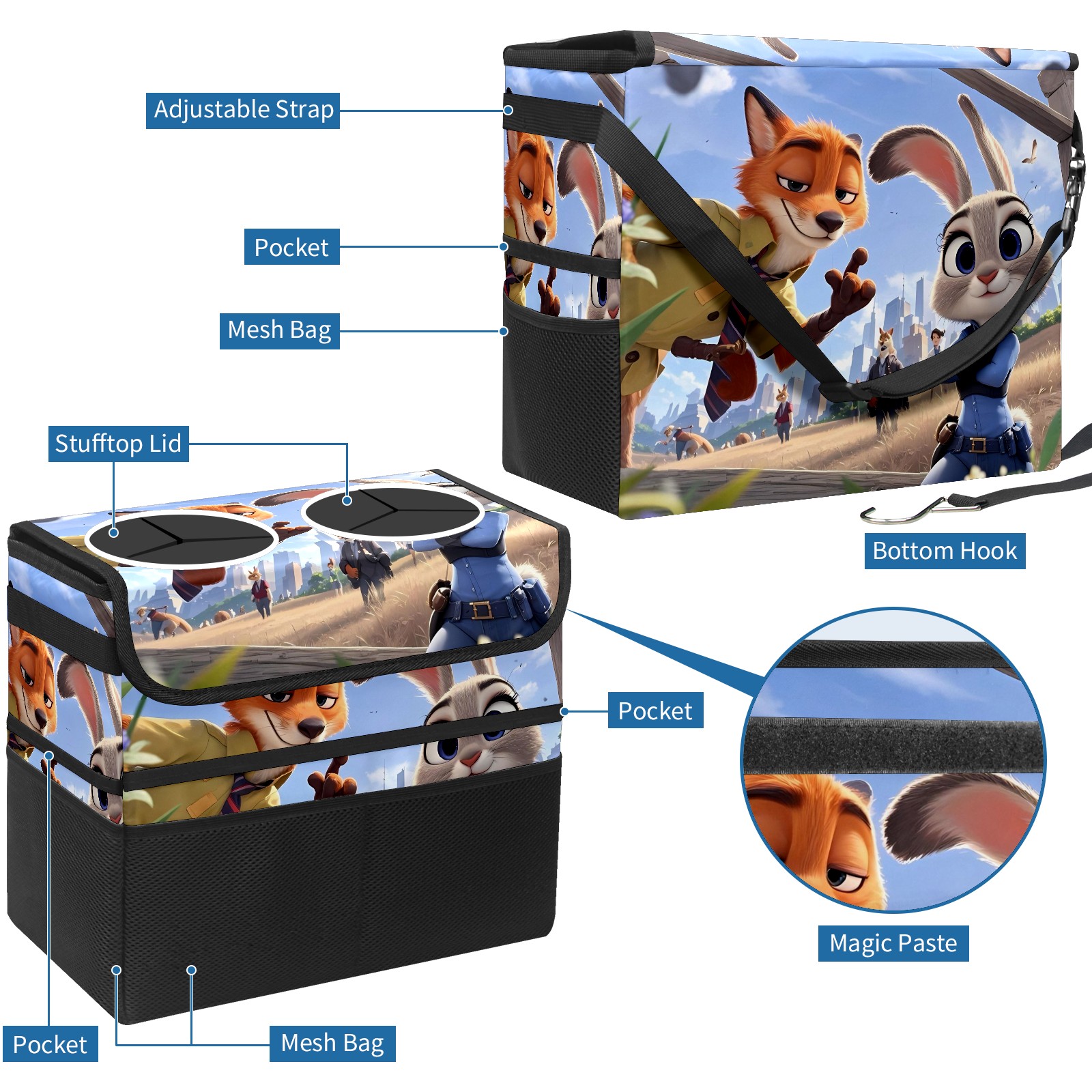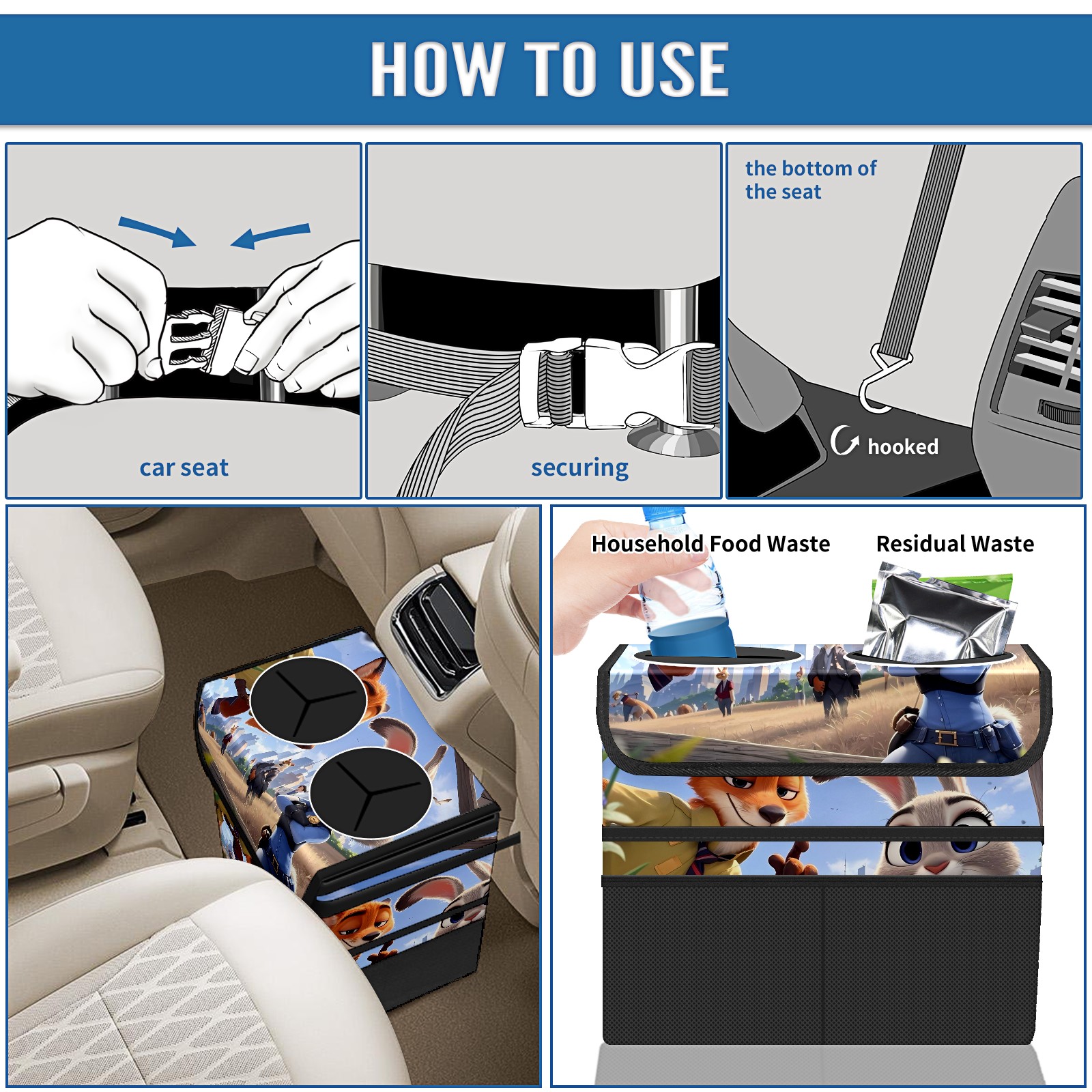 Car Trash Can with Lid, Portable Hanging Automotive Garbage Bin for Vehicles, Leakproof Waste Bag Container for SUV Truck Van Interior Auto Travel Road Trips(疯狂动物城 IPad版 08)