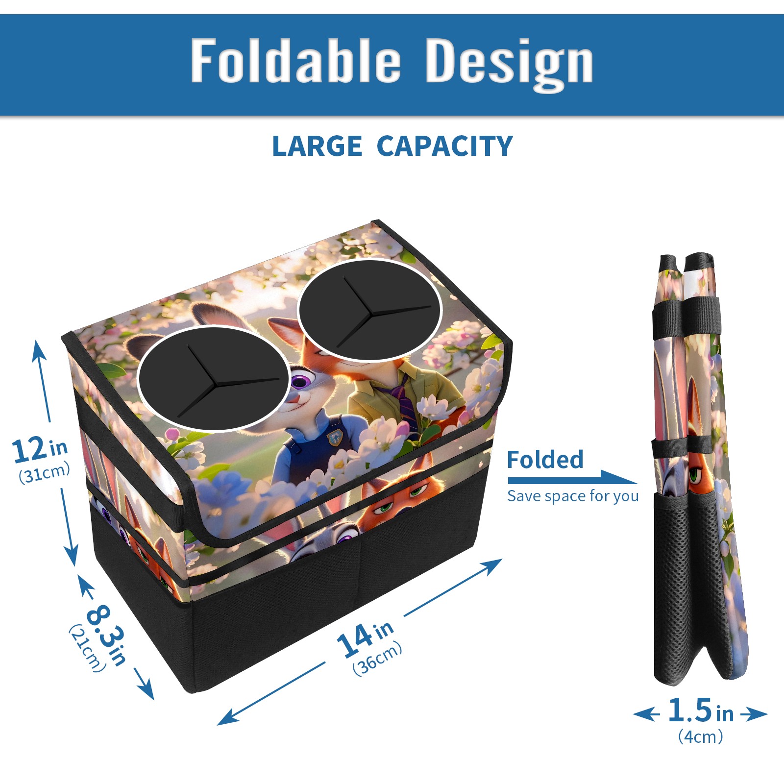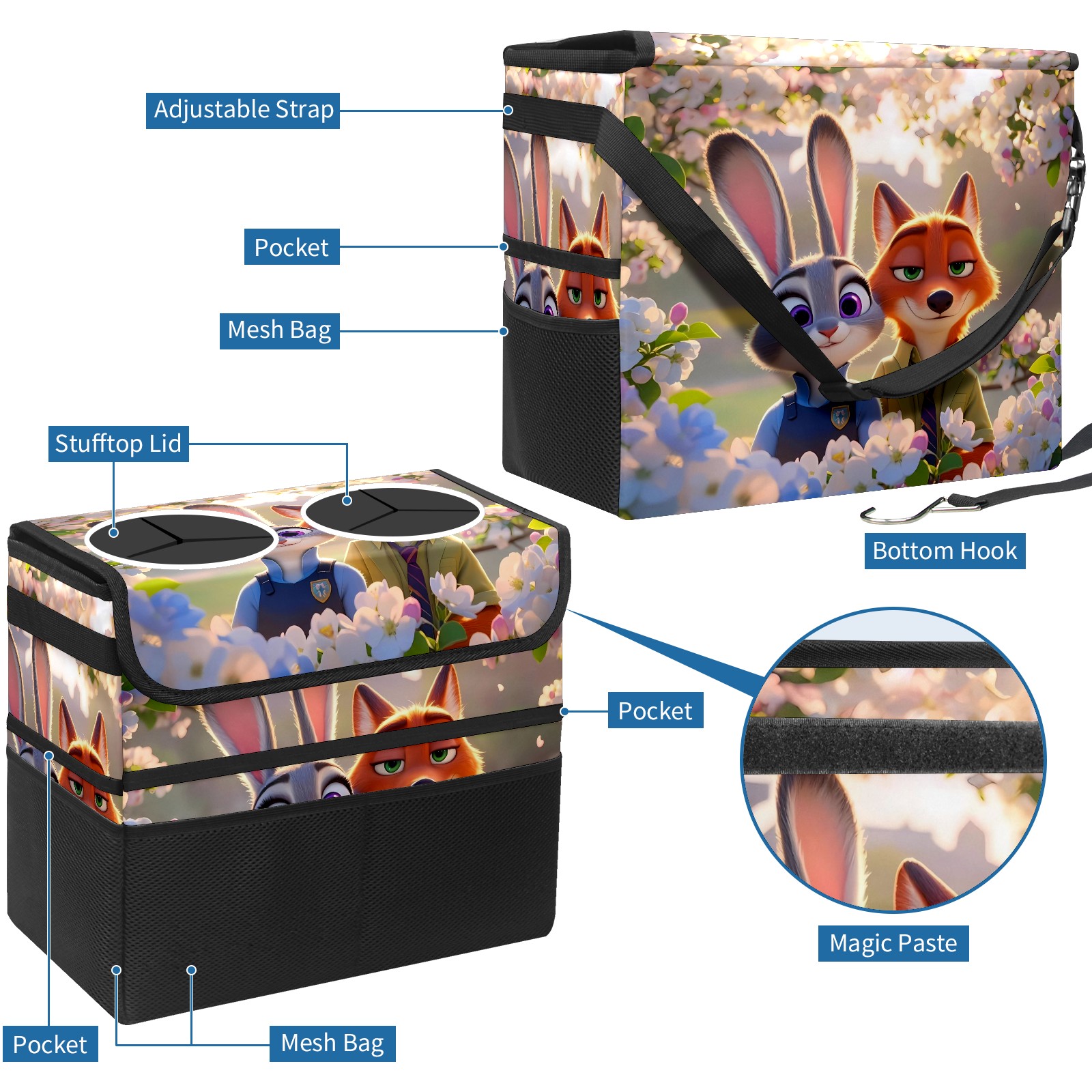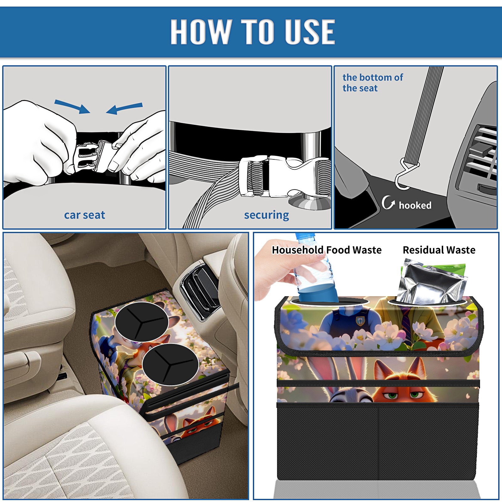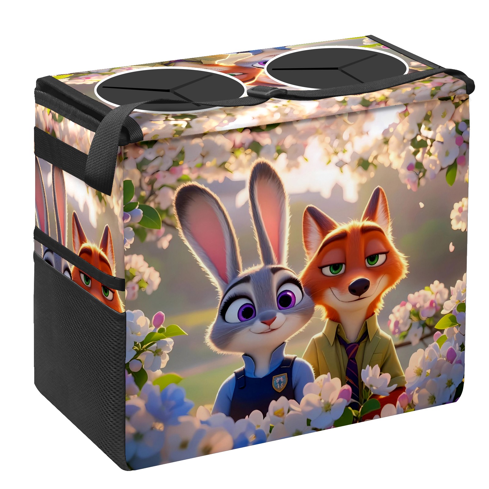 Car Trash Can with Lid, Portable Hanging Automotive Garbage Bin for Vehicles, Leakproof Waste Bag Container for SUV Truck Van Interior Auto Travel Road Trips(疯狂动物城 IPad版 04)