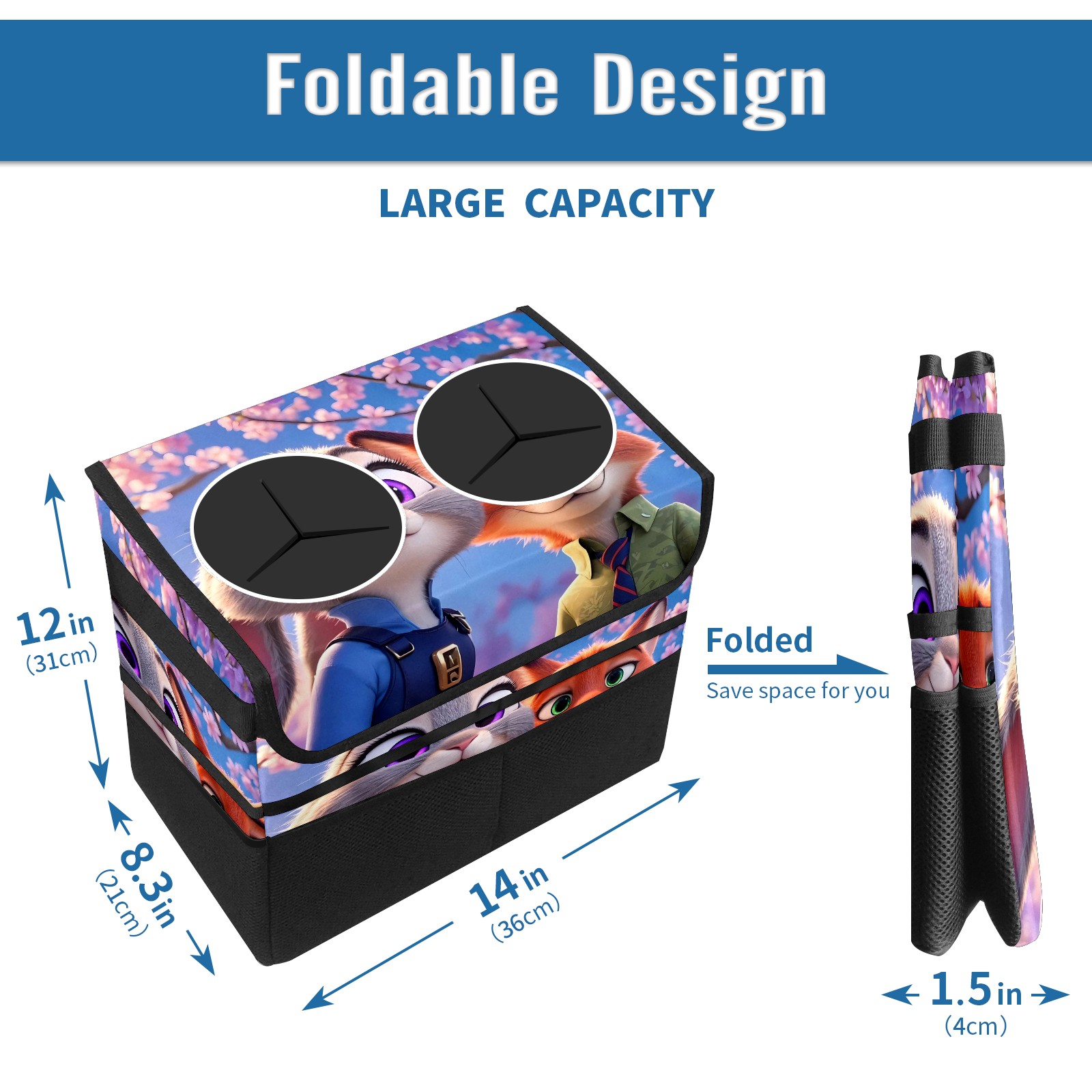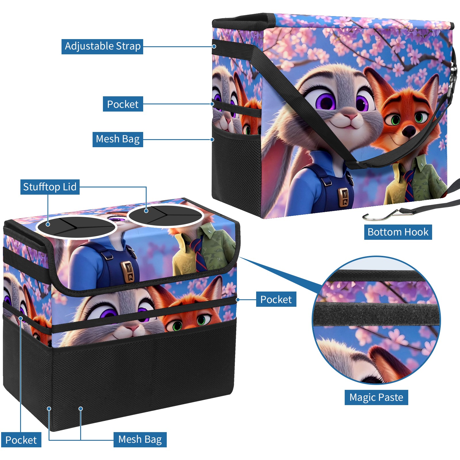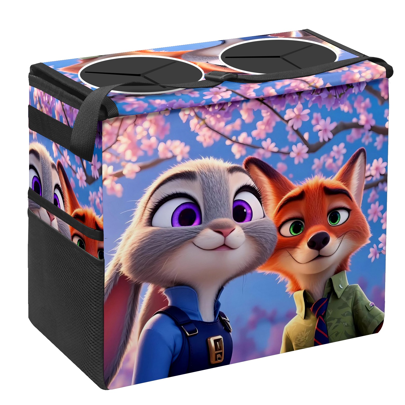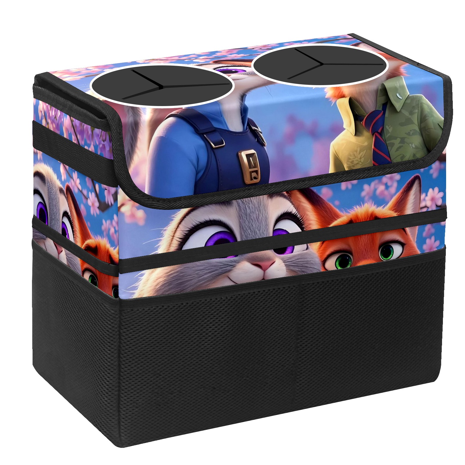 Car Trash Can with Lid, Portable Hanging Automotive Garbage Bin for Vehicles, Leakproof Waste Bag Container for SUV Truck Van Interior Auto Travel Road Trips(疯狂动物城 IPad版 01)