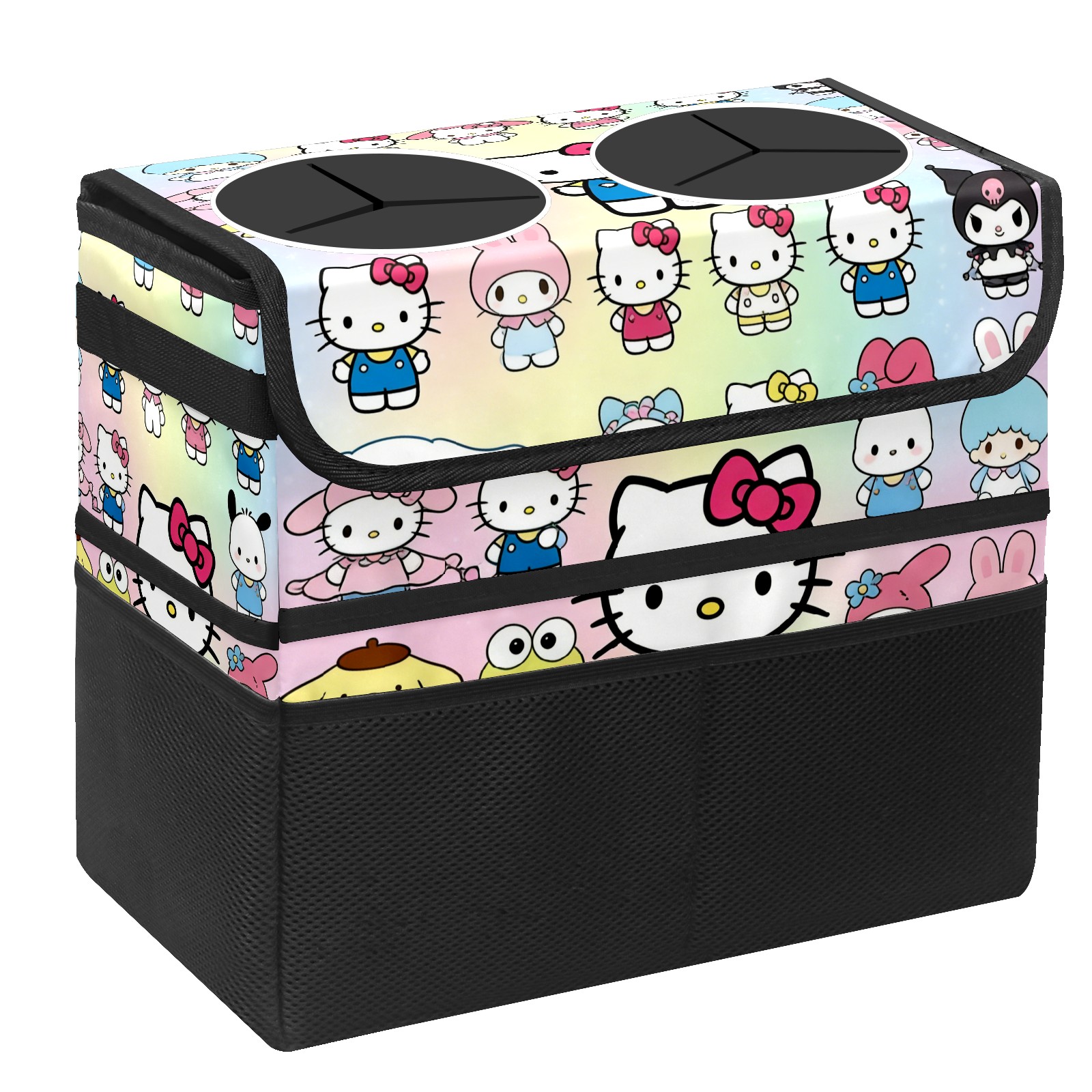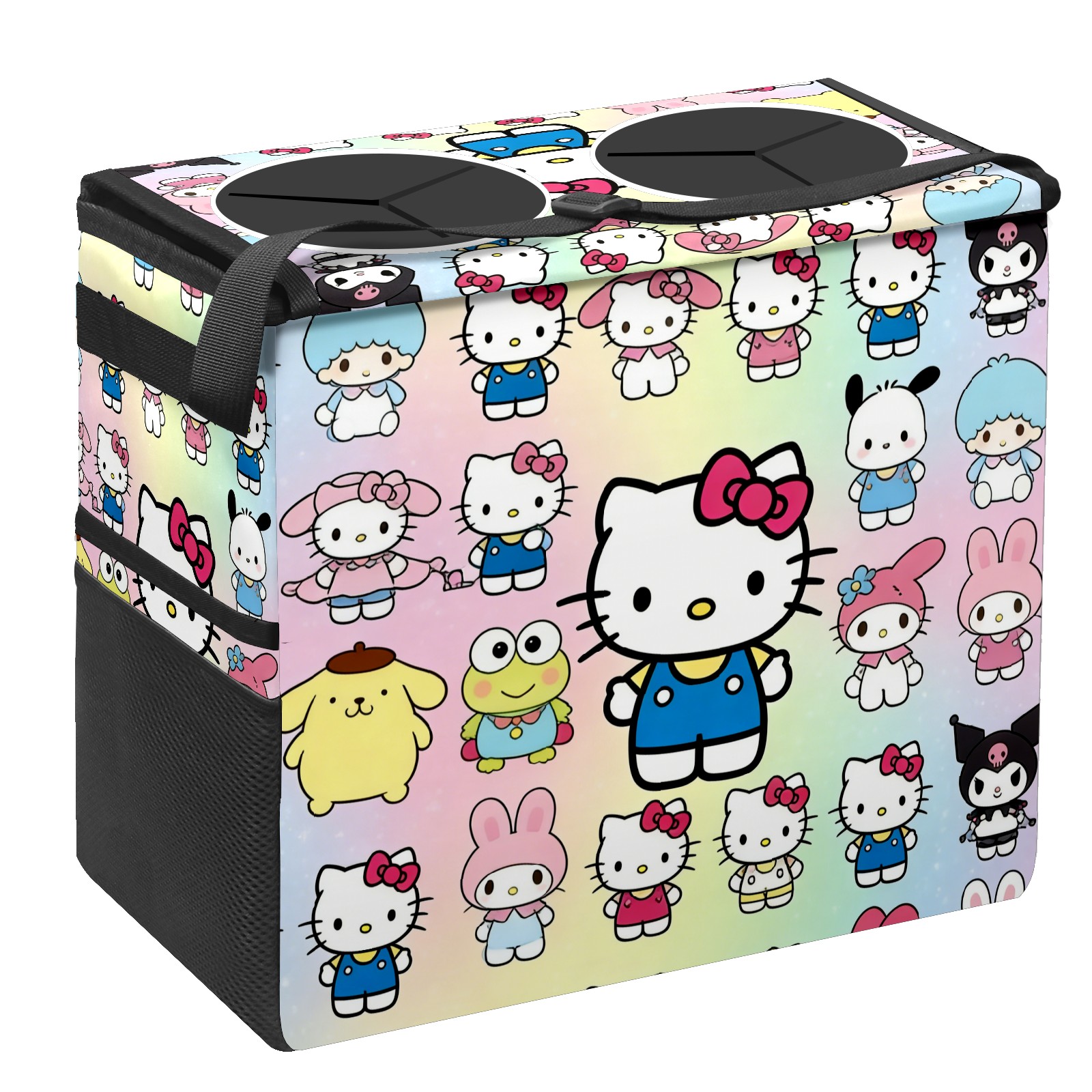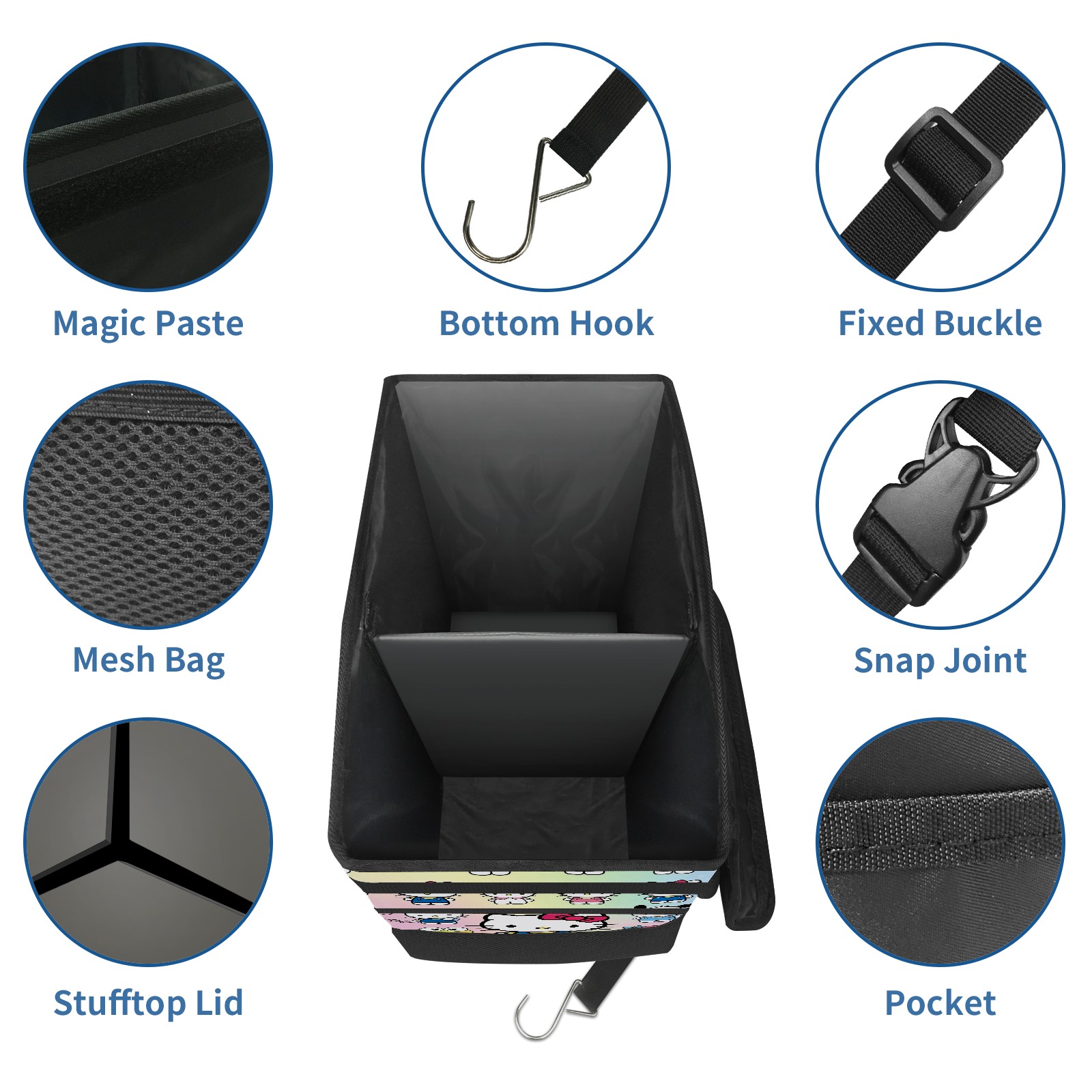 Car Trash Can with Lid, Portable Hanging Automotive Garbage Bin for Vehicles, Leakproof Waste Bag Container for SUV Truck Van Interior Auto Travel Road Trips(Cartoon Character Multi)