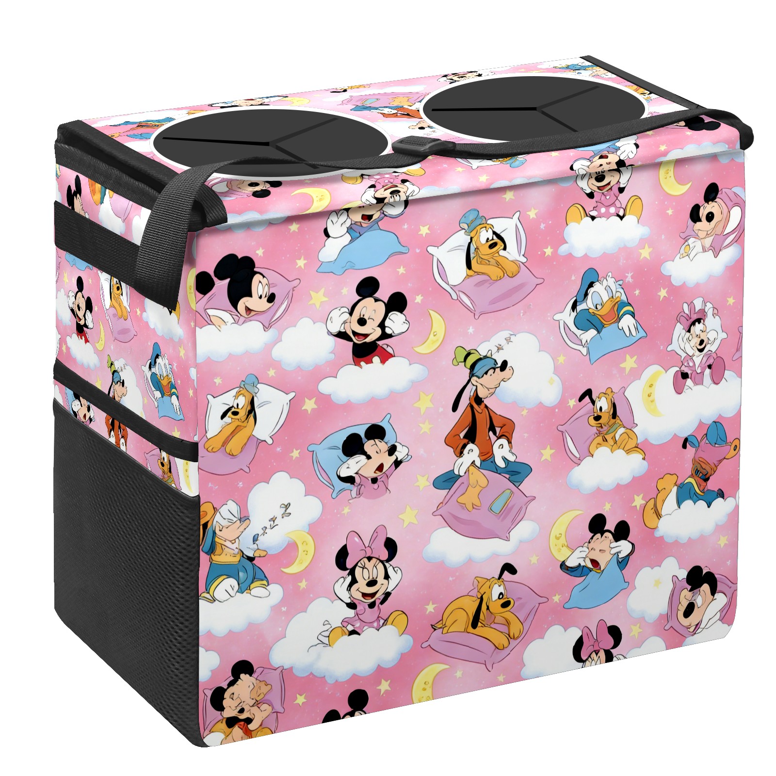 Car Trash Can with Lid, Portable Hanging Automotive Garbage Bin for Vehicles, Leakproof Waste Bag Container for SUV Truck Van Interior Auto Travel Road Trips(Soft Character Pink)