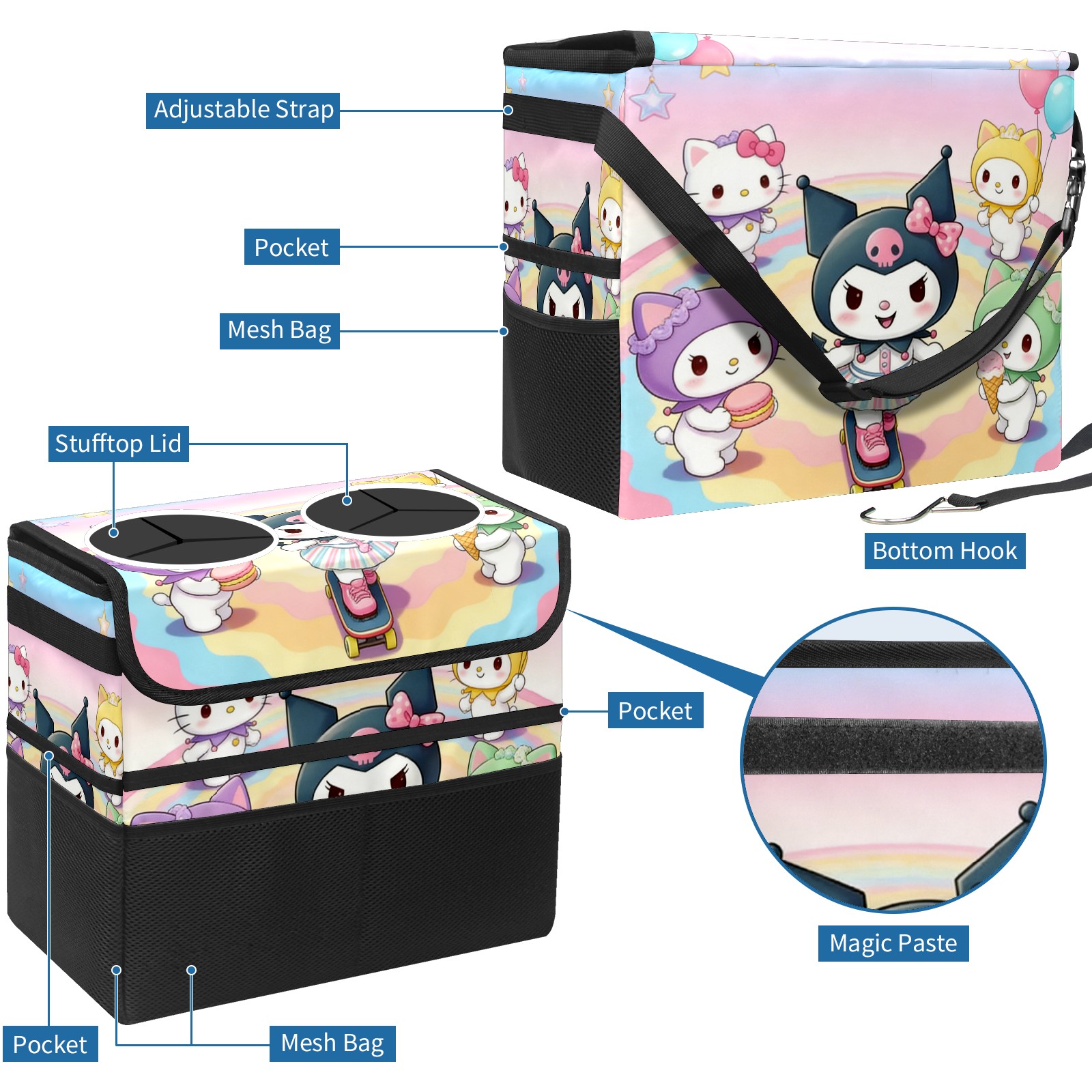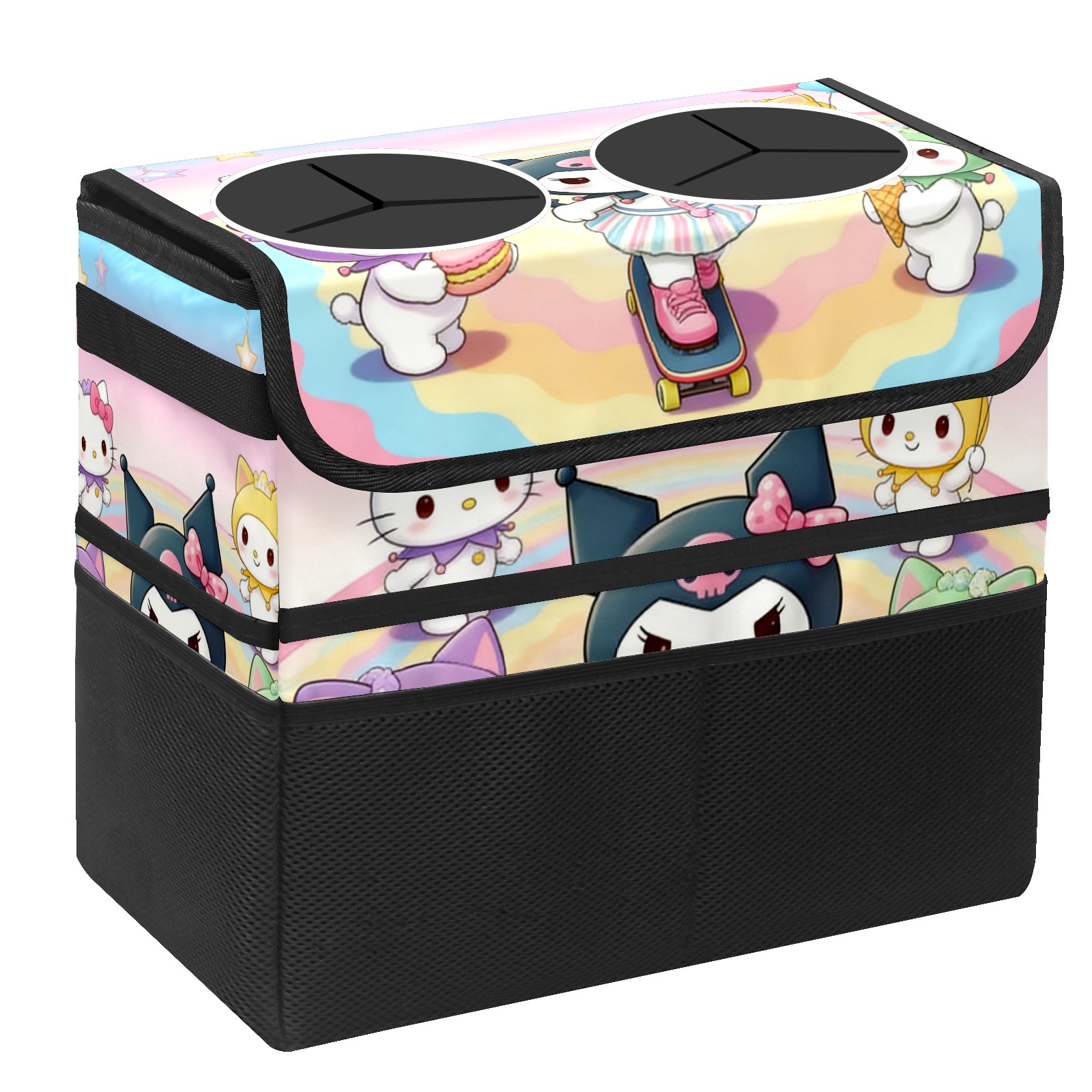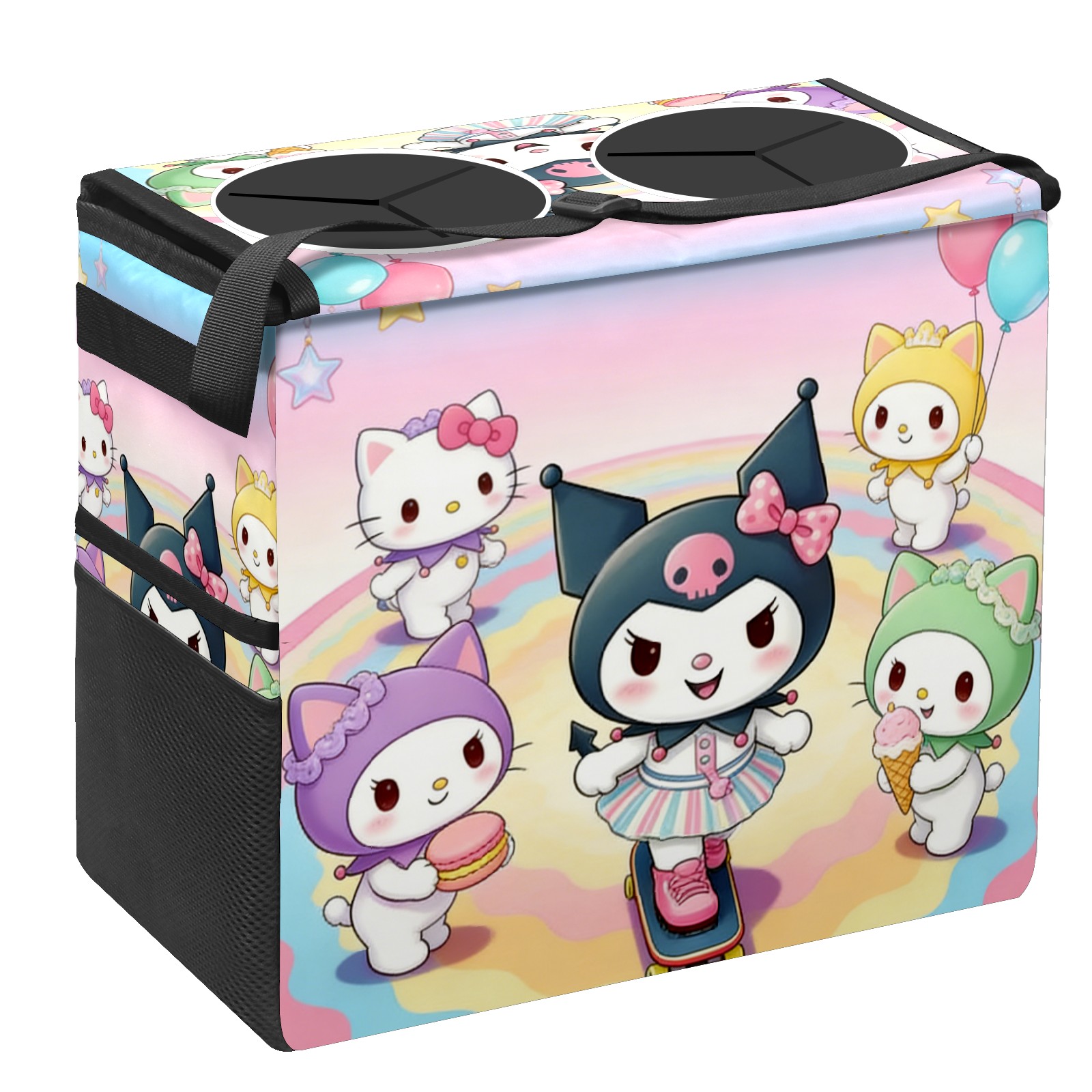Car Trash Can with Lid, Portable Hanging Automotive Garbage Bin for Vehicles, Leakproof Waste Bag Container for SUV Truck Van Interior Auto Travel Road Trips(Sanrio Character Pink)
